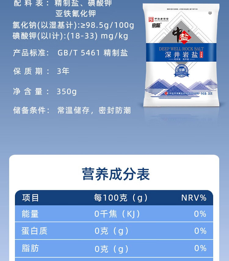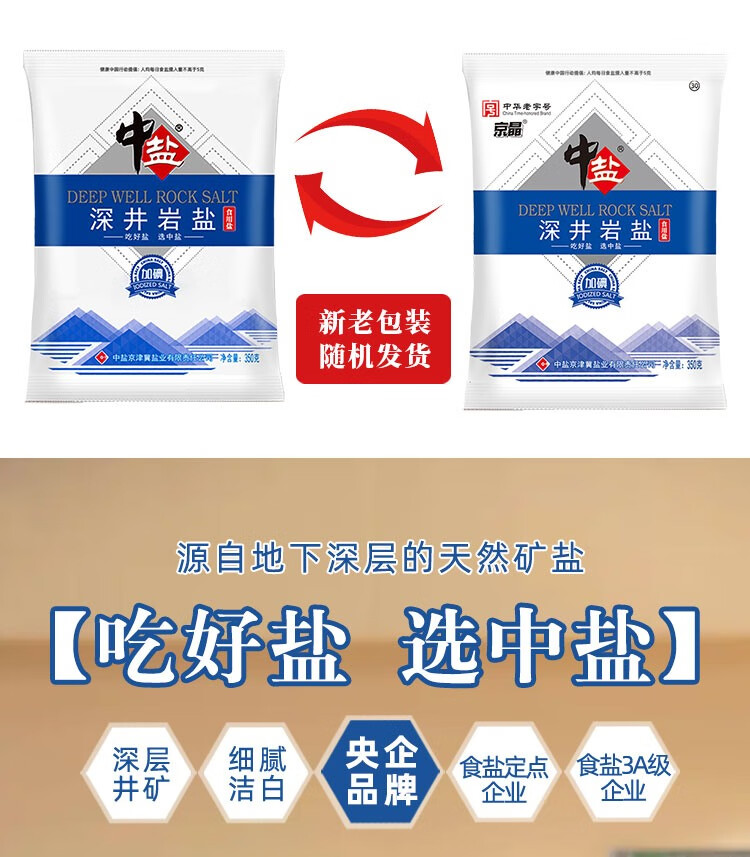 中盐 深井岩盐350g【加碘】岩盐 天然矿盐无污染 吃好盐选中盐