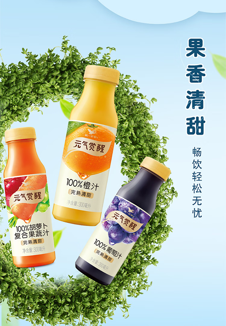 统一元气觉醒100%橙汁300毫升*12瓶 整箱装新旧款随机发货