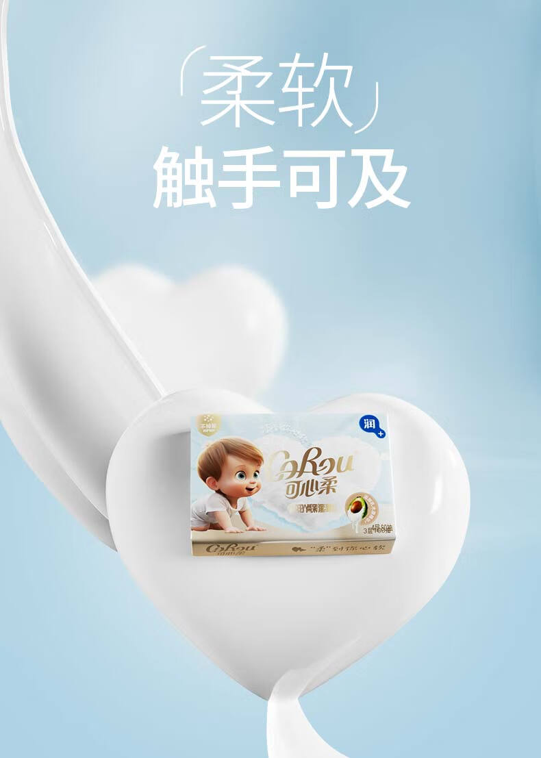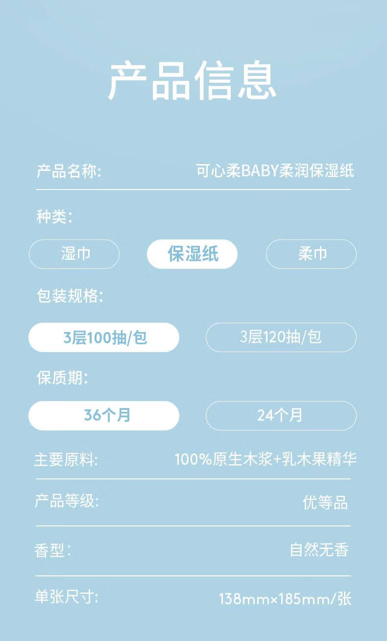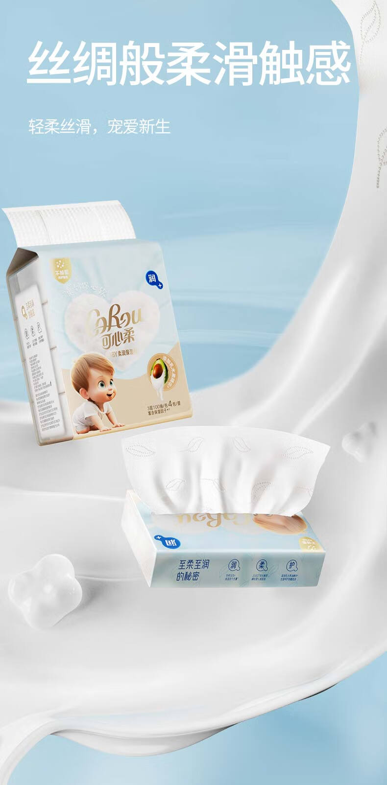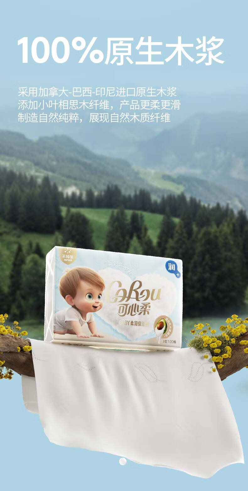 可心柔(COROU)V9婴儿乳霜纸M码3层100抽乳木果云柔巾保湿纸巾大包抽纸 【乳木果云柔巾】 3层 100抽*24包 M码