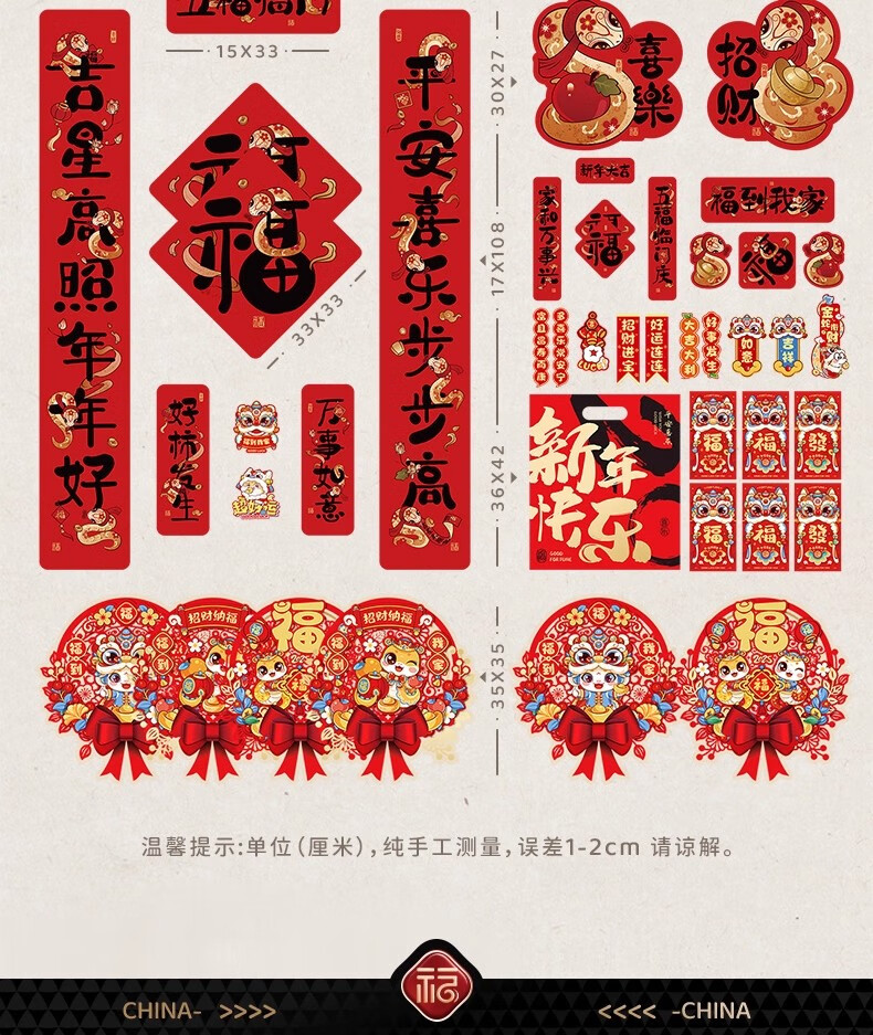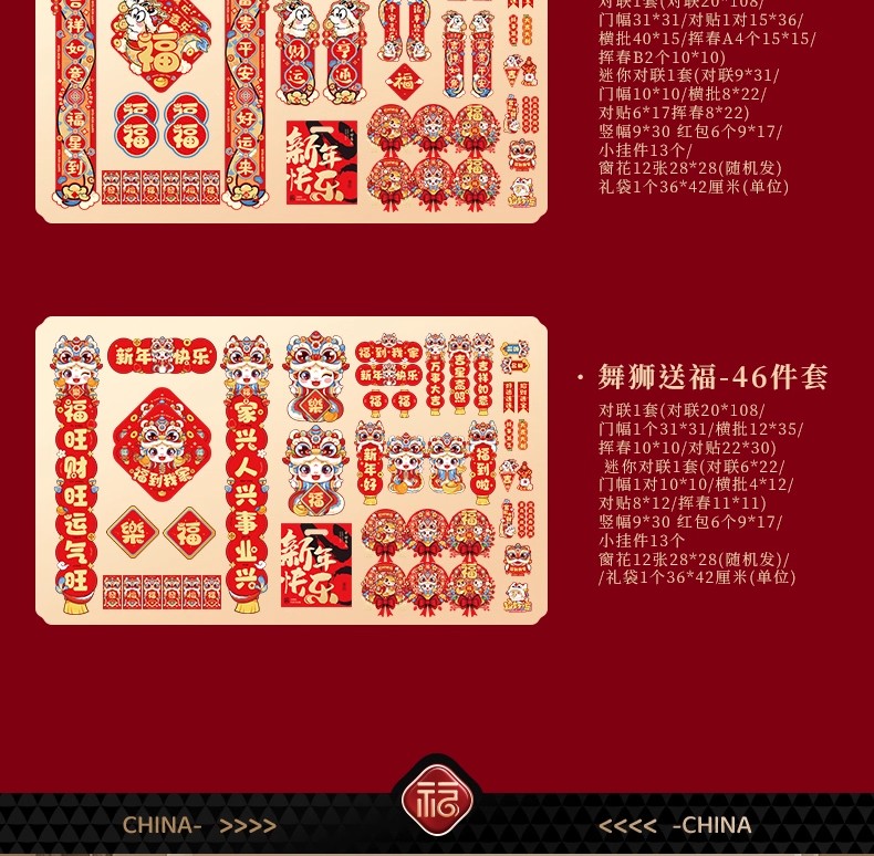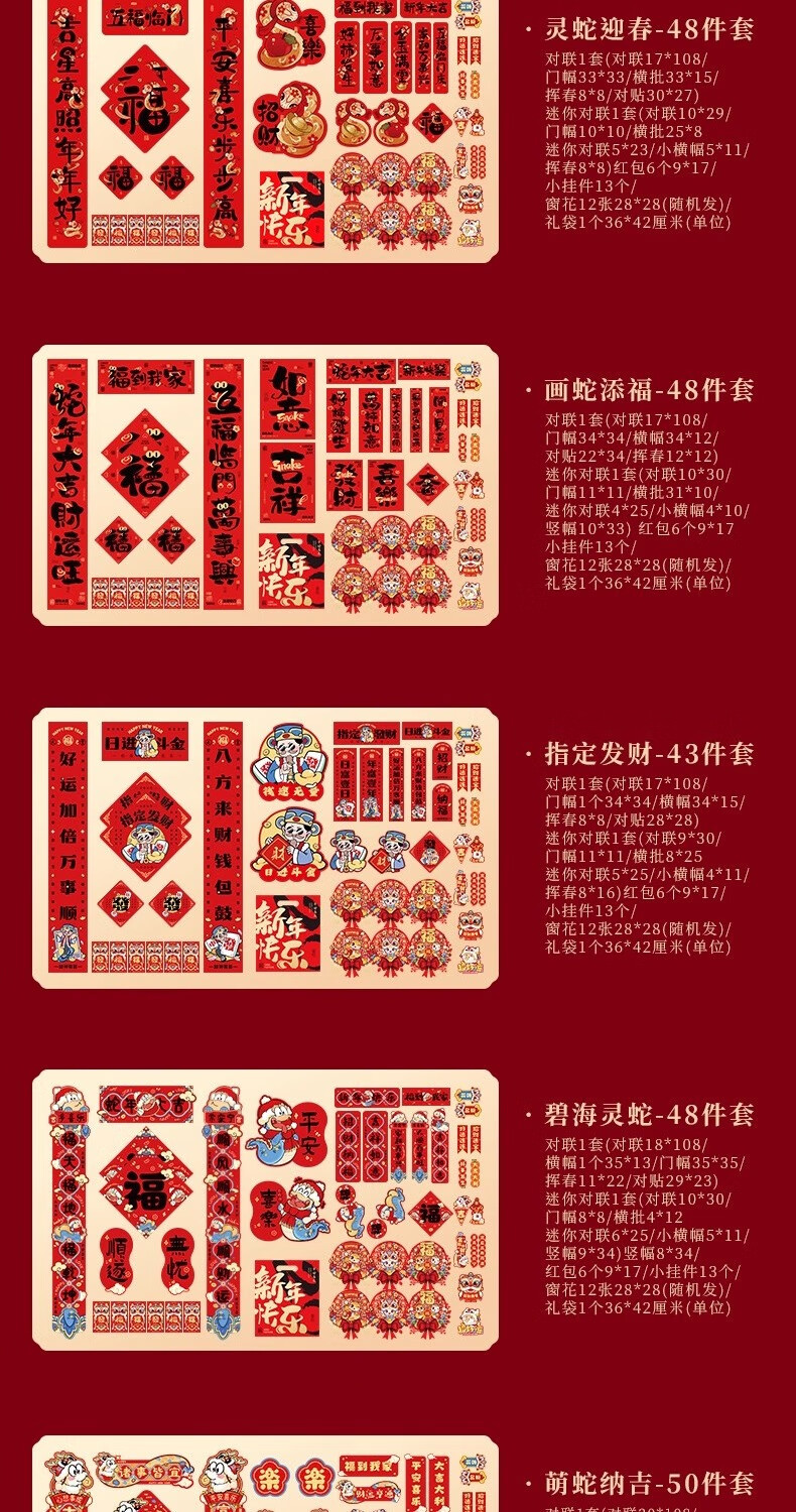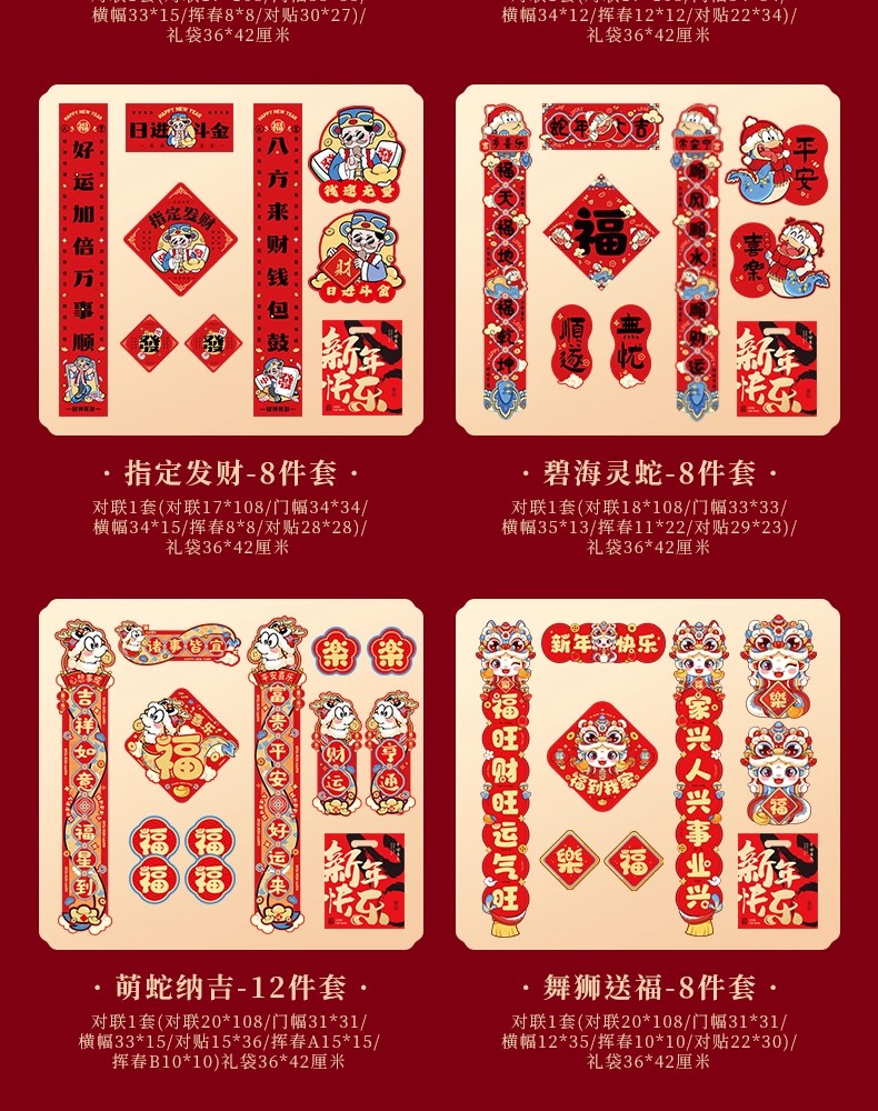 新年对联大礼包2026春联春节马年新款过年装饰福字贴礼盒装大门贴 简约14件套-五福临门
