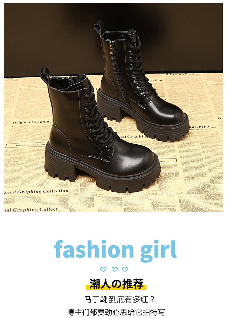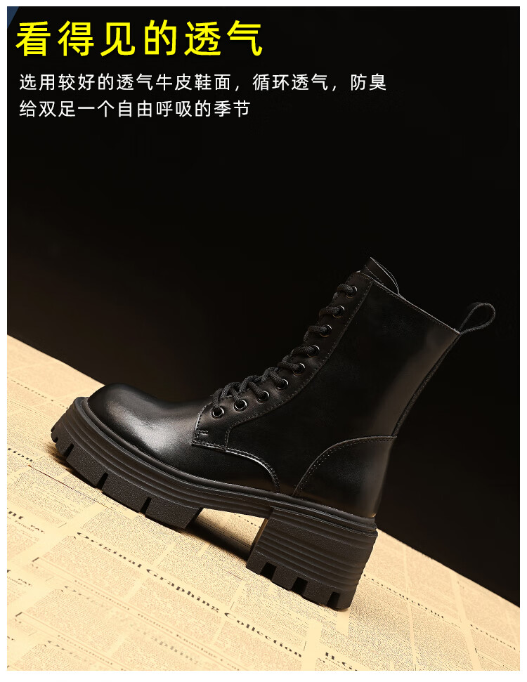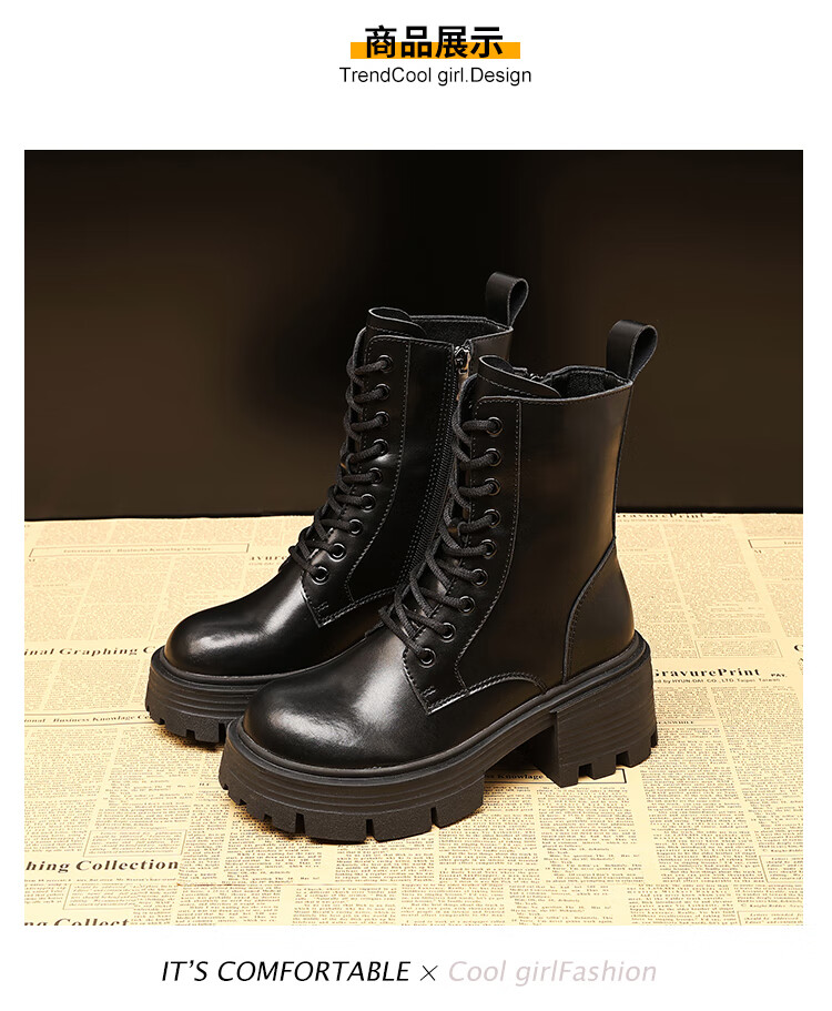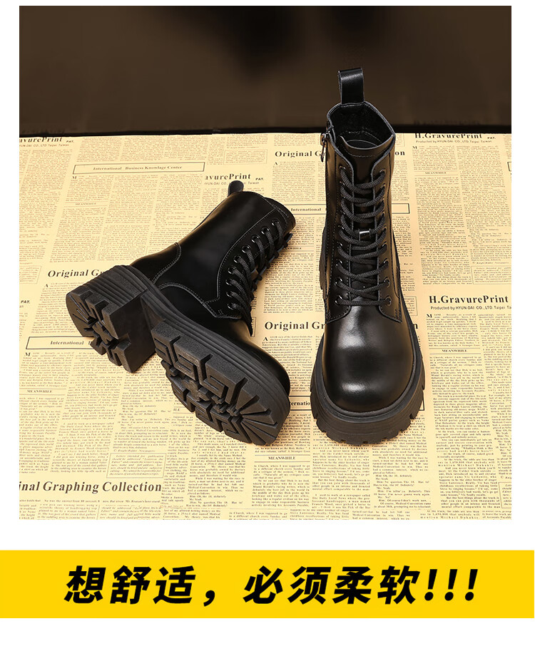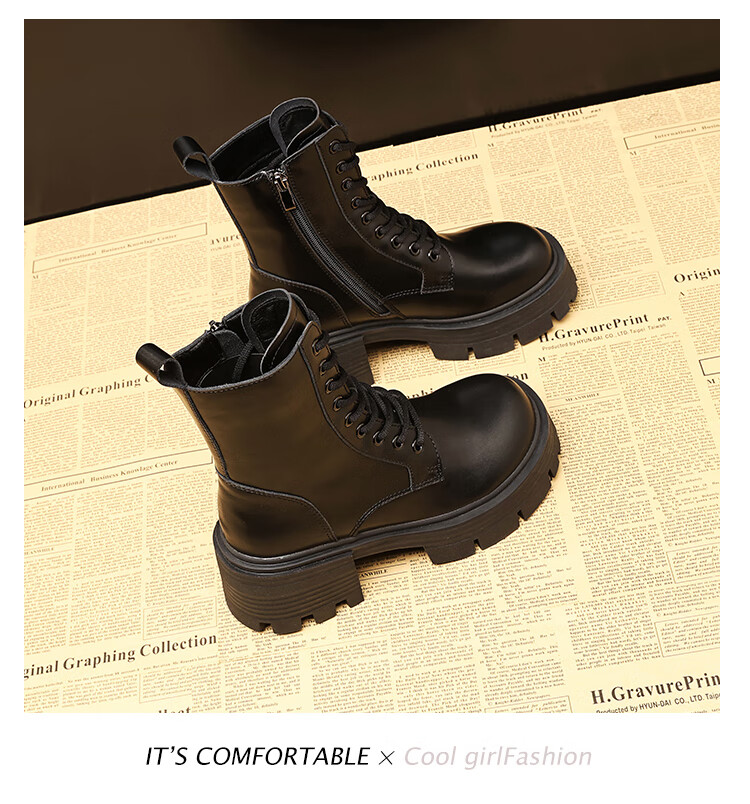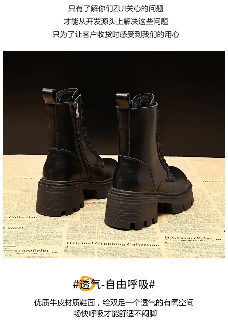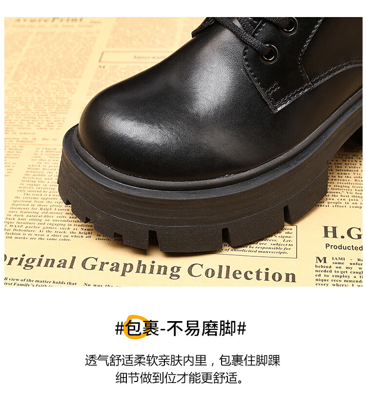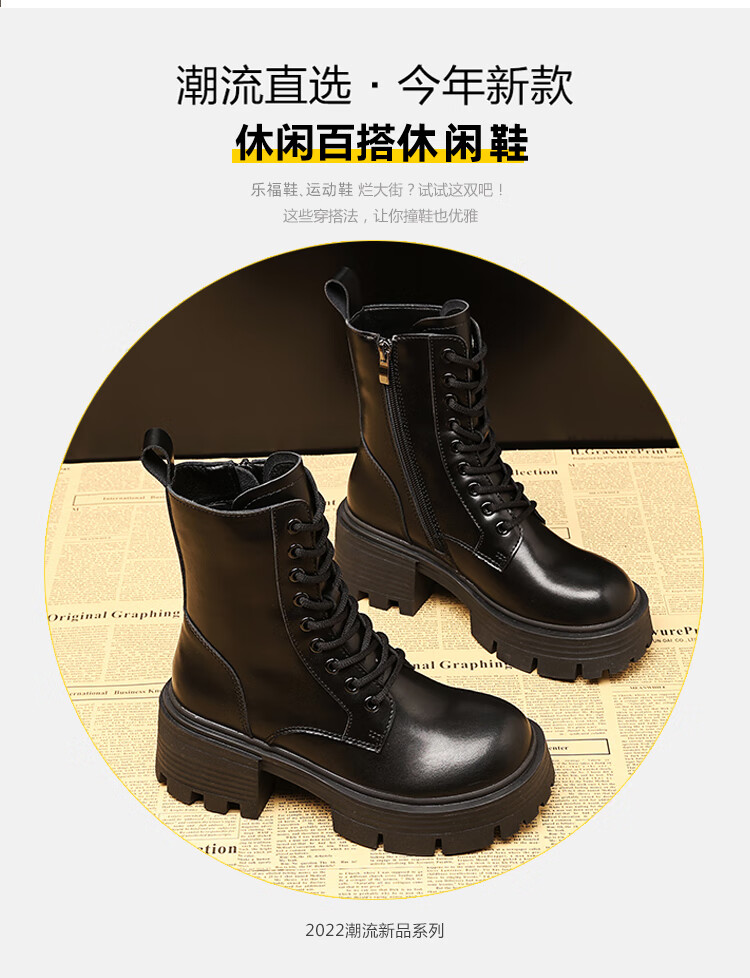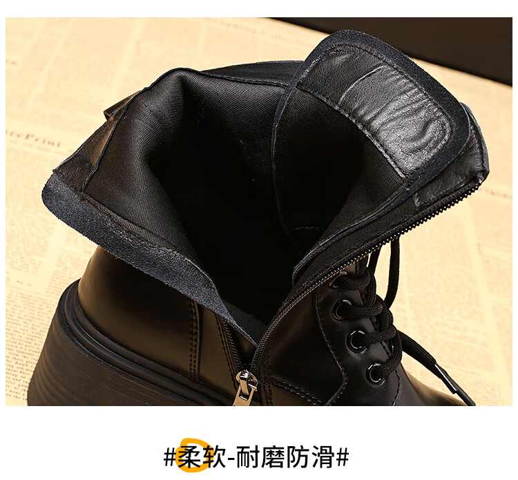 稻草人(MEXICAN)真皮短靴靴子马丁靴女2026新款女款秋季秋冬女靴英伦风厚底鞋女靴 真皮黑色【单里】质保90天 34