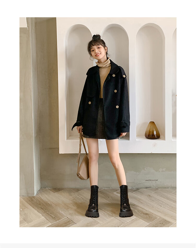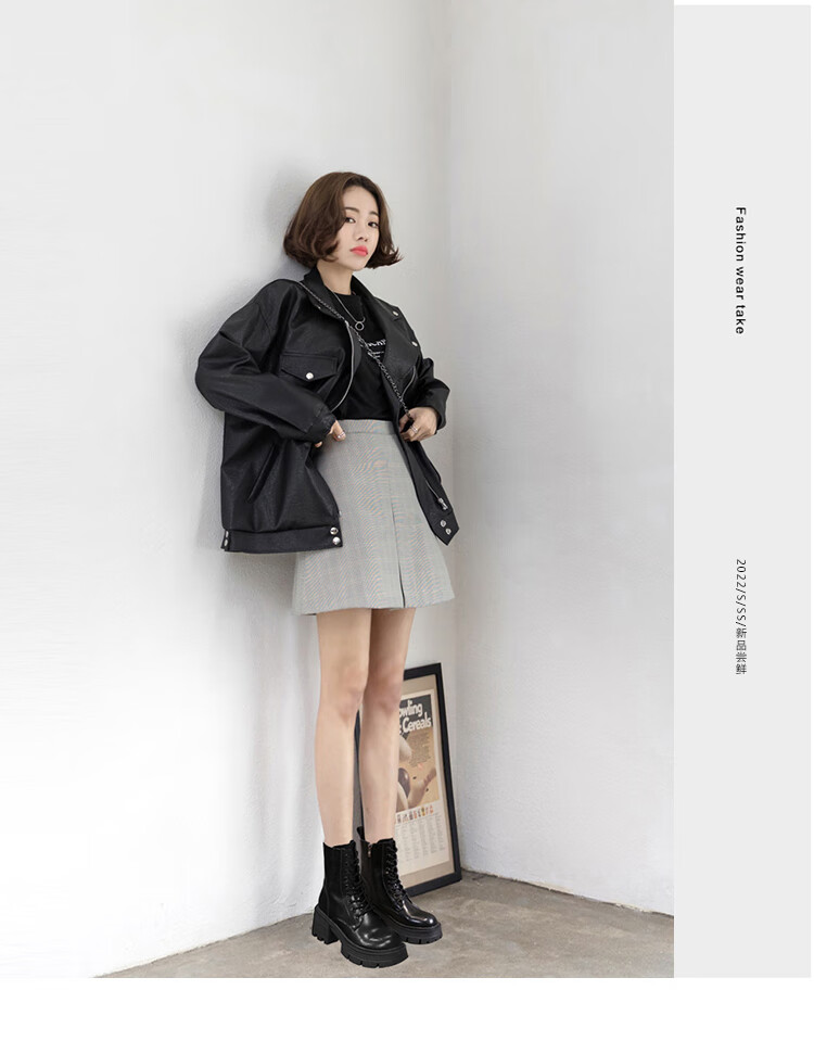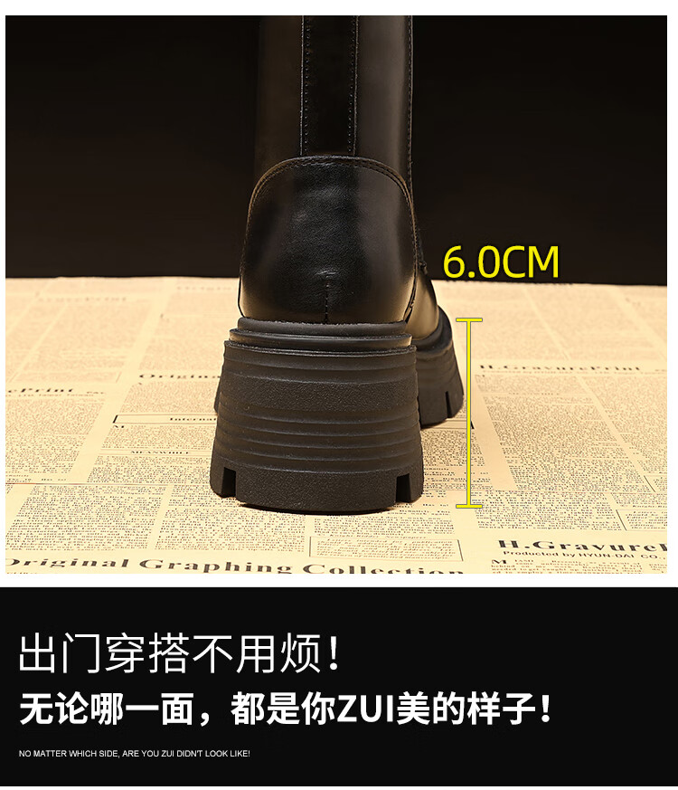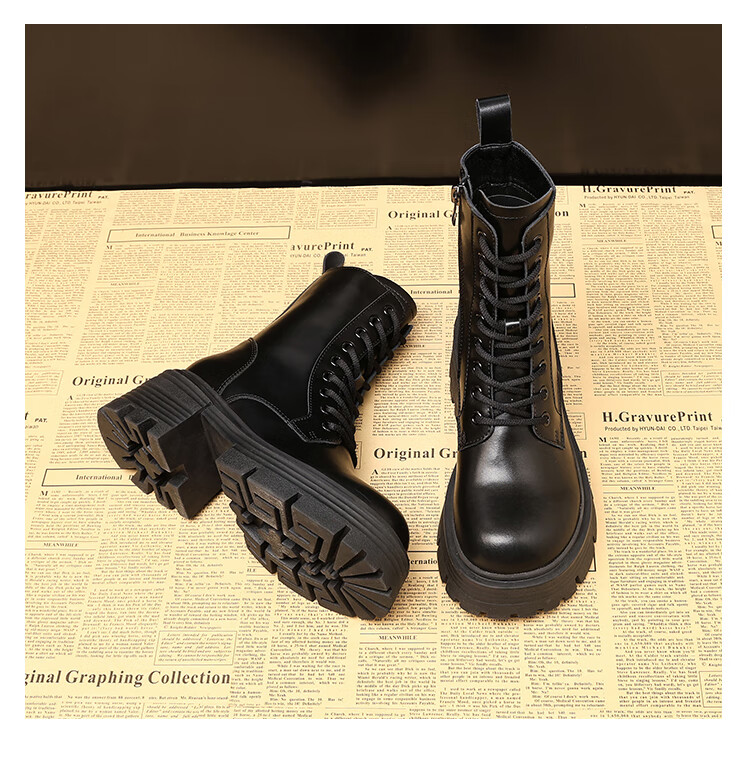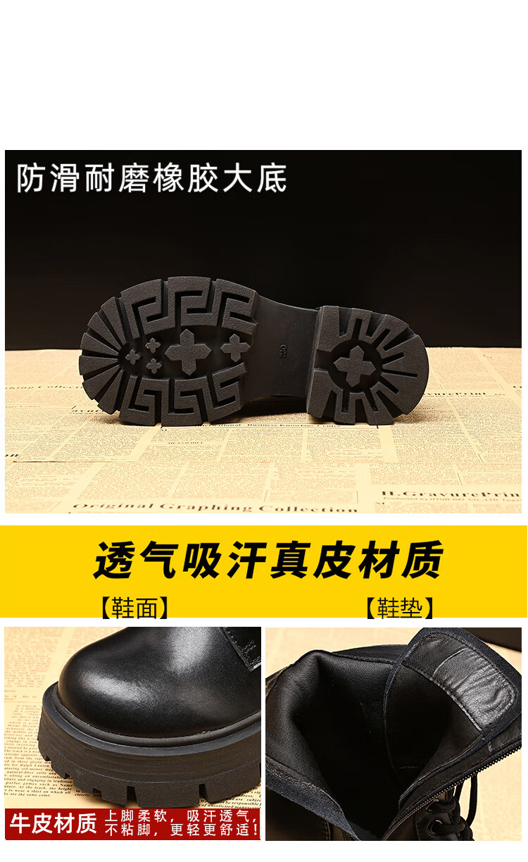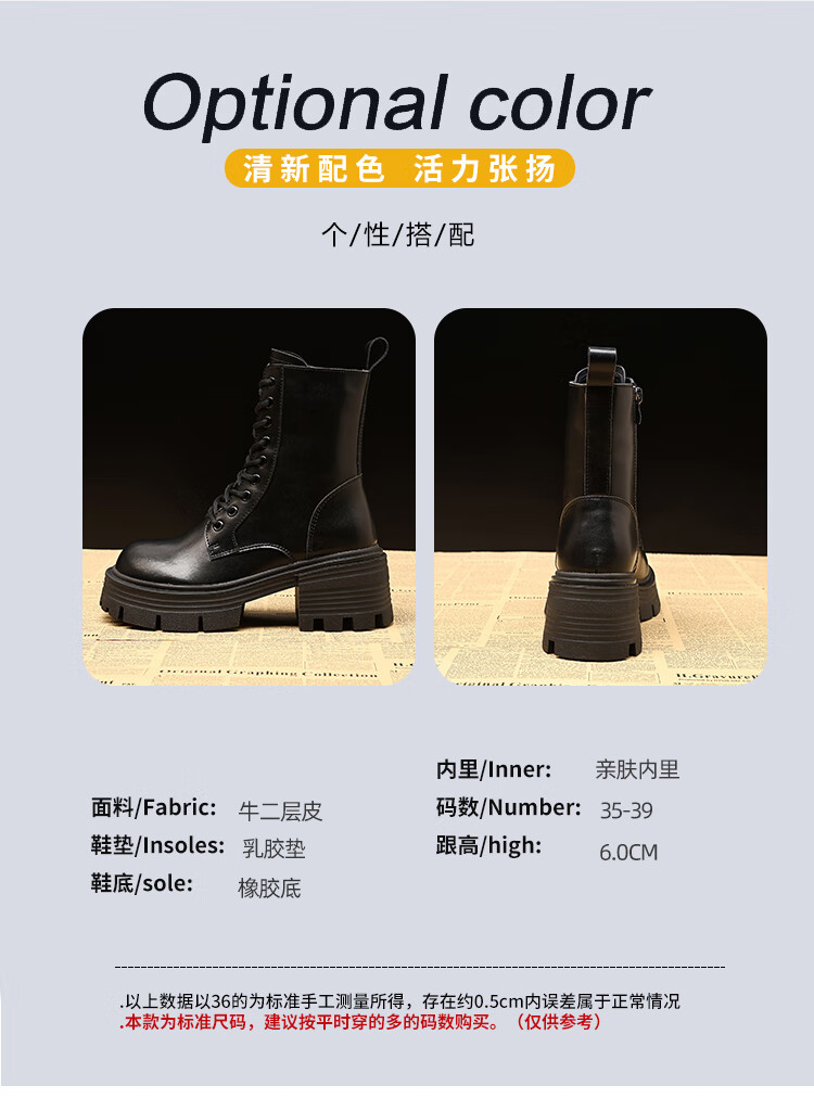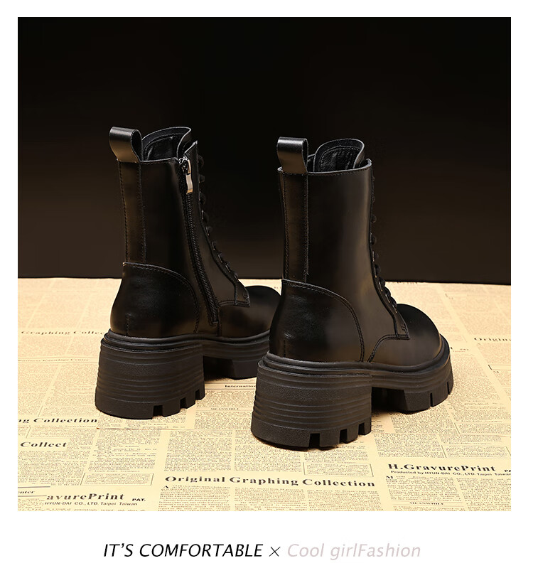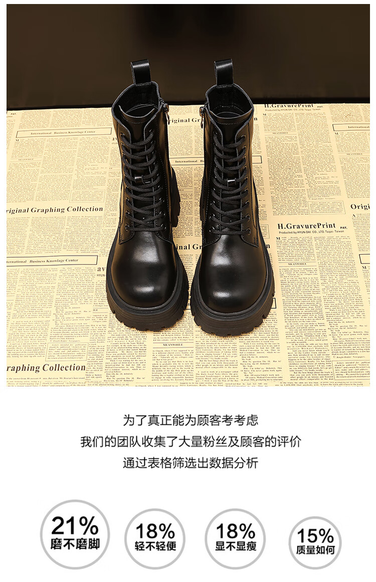 稻草人(MEXICAN)真皮短靴靴子马丁靴女2026新款女款秋季秋冬女靴英伦风厚底鞋女靴 真皮黑色【单里】质保90天 34