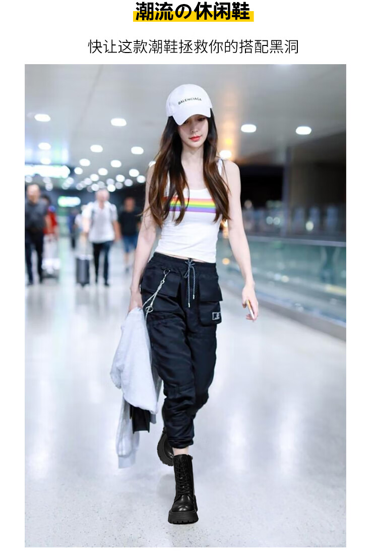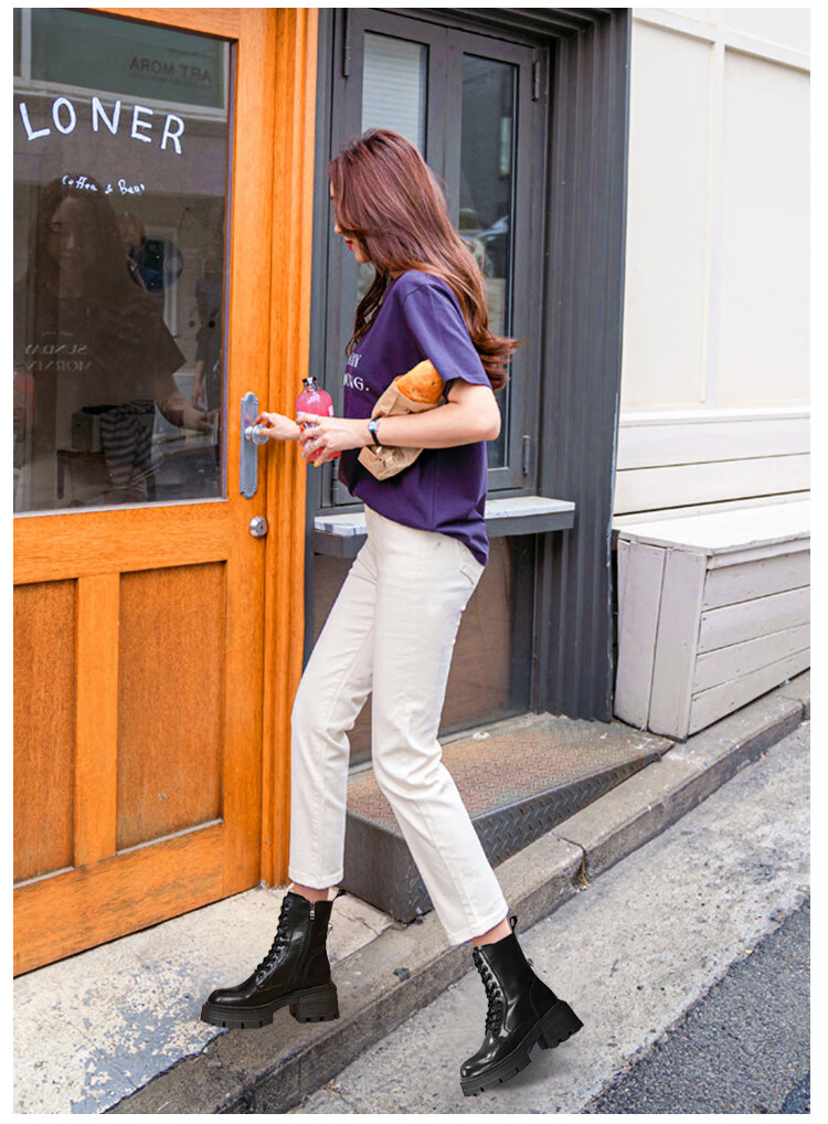 他她张淼怡同款Tata他她魔法靴厚底马丁靴女新款 米白(单里) 39