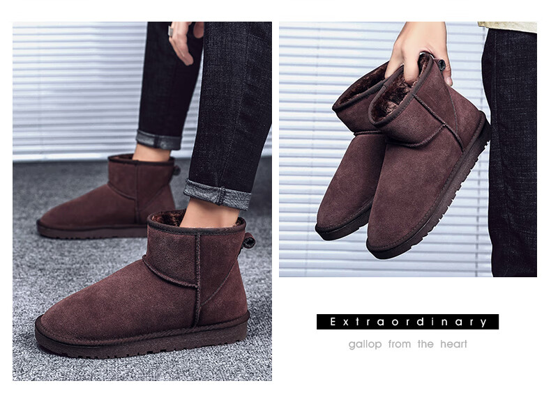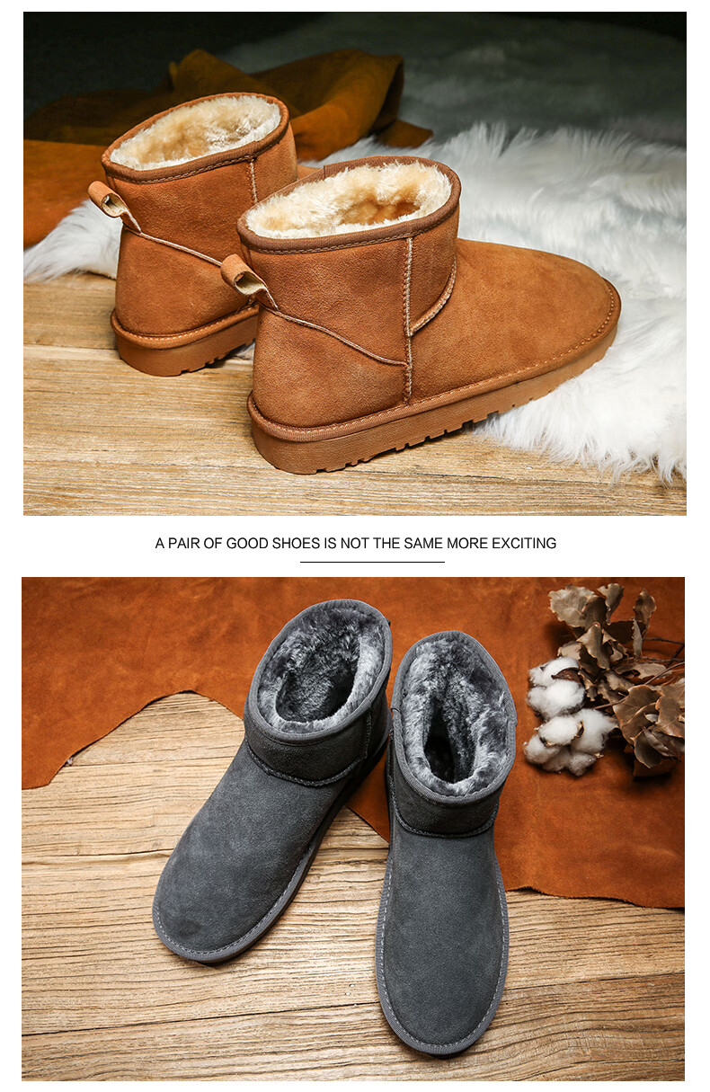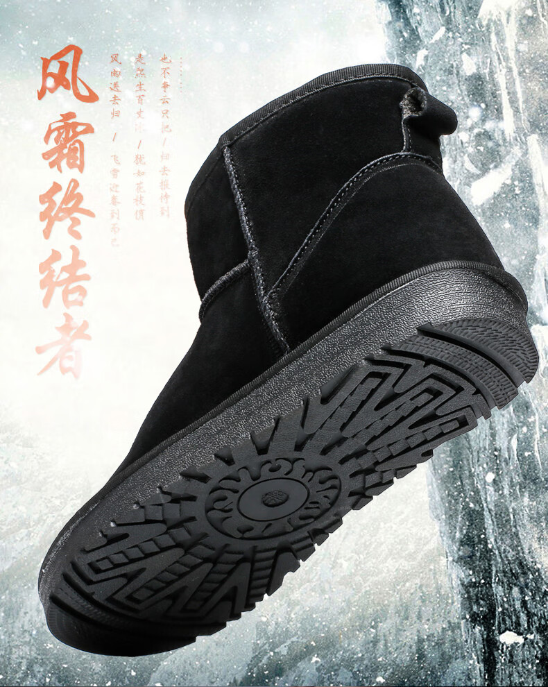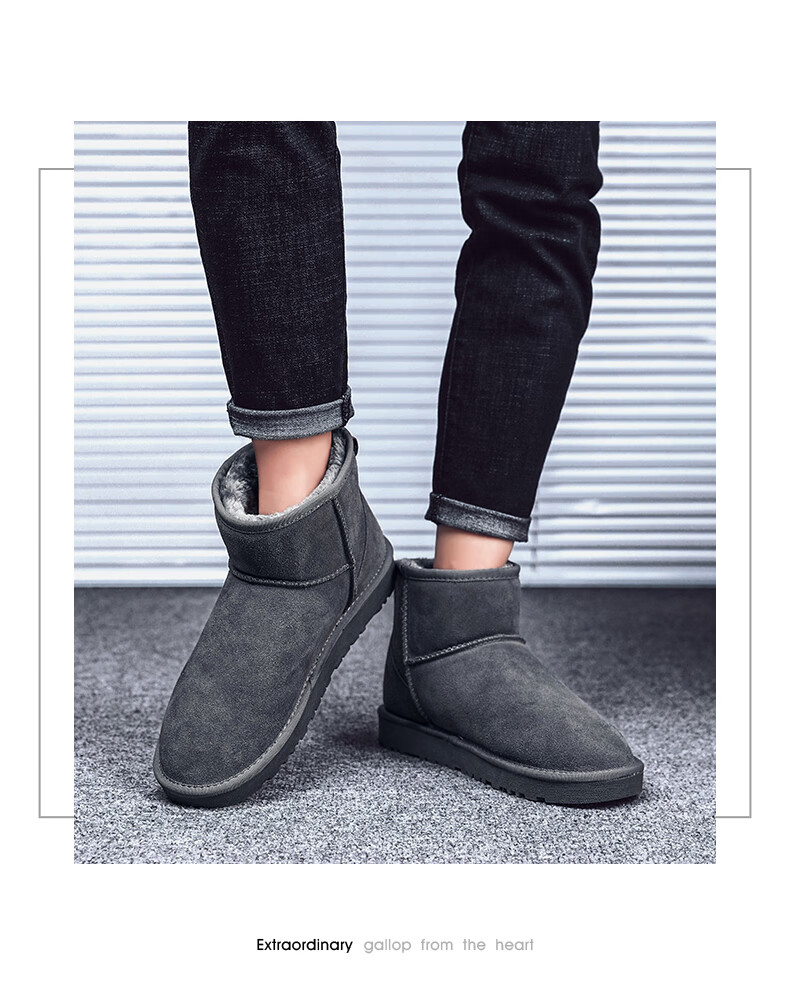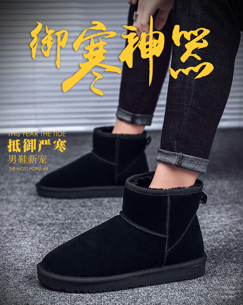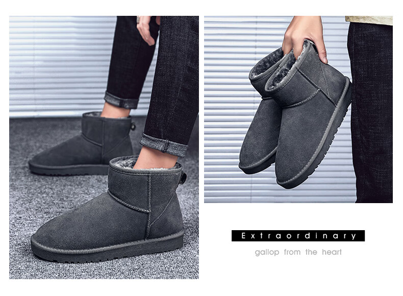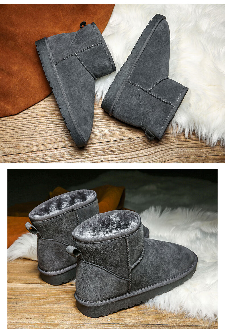 稻草人(MEXICAN)东北雪地靴男皮毛一体冬季大码45保暖加绒加厚面包鞋46真皮棉鞋47 5859灰色 39