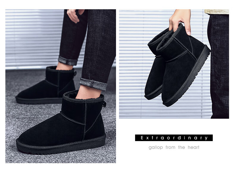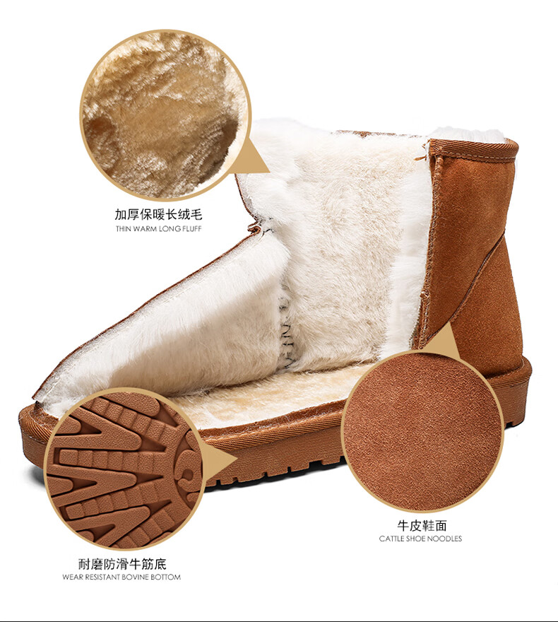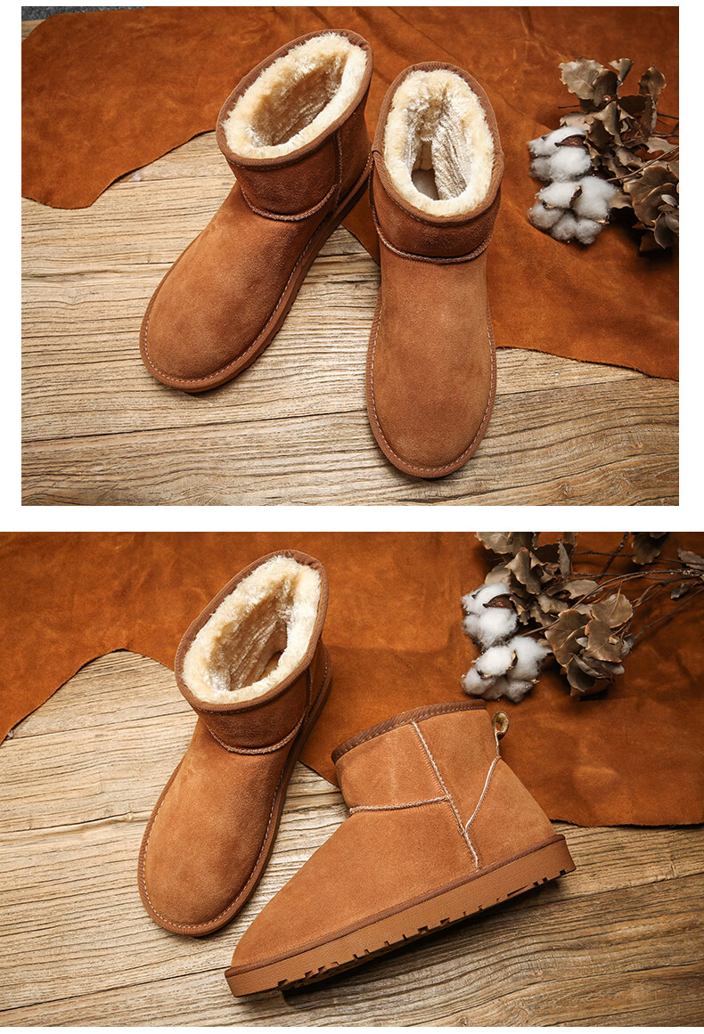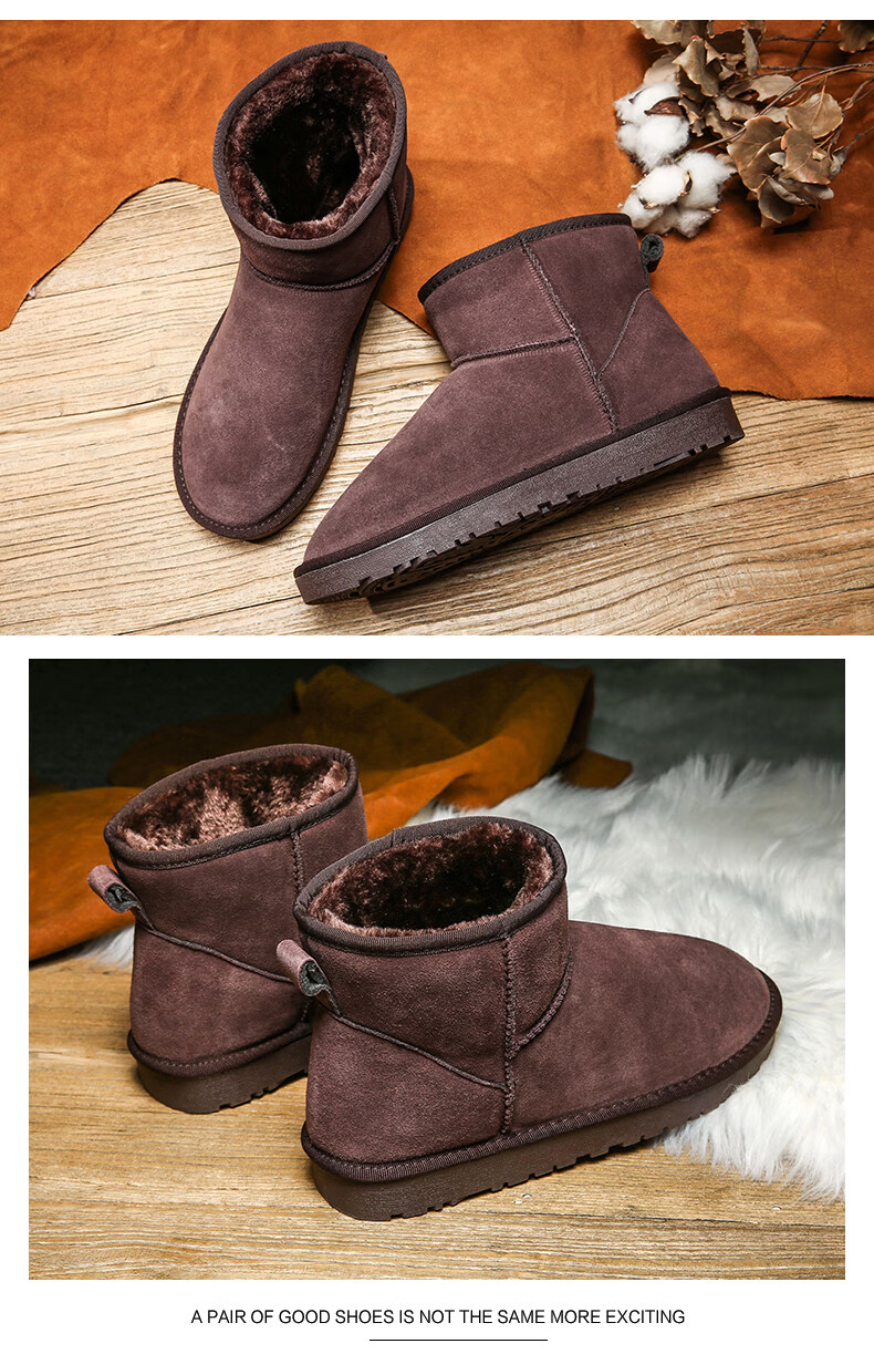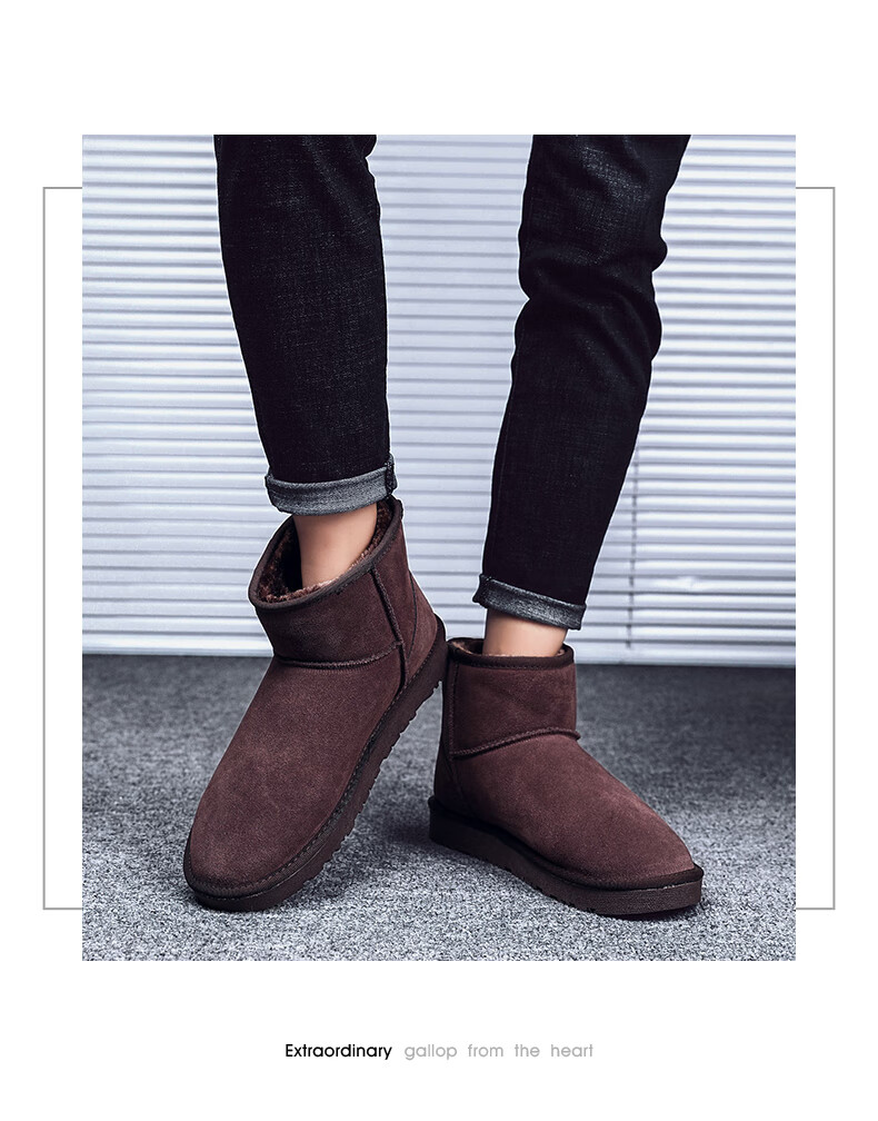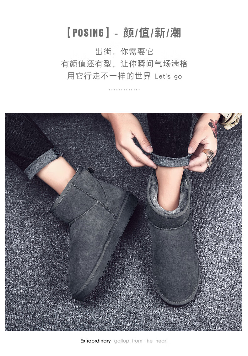 稻草人(MEXICAN)东北雪地靴男皮毛一体冬季大码45保暖加绒加厚面包鞋46真皮棉鞋47 5859灰色 39