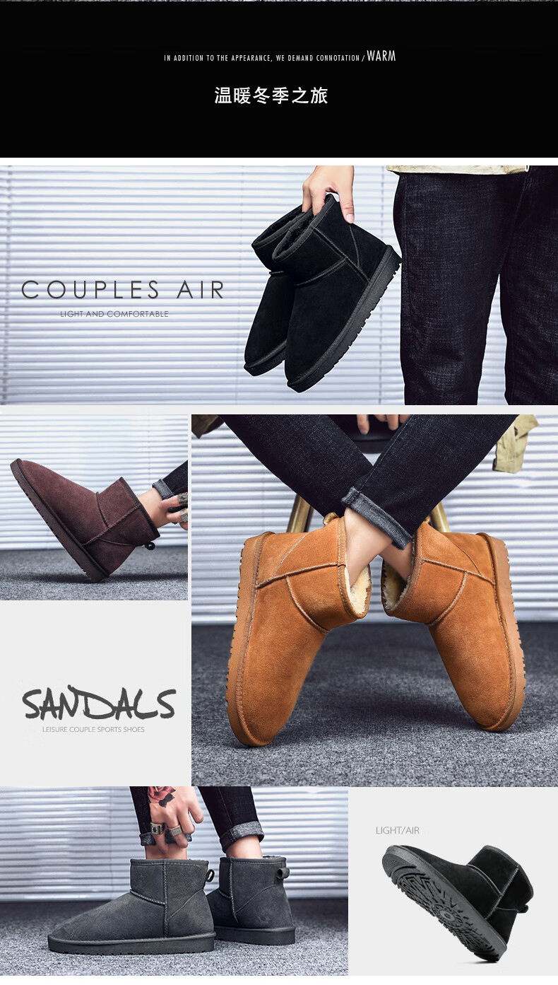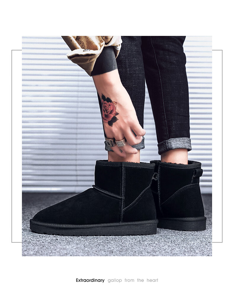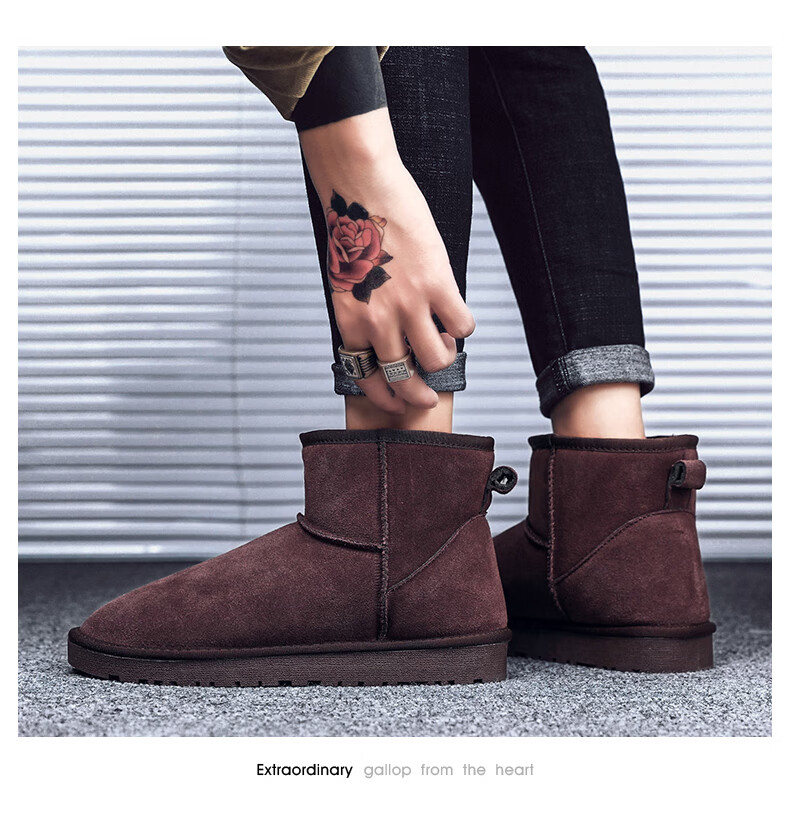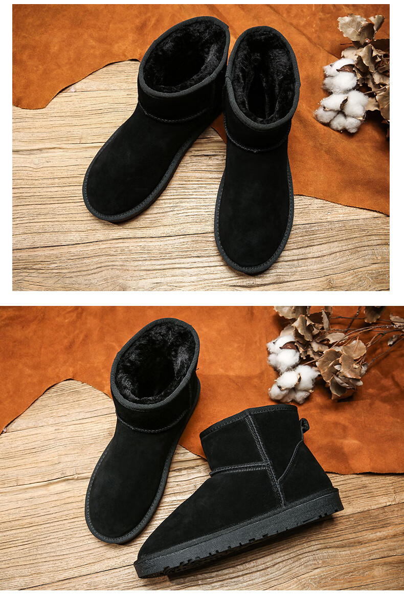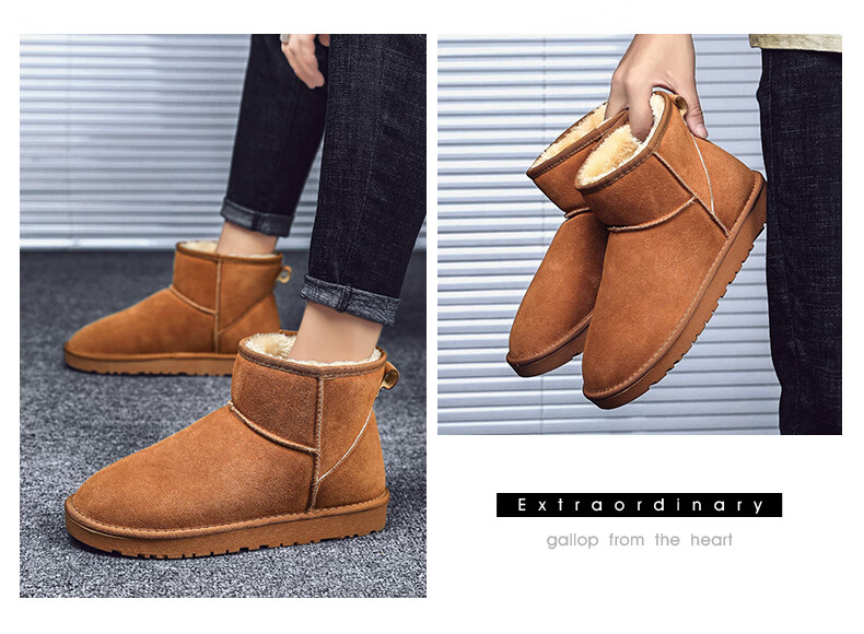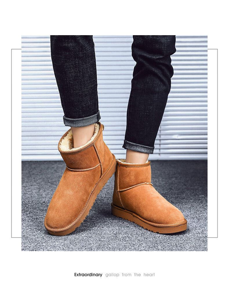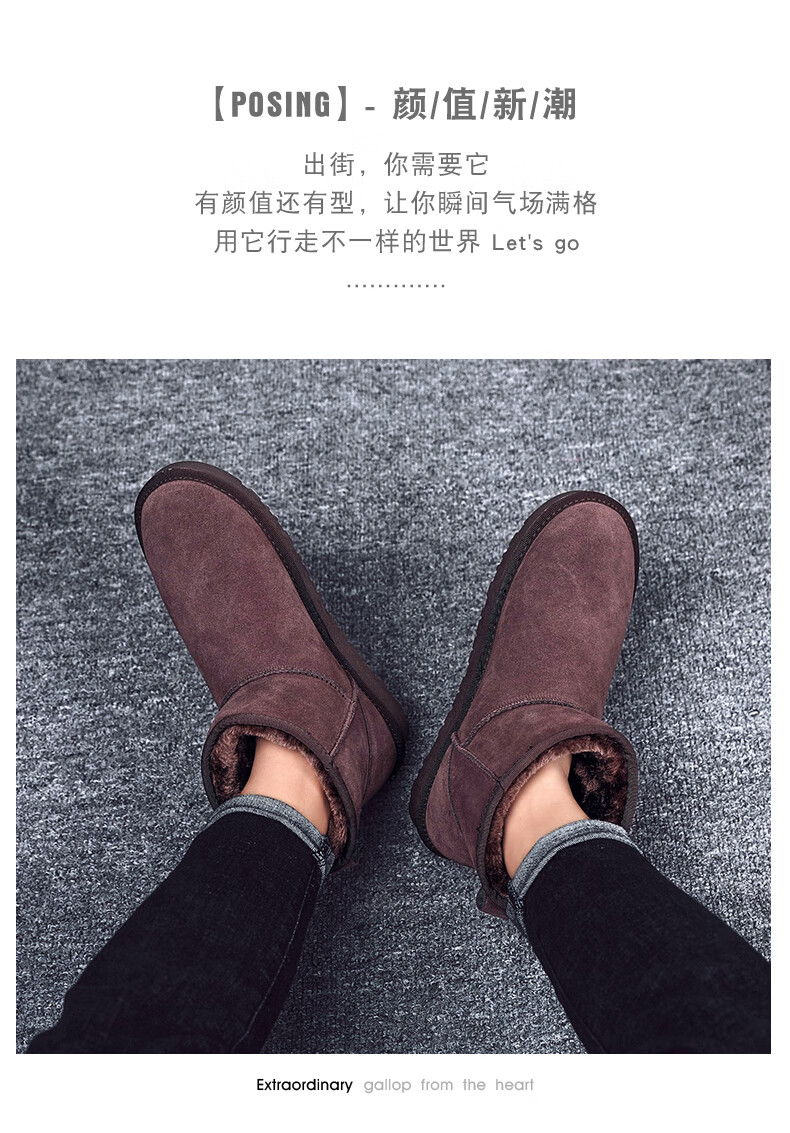 稻草人(MEXICAN)东北雪地靴男皮毛一体冬季大码45保暖加绒加厚面包鞋46真皮棉鞋47 5859灰色 39