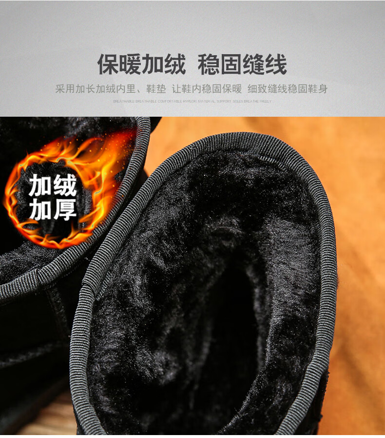 步瀛斋冬季棉鞋中老年加绒保暖老北京布鞋一脚蹬软底防滑爸爸鞋 黑色 42