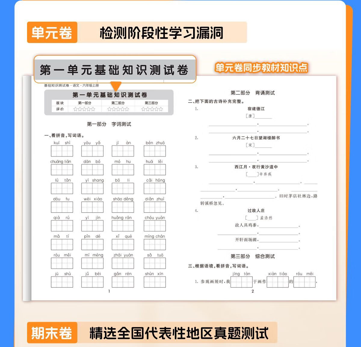 2025秋七彩课堂基础知识测试卷小学语文一二三四五六年级上册期末 一年级上册 【语文】 无规格