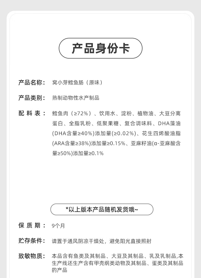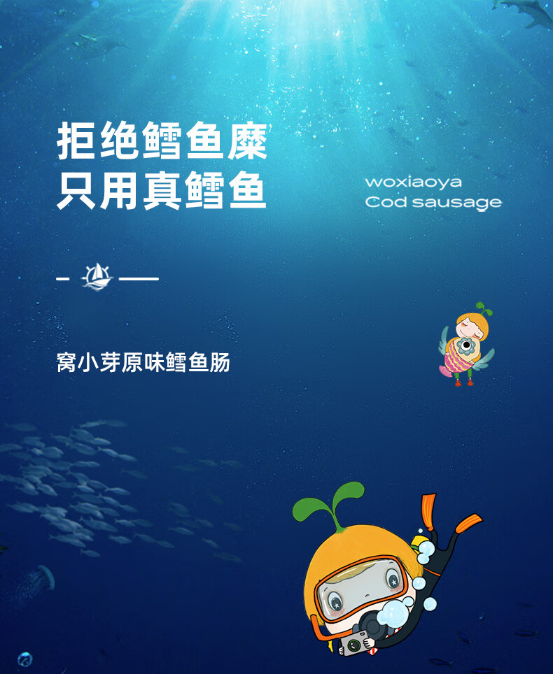 窝小芽深海鳕鱼肠原味 儿童零食0添加防腐剂享宝宝婴幼儿食谱240g/24根