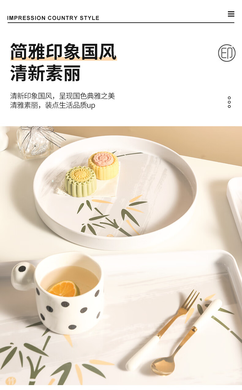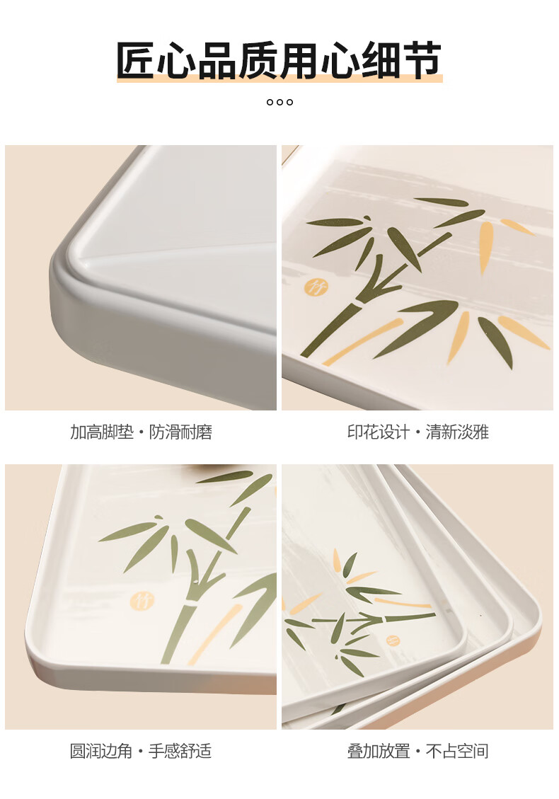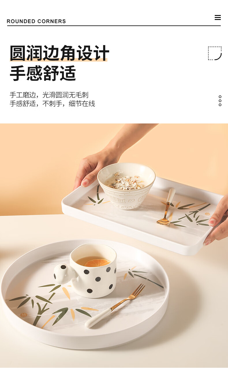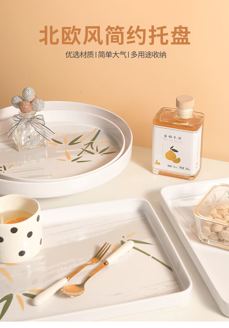 星坊长方形托盘茶盘35*24cm 早餐盘家用干果水果盘 加厚密胺