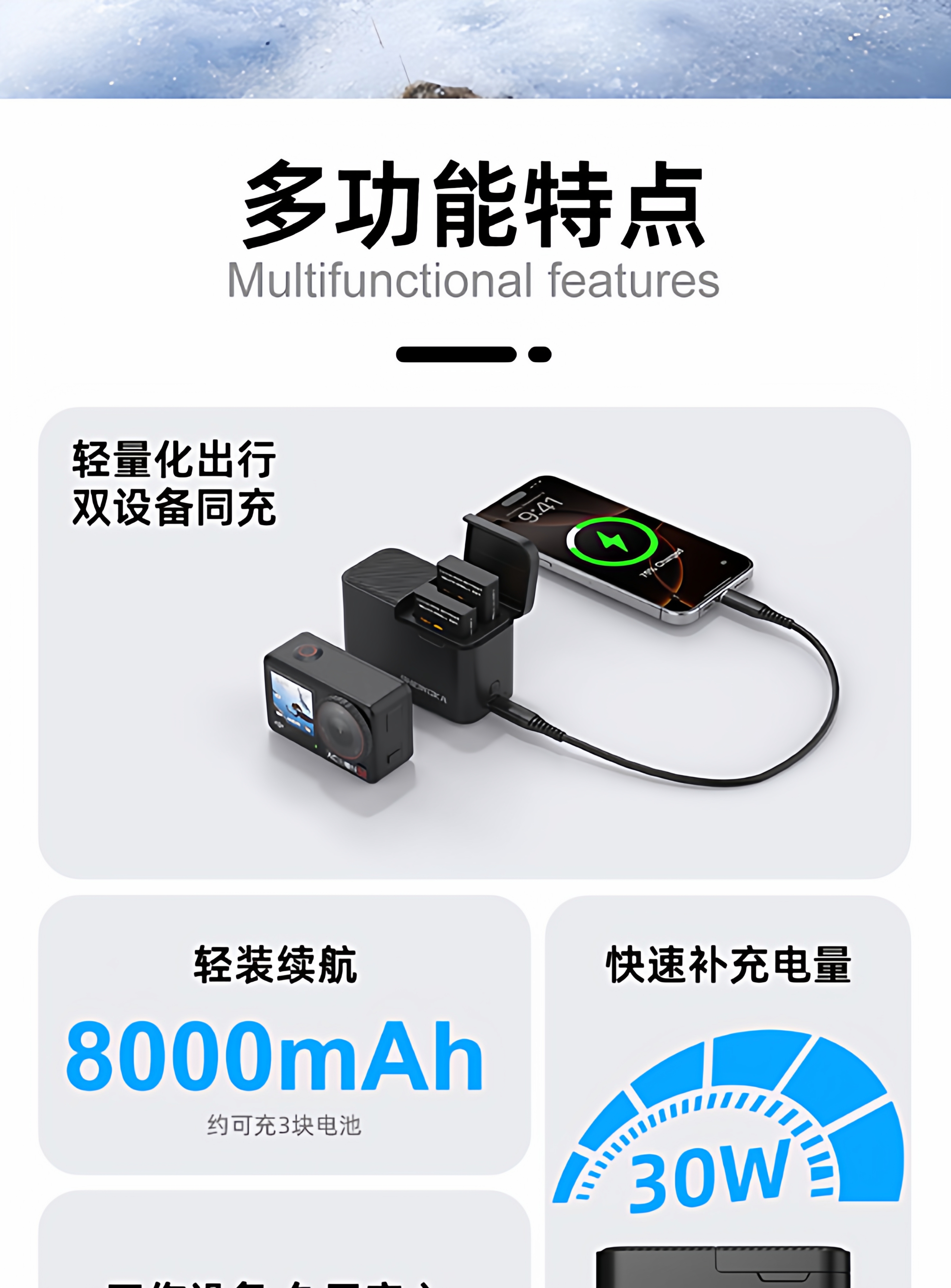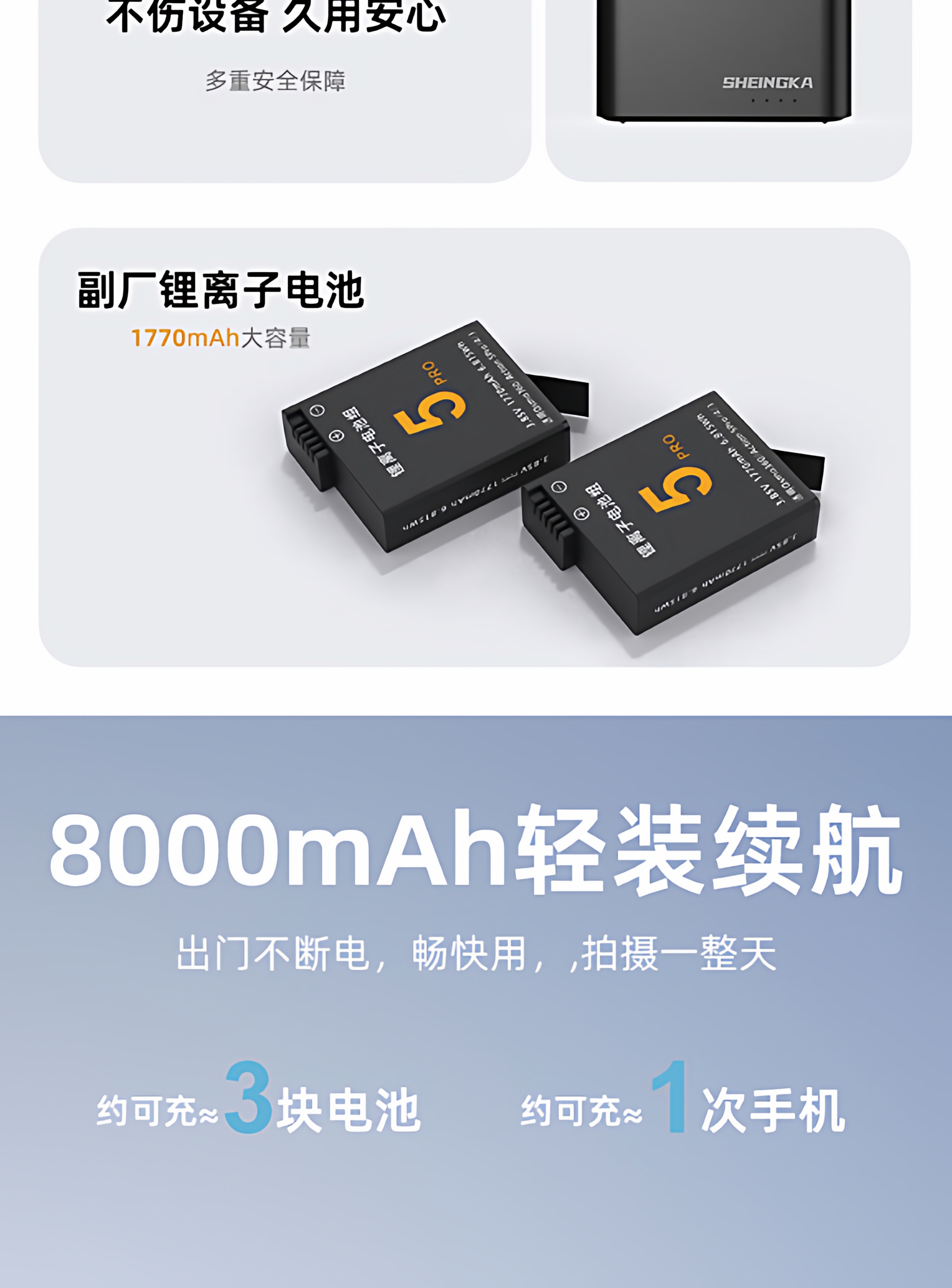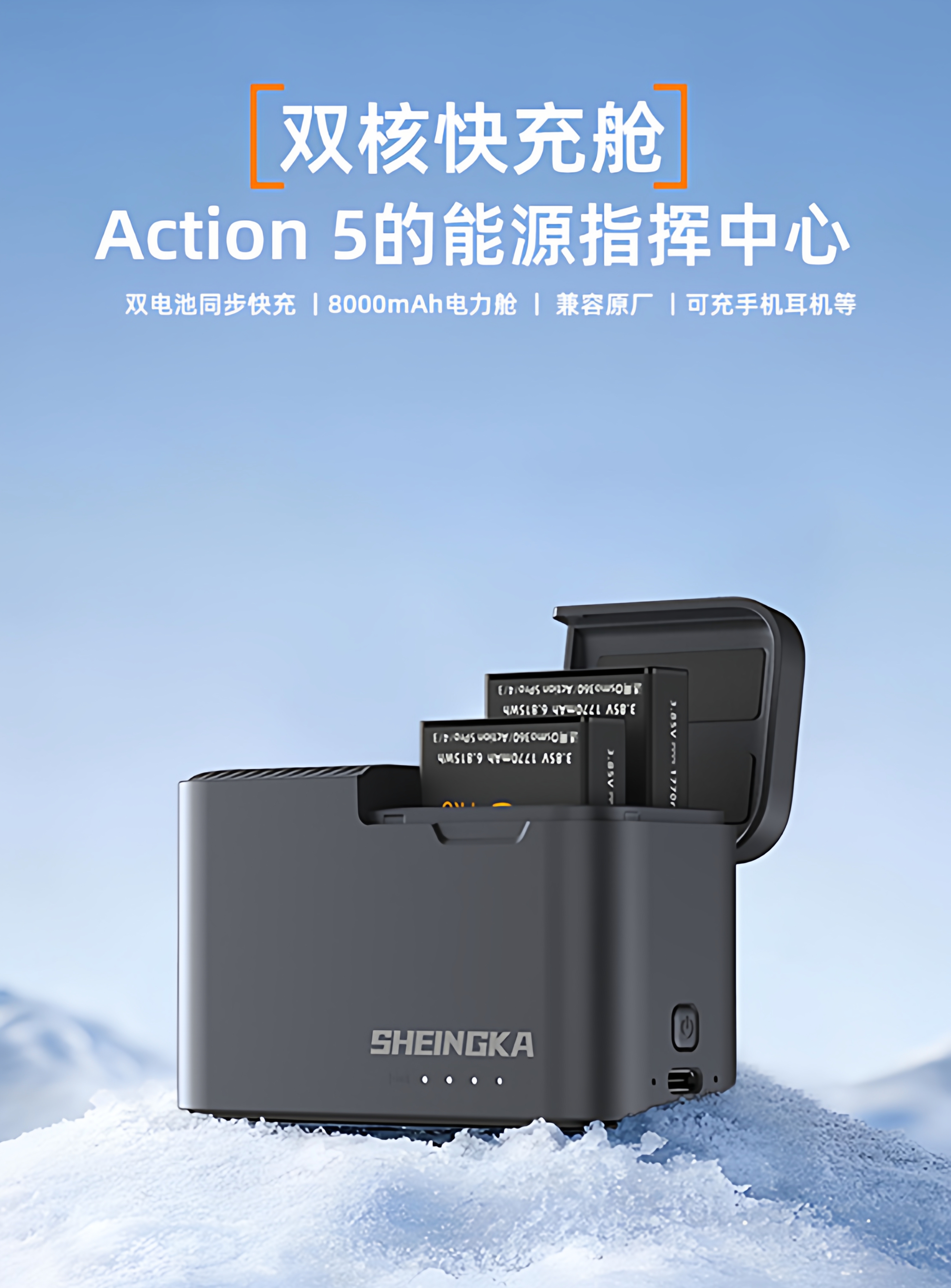 sheingka DJI大疆【8000毫安移动续航仓】action6/5/4/3续航蓄电仓超强续航360充电器电池配件 Action【8000mah超强移动续航仓】