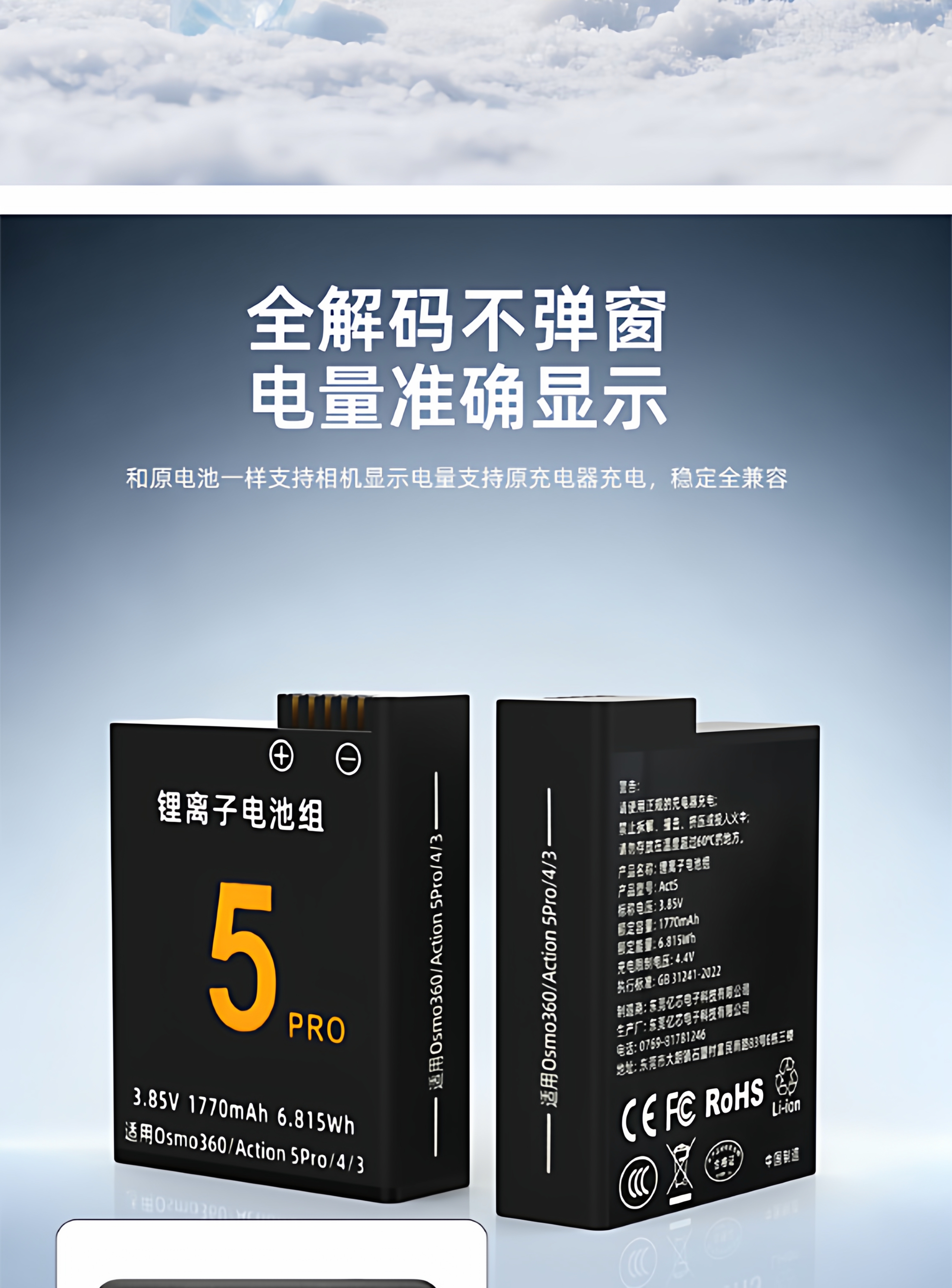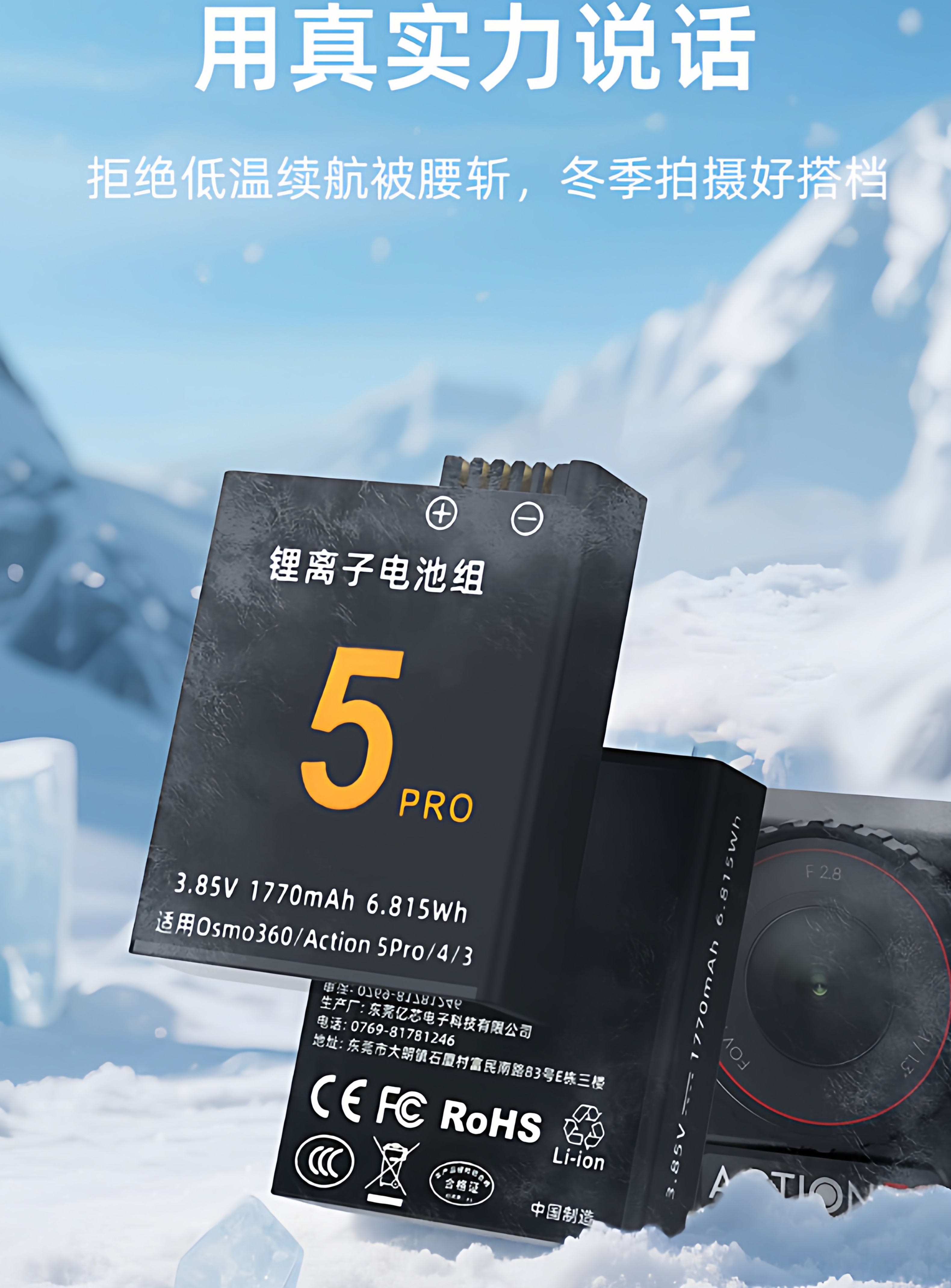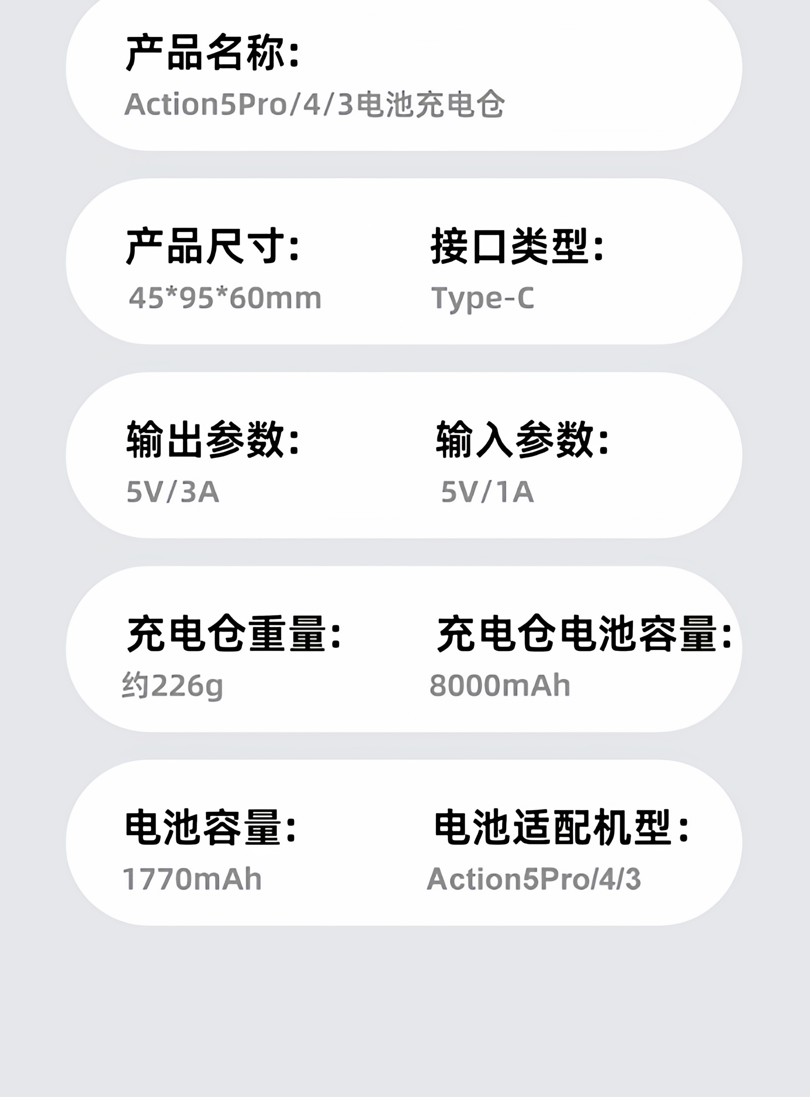 sheingka DJI大疆【8000毫安移动续航仓】action6/5/4/3续航蓄电仓超强续航360充电器电池配件 Action【8000mah超强移动续航仓】