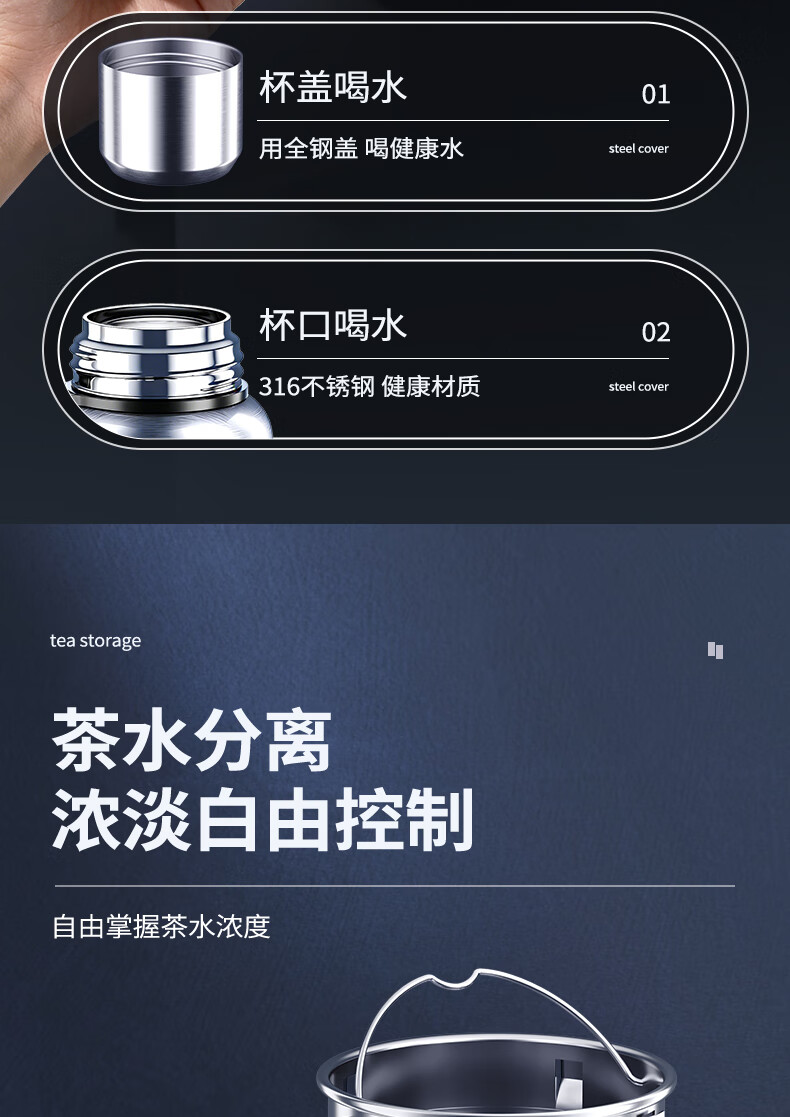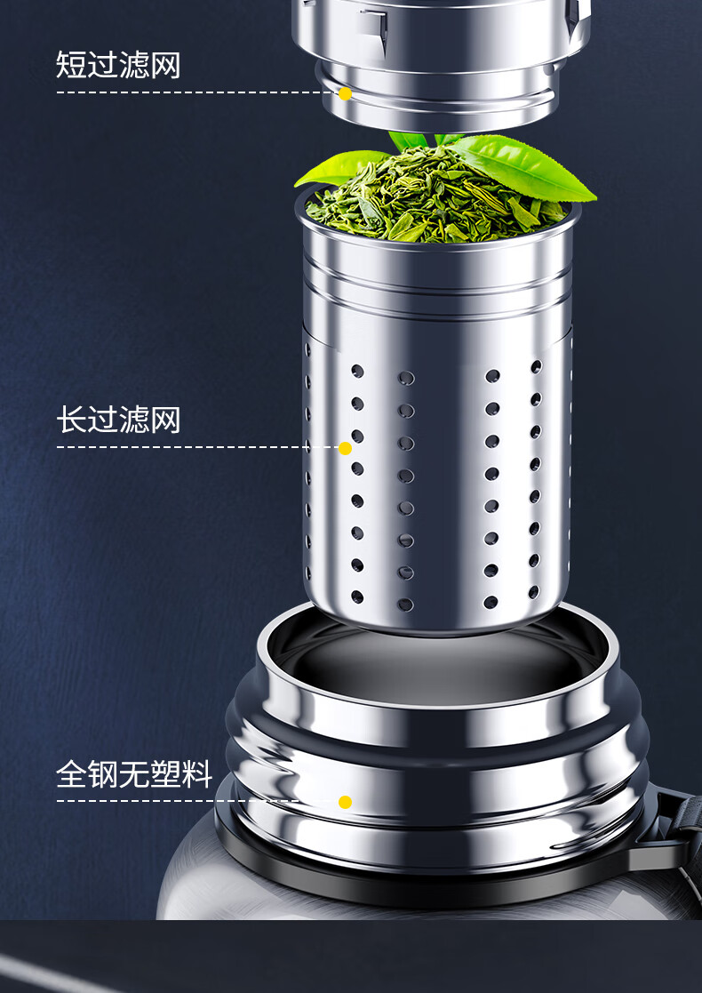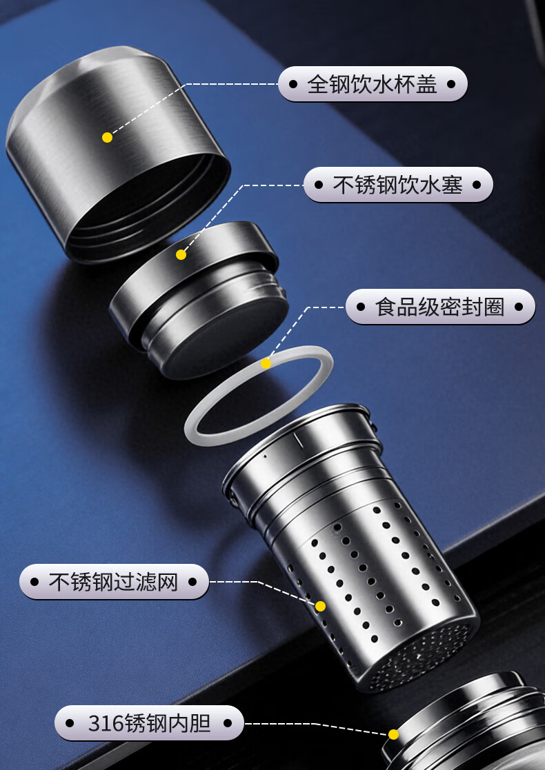 SZTAA保温杯大容量茶水分离316不锈钢水杯男女士高颜值便携热水泡茶杯 【抗菌316不锈钢】钢本色-800ml