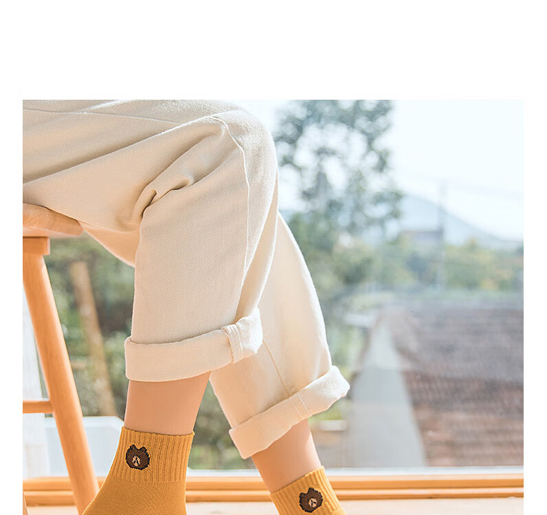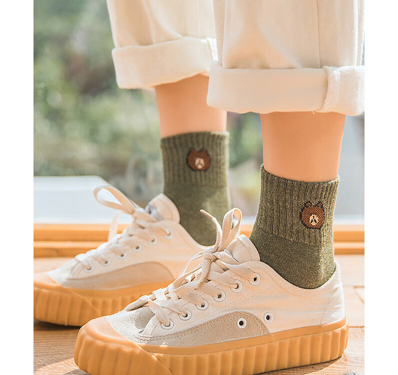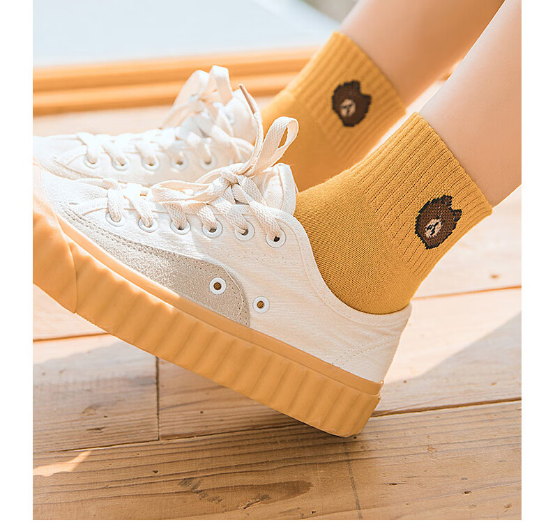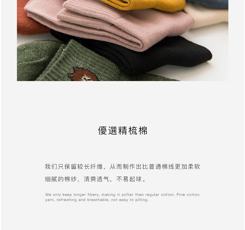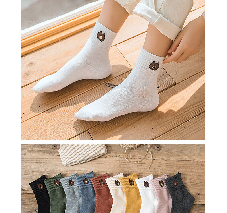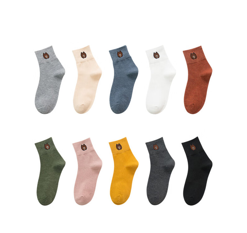 东方缘5双装女士秋冬中筒袜百搭透气日系可爱休闲精梳棉袜 混色 5双