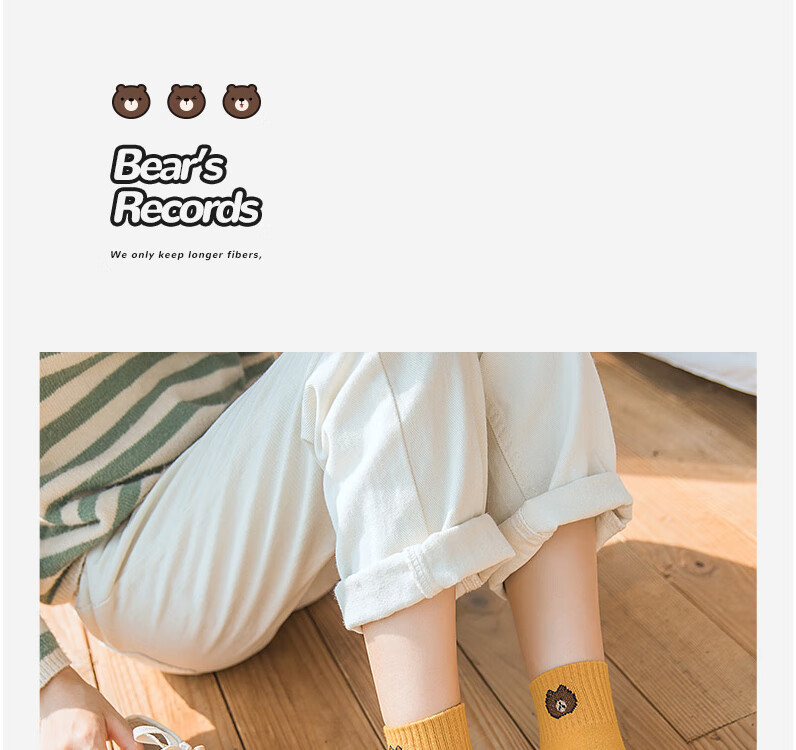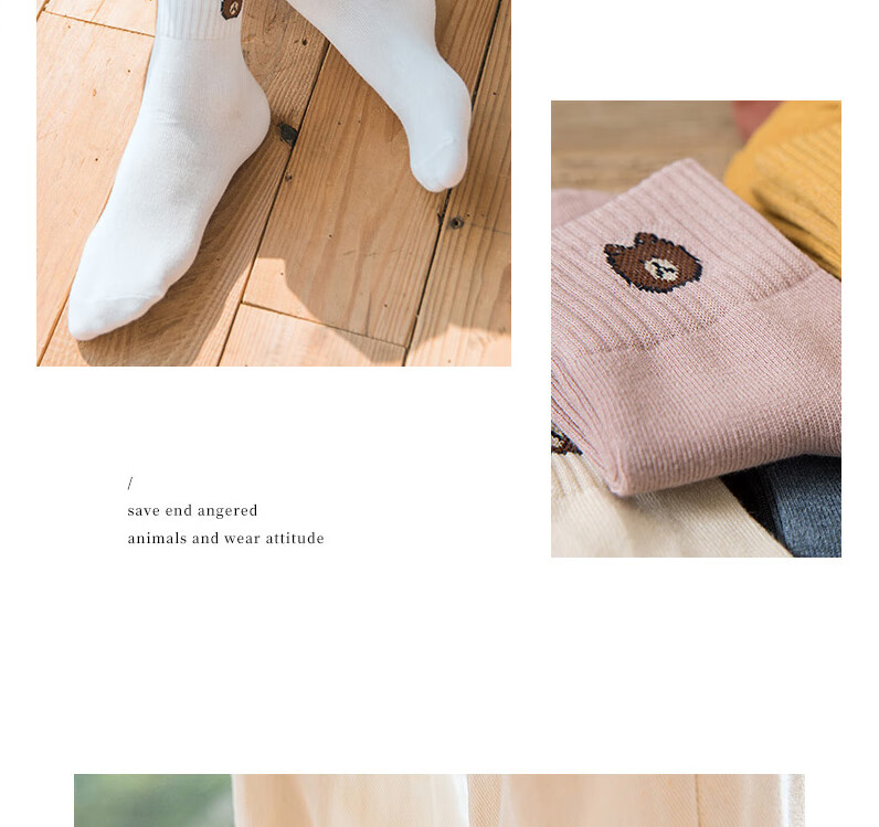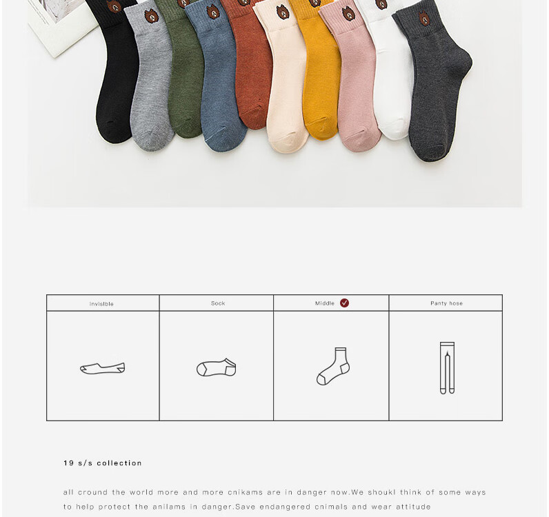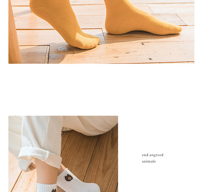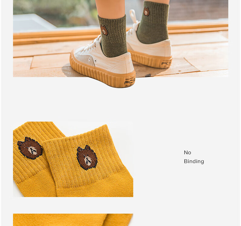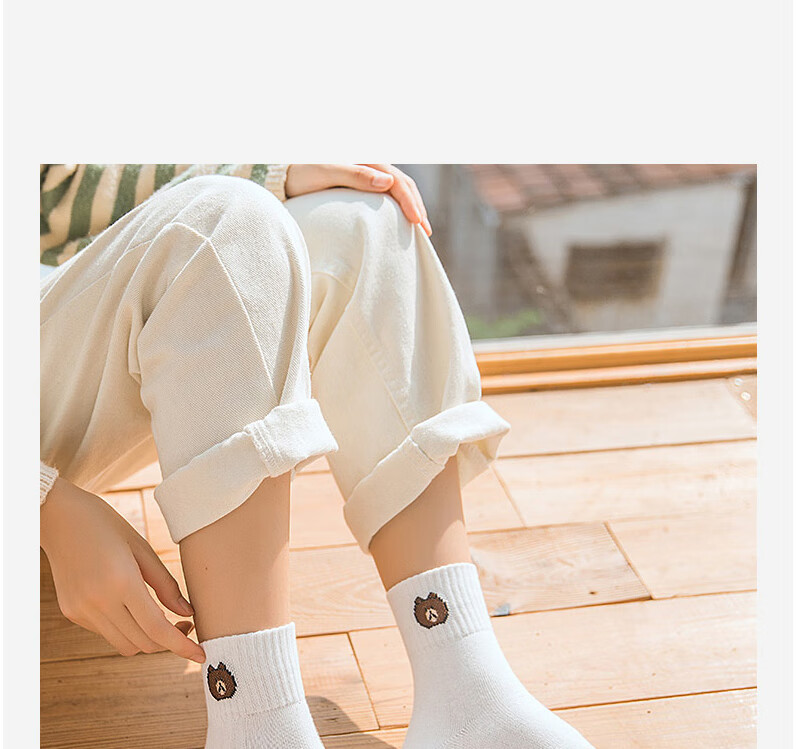 东方缘5双装女士秋冬中筒袜百搭透气日系可爱休闲精梳棉袜 混色 5双