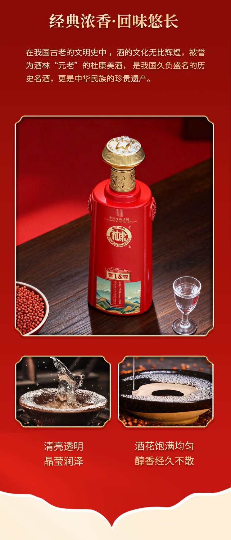 白水杜康(BAISHUIDUKANG)窖酒18酒52度500ml整件6瓶装 52%vol 500mL 6瓶 整件装