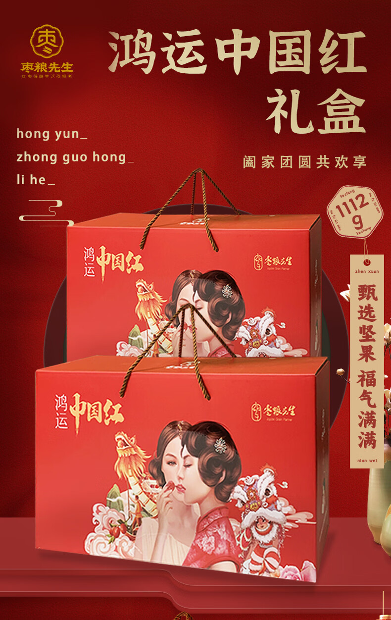 枣粮先生【枣粮先生鸿运中国红红枣礼盒】零食大礼包新年送礼礼盒装1112g 枣粮先生鸿运中国红红枣礼盒1112g