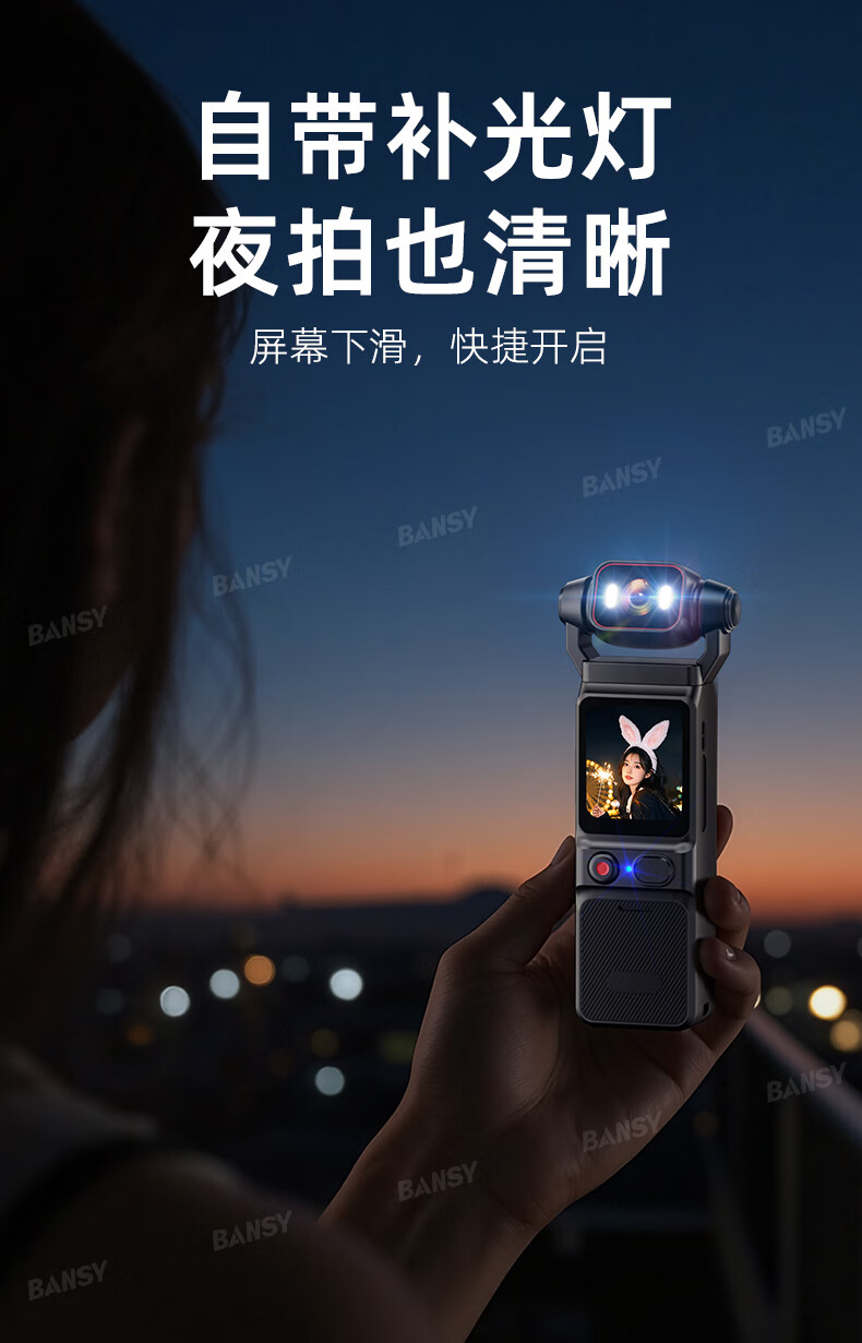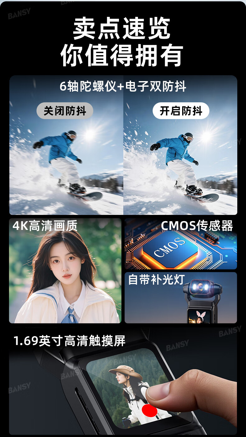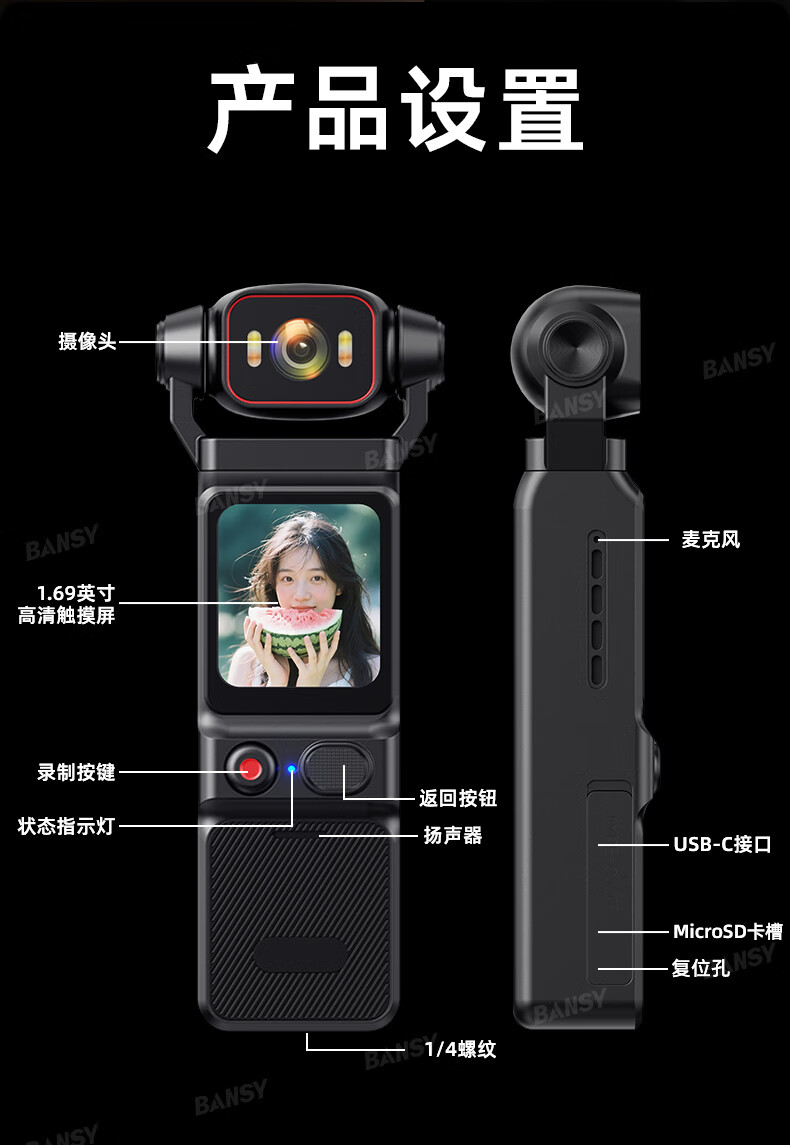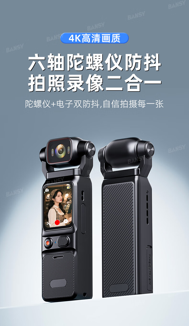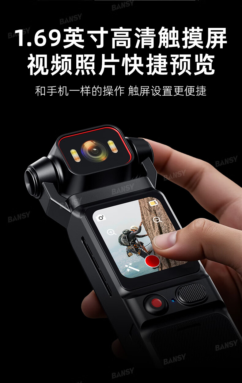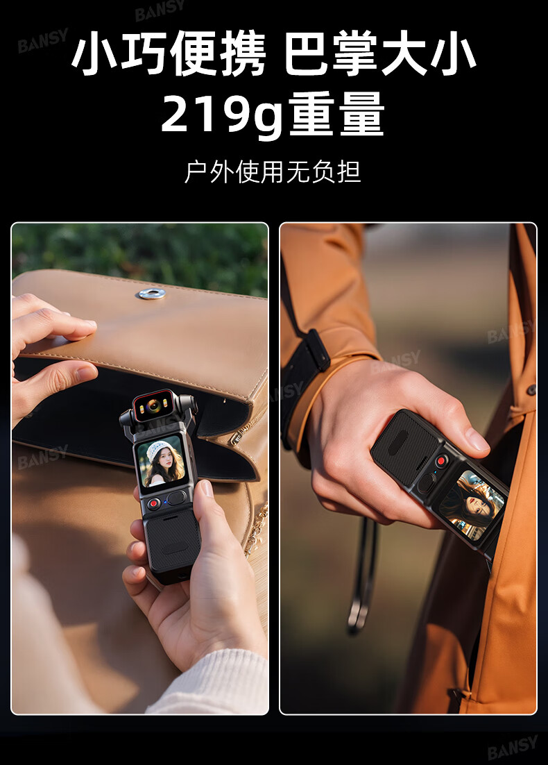 伴兮(bansy)pocket3运动相机拇指4K手持防抖摄像机vlog相机随身拍户外骑行旅游小型记录仪拍照录像机口袋相机 新升级丨更小巧【5K超清触控屏+双重防抖+可旋转】 128G卡【约可录6小时丨WiFi传输】