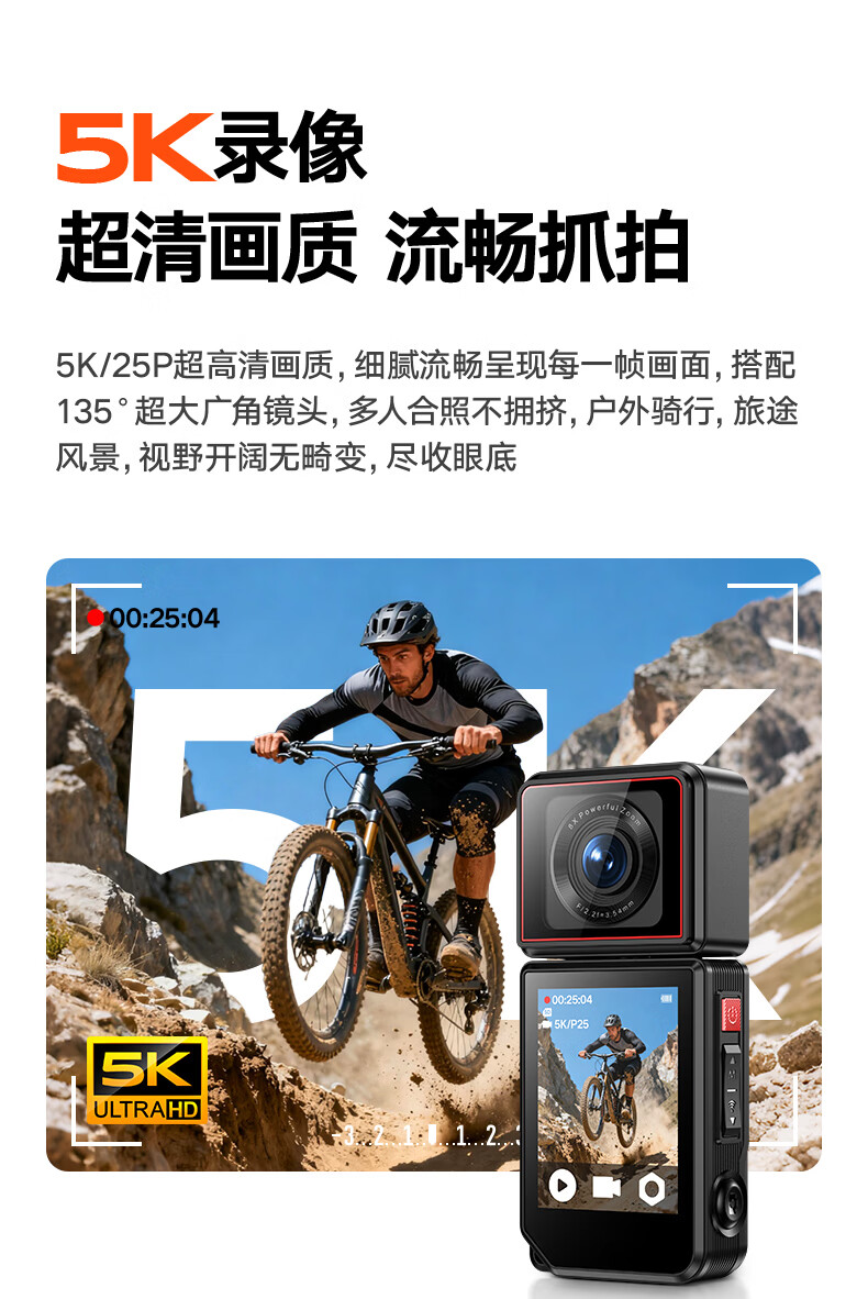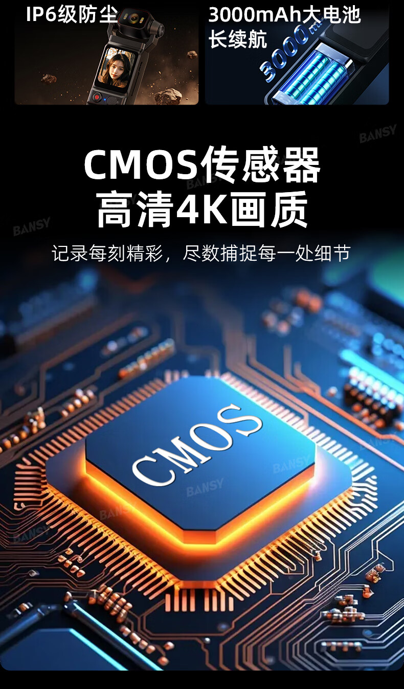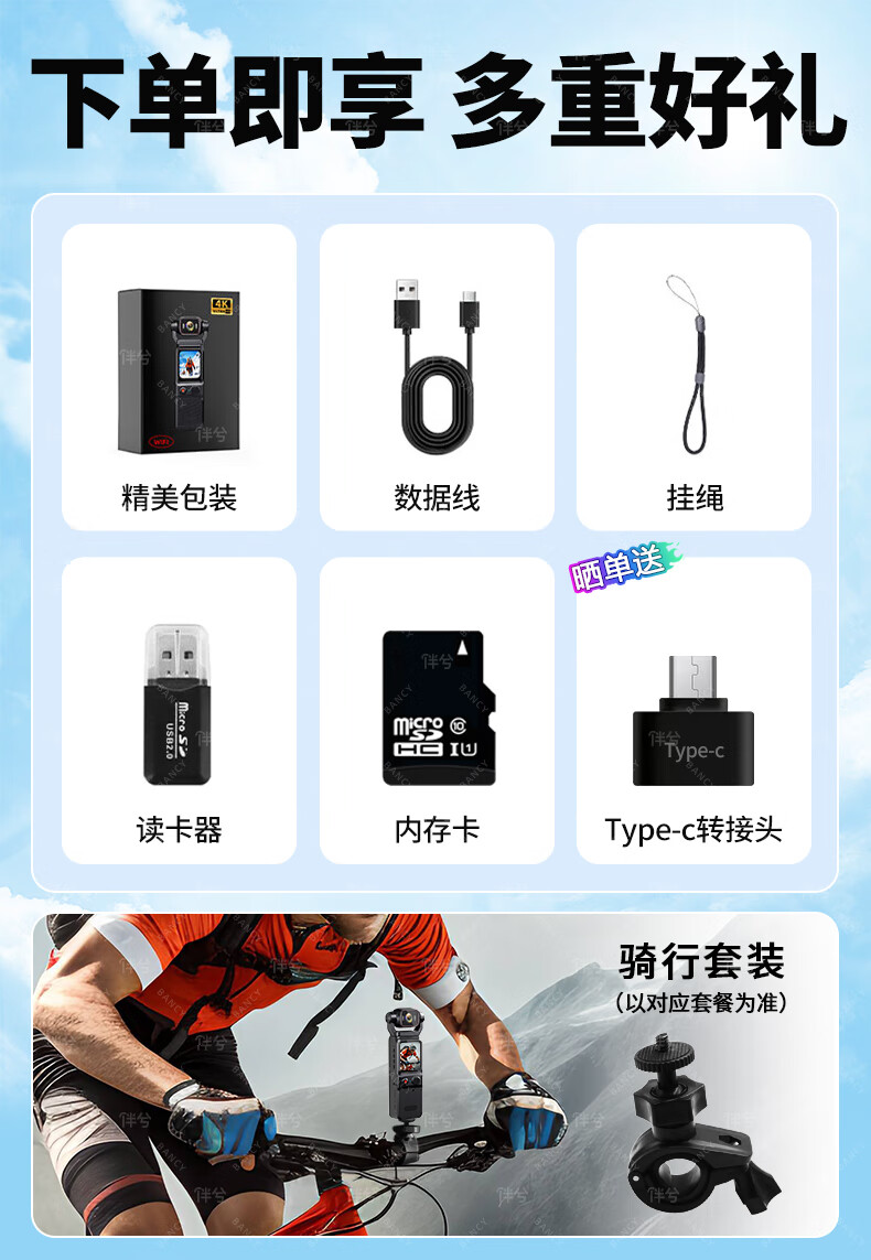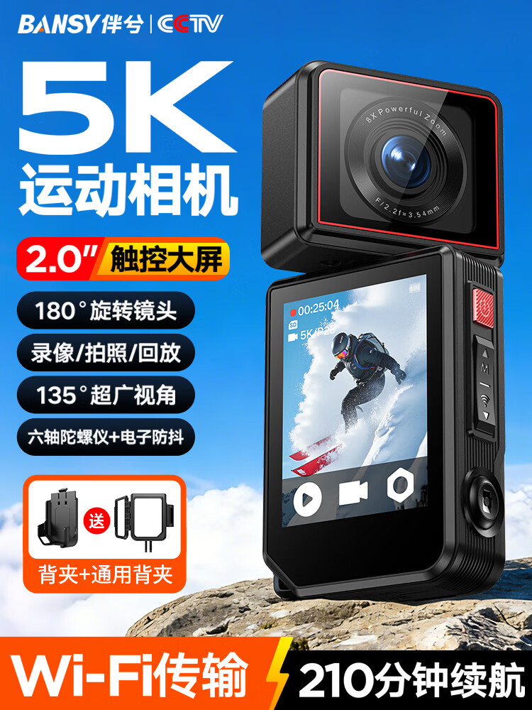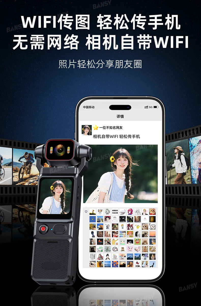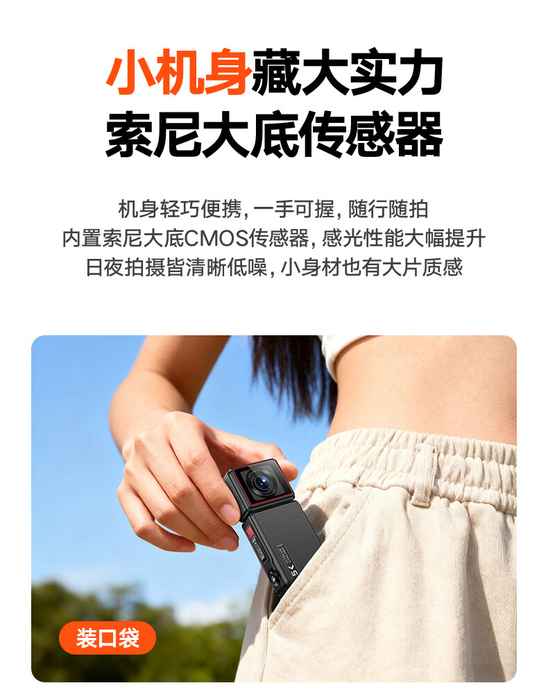 伴兮(bansy)pocket3运动相机拇指4K手持防抖摄像机vlog相机随身拍户外骑行旅游小型记录仪拍照录像机口袋相机 新升级丨更小巧【5K超清触控屏+双重防抖+可旋转】 128G卡【约可录6小时丨WiFi传输】