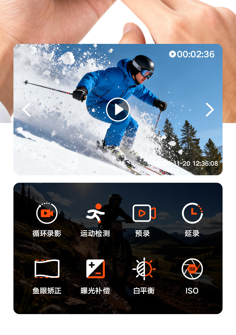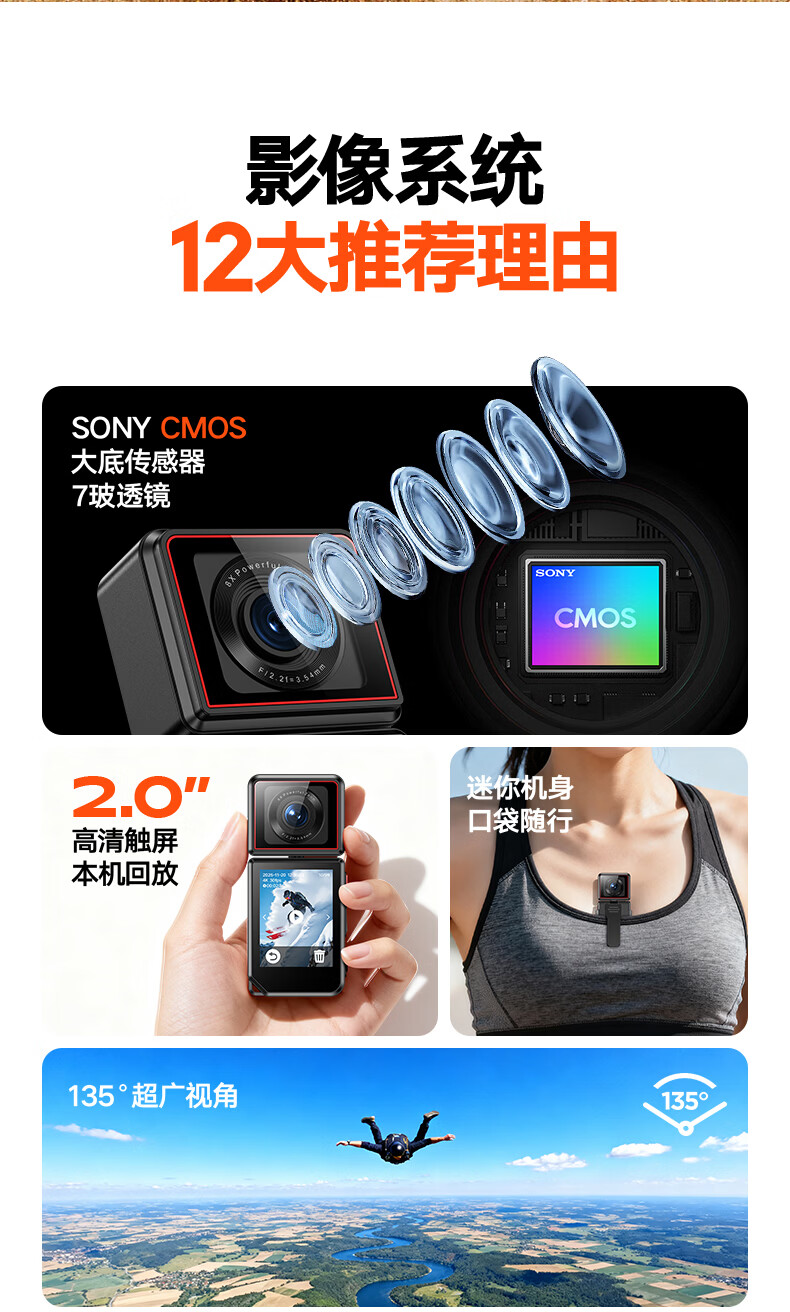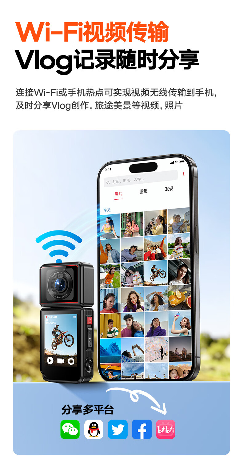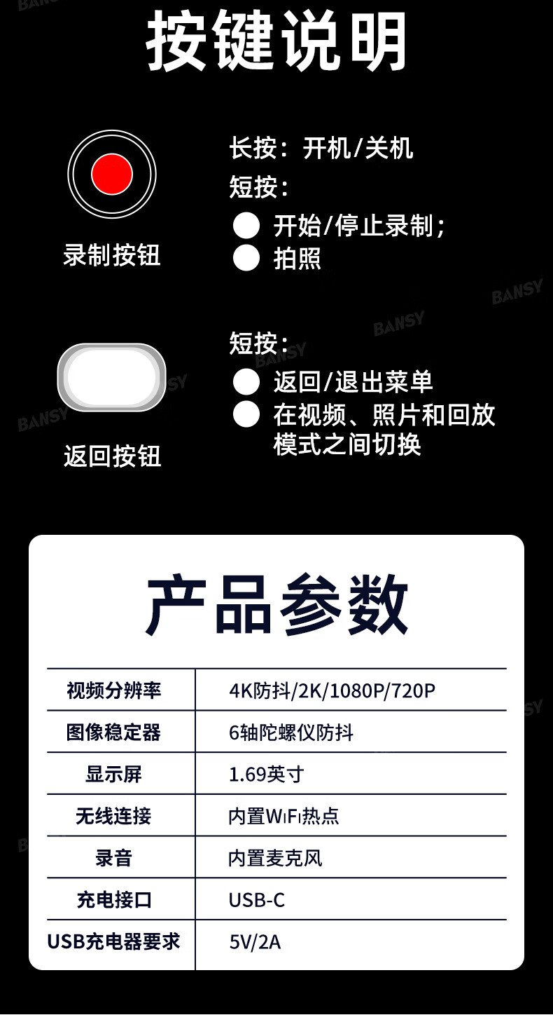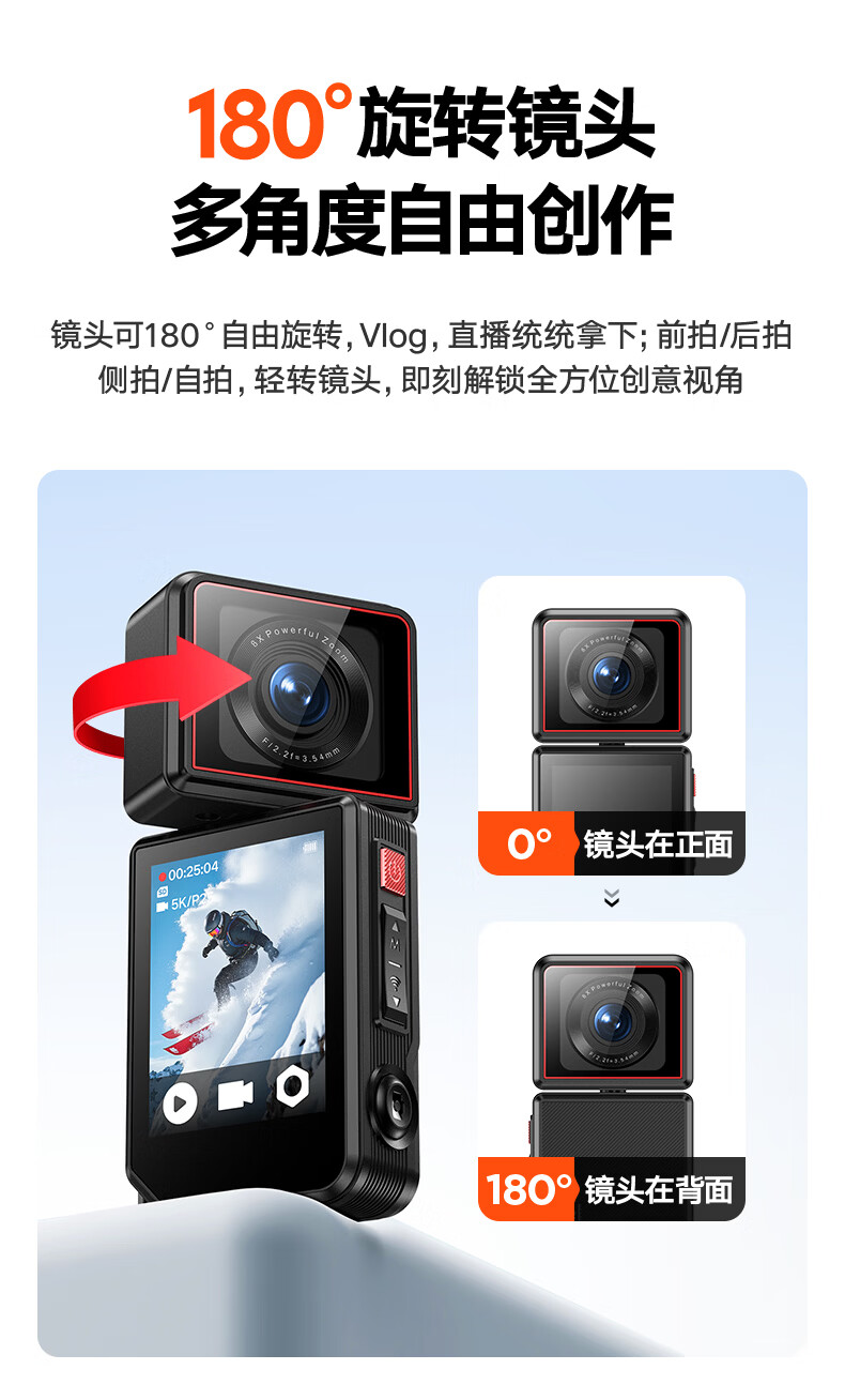 伴兮(bansy)pocket3运动相机拇指4K手持防抖摄像机vlog相机随身拍户外骑行旅游小型记录仪拍照录像机口袋相机 新升级丨更小巧【5K超清触控屏+双重防抖+可旋转】 128G卡【约可录6小时丨WiFi传输】