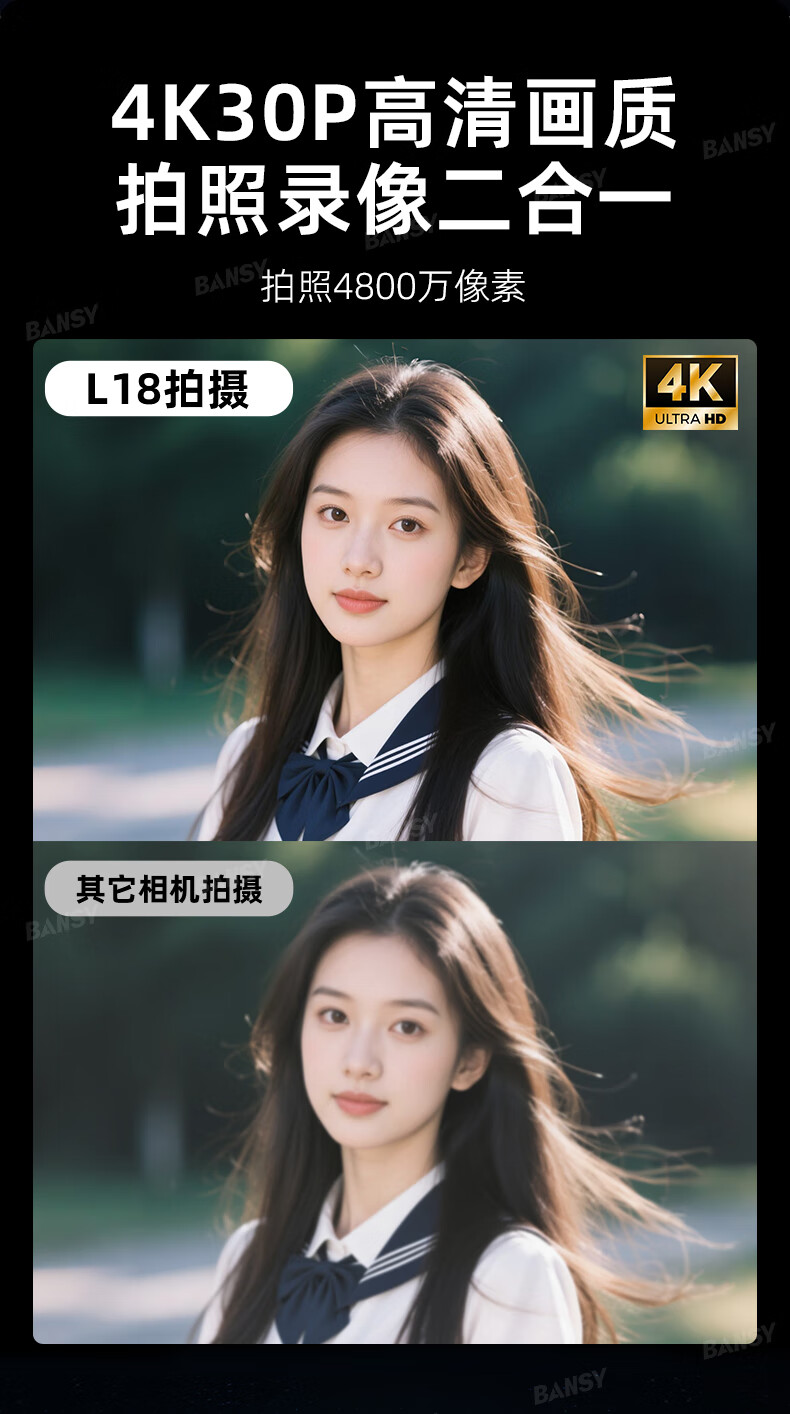 伴兮(bansy)5K高清数码相机入门级微单相机ccd替代学生校园高中生vlog旅游便携双摄自拍可传手机小型照相机 32GB丨5K超清丨双摄自拍