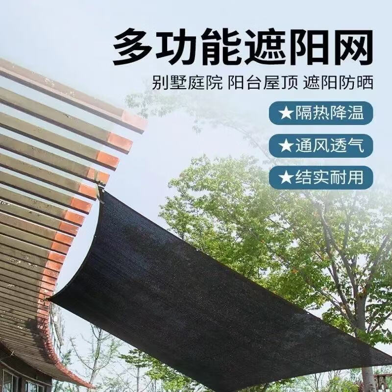 黑色遮阳网加厚加密防晒网包边遮阴网汽车阳台庭院车用隔热太阳网 10米宽20米长新料加厚遮阳率98%