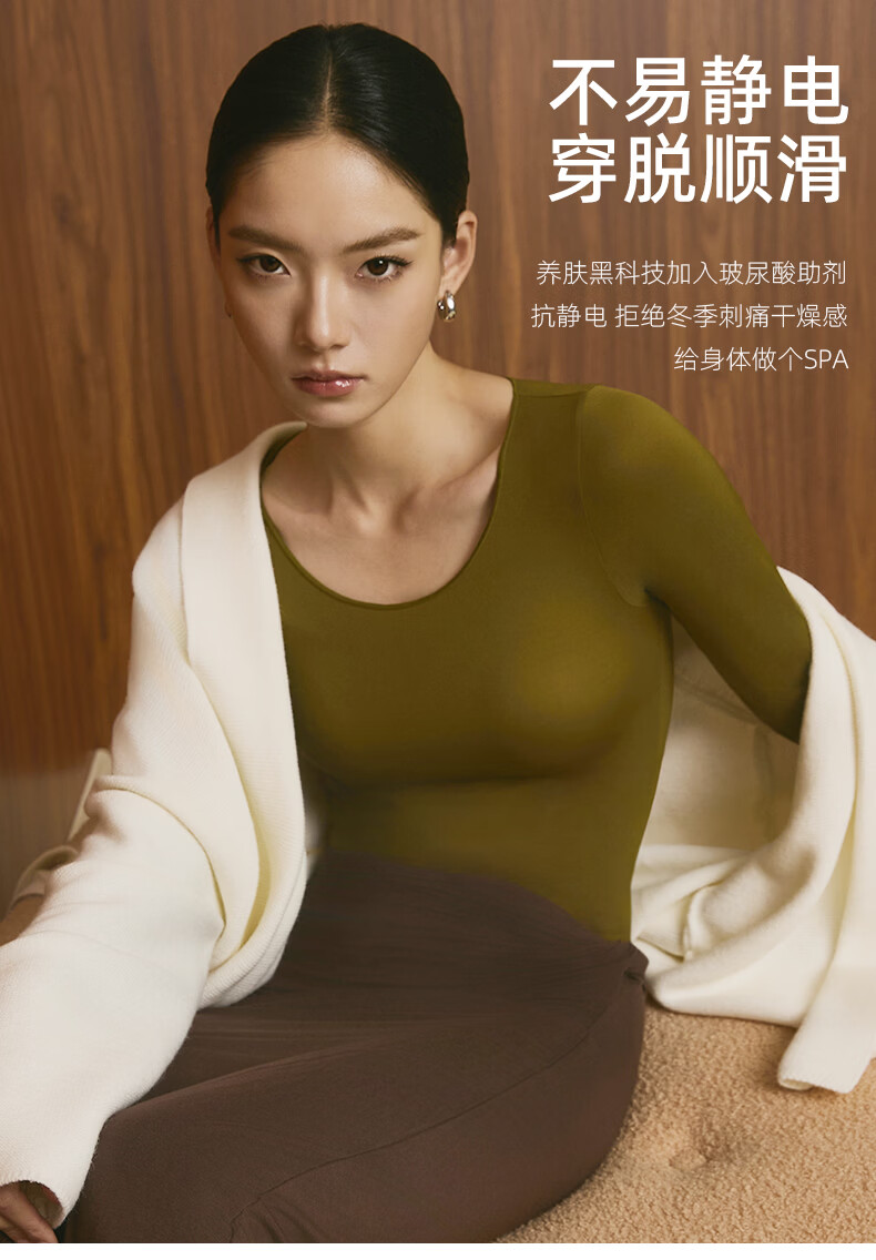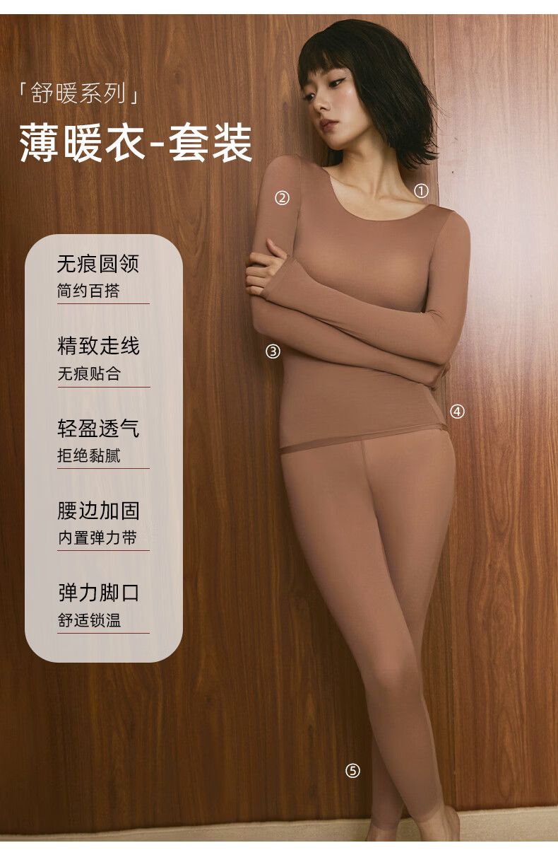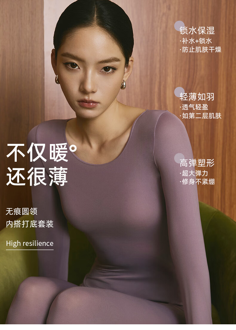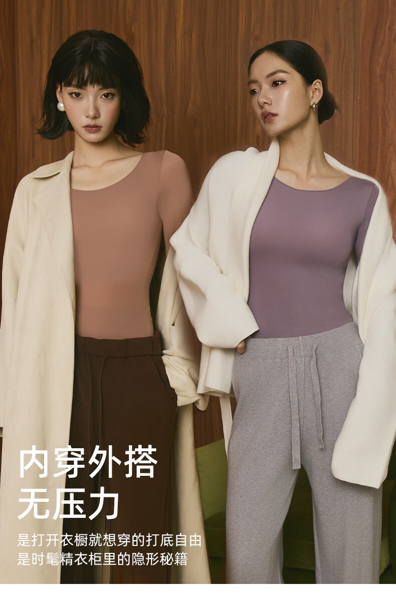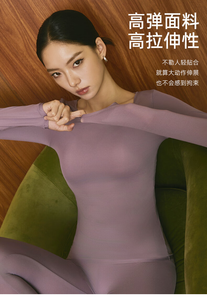 UFEEL3肉色美肤衣秋裤保暖内衣女拒绝臃肿套装秋冬玻尿酸恒温基底衣038 肤+紫 2XL (144-170斤)