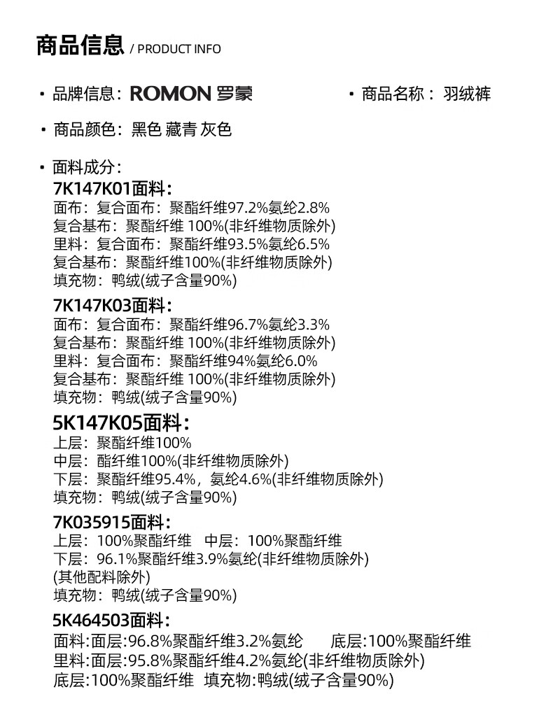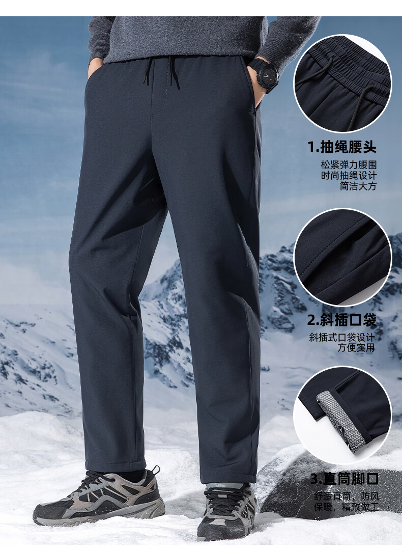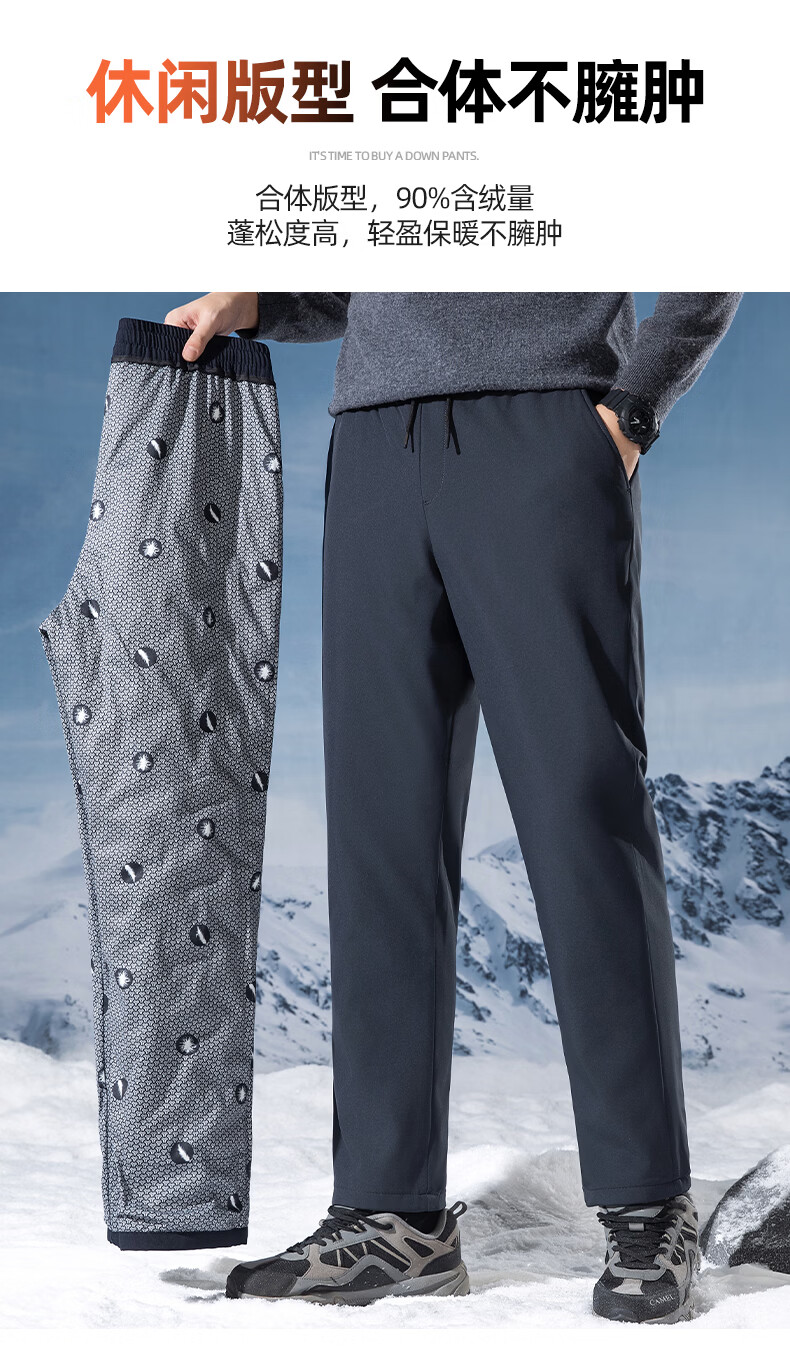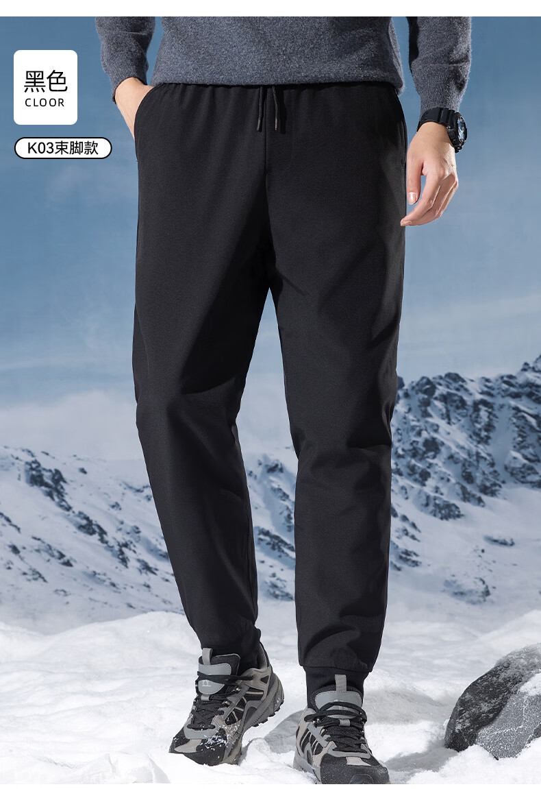 罗蒙(ROMON)羽绒裤男冬季新款中青年保暖防寒加厚休闲裤男士加绒裤 7K035915黑色 2XL /185 建议(160-180斤)