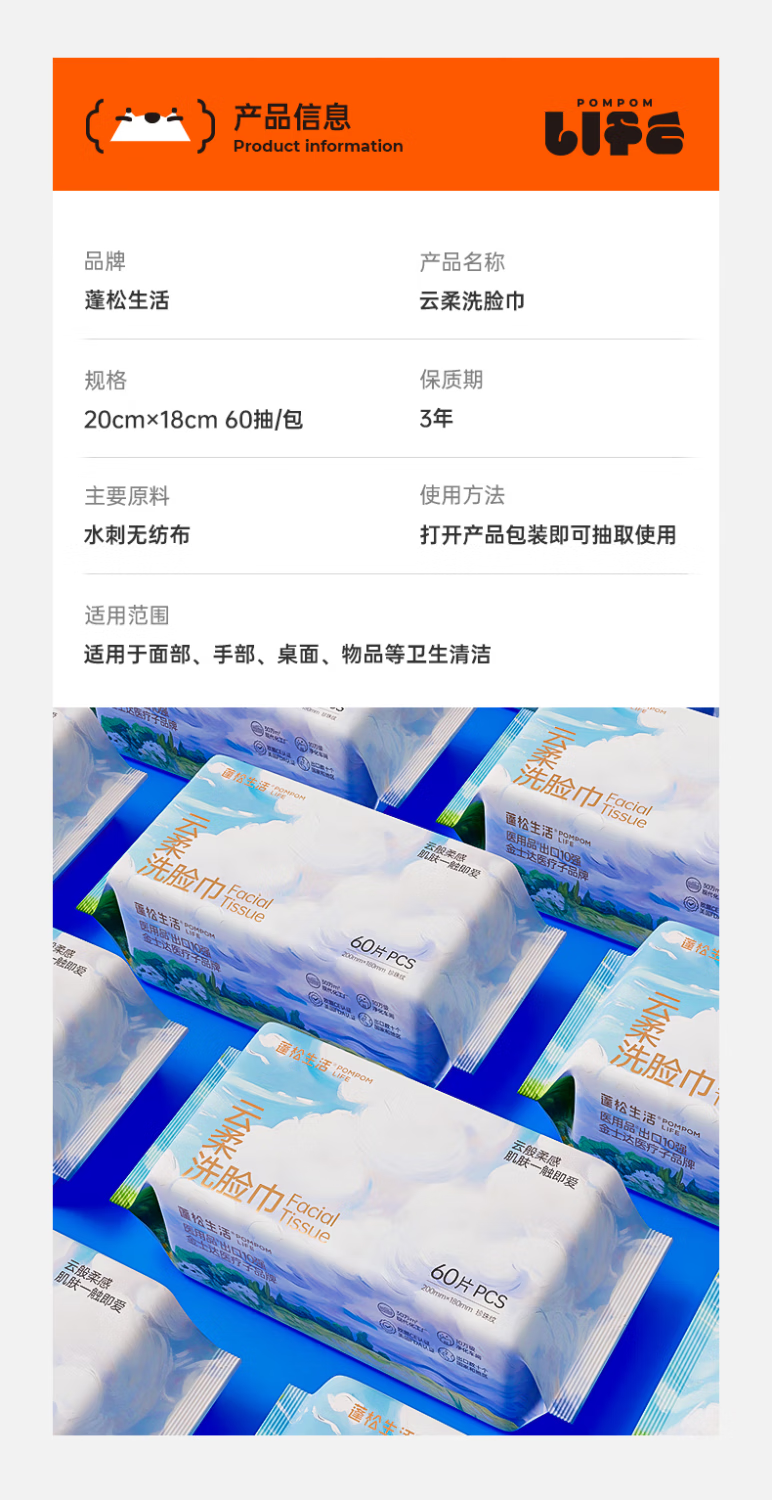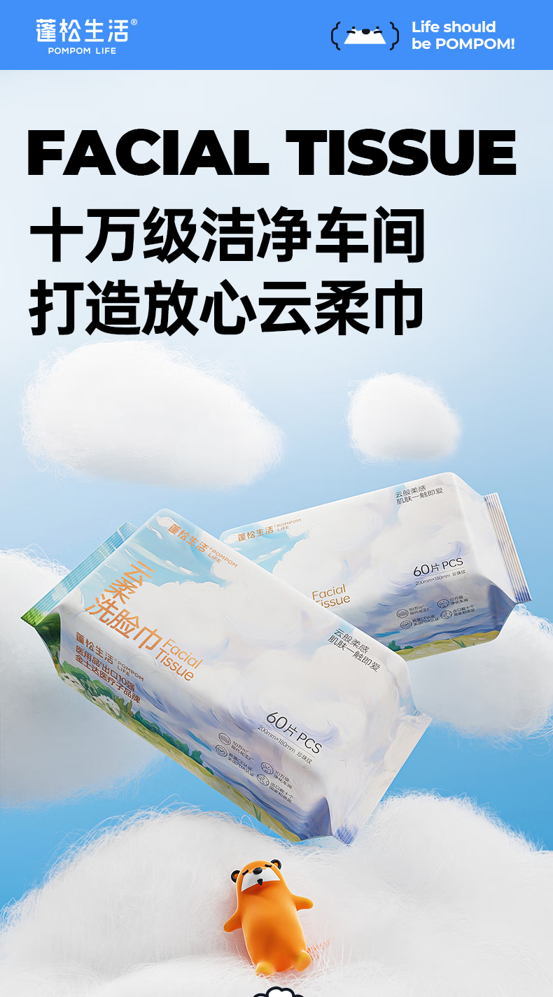 蓬松生活一次性洗脸巾干湿两用绵柔巾洗面巾卸妆柔巾洁面巾 云柔款5包