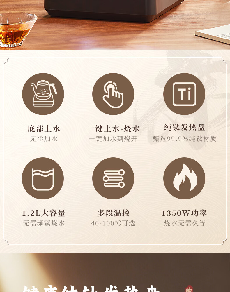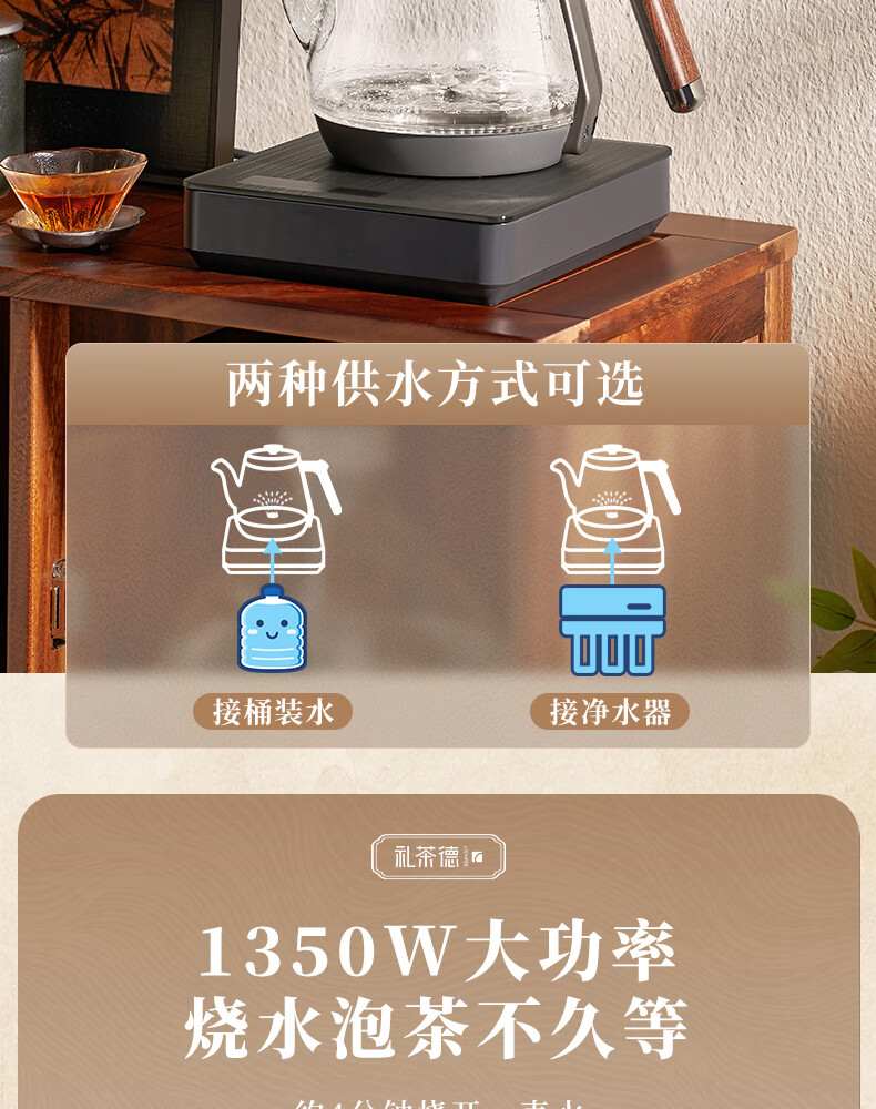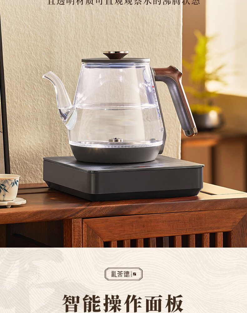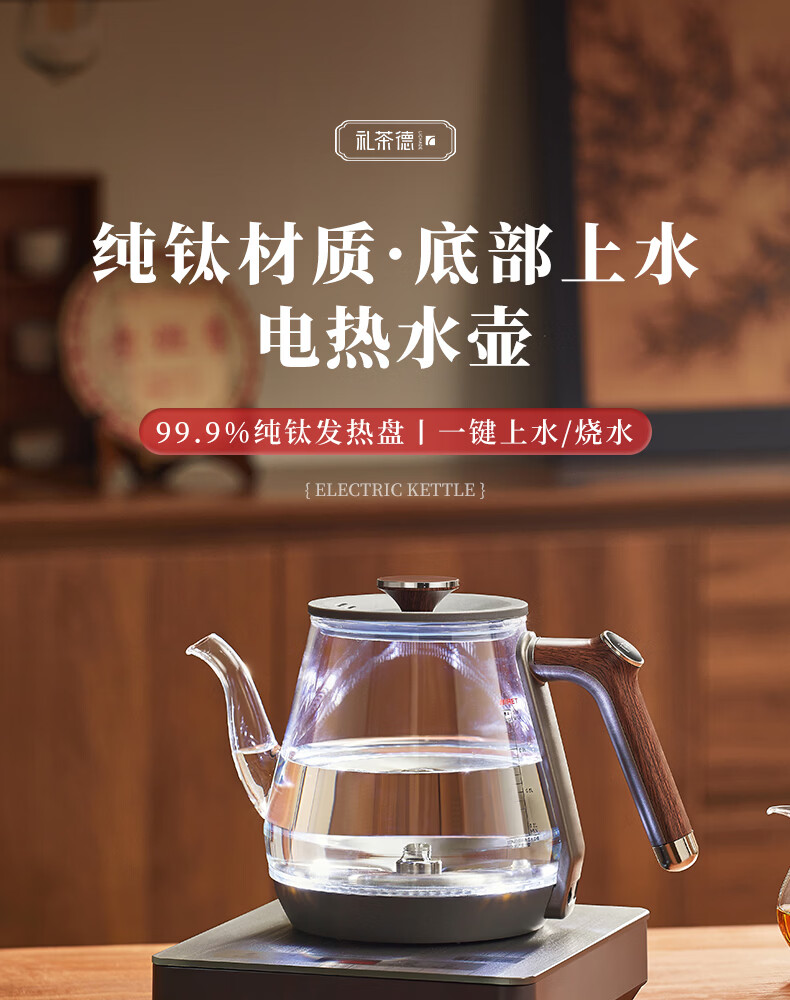 礼茶德纯钛智能底部上水电热水壶全自动家用电茶炉加厚玻璃养生壶泡茶专用一体机 1.2L 【304钢】净水器款