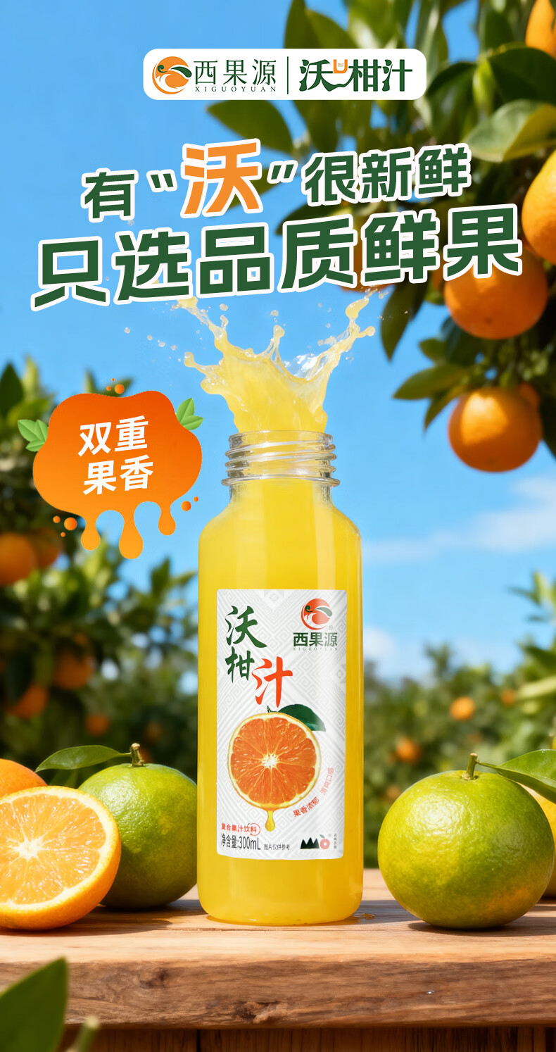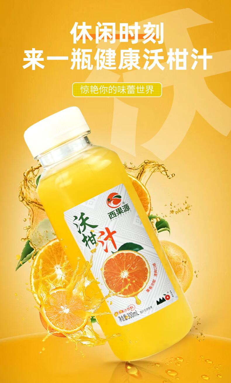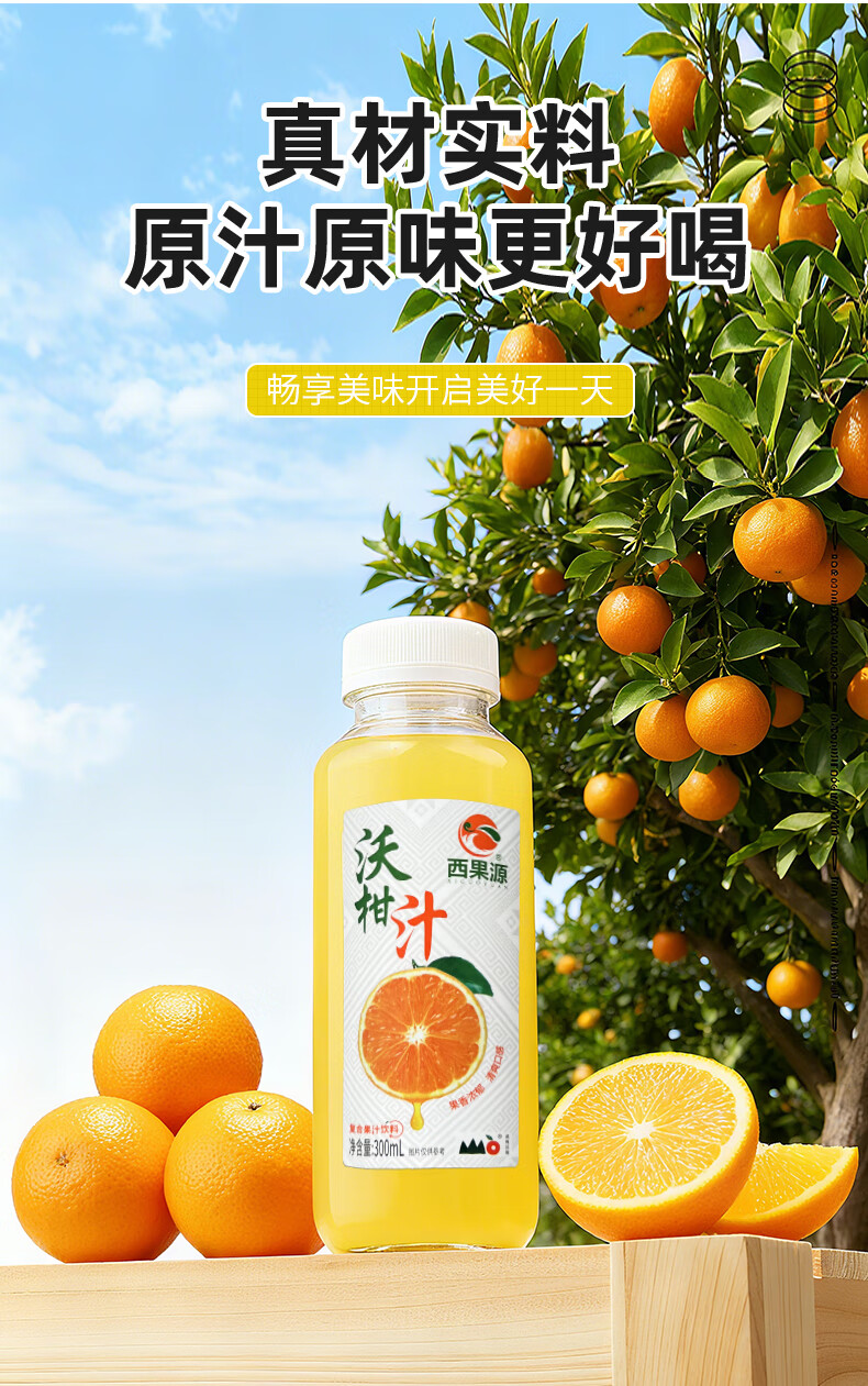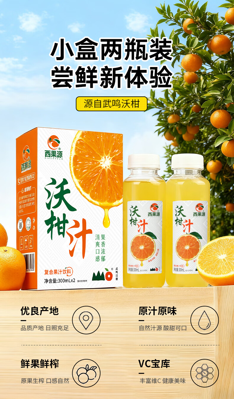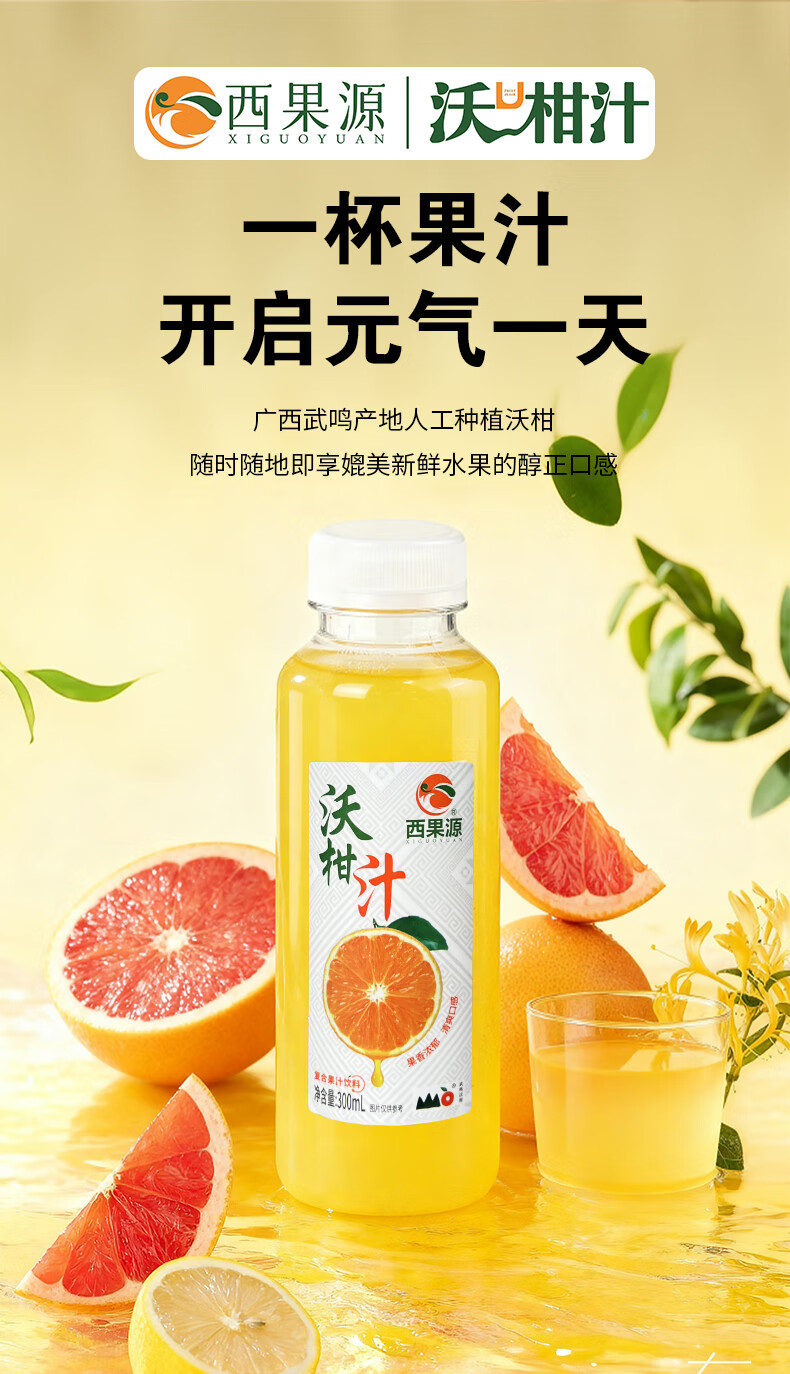 西果源沃柑汁胡柚汁复合果汁双柚汁鲜果萃取饮品武鸣富含VC 300ml*2瓶装
