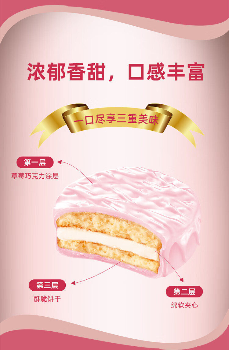 盼盼 可可草莓味派 早餐夹心蛋黄派休闲零食代餐饼干 草莓味 1200g/箱