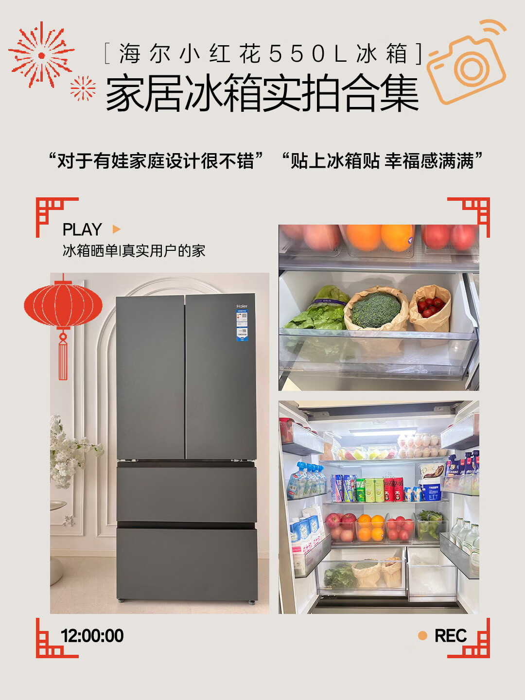 海尔(Haier)「小红花系列」550L法式多门母婴冰箱双系统双净化0串味除菌变温BCD-550WGHFDC9GYU1国家补贴