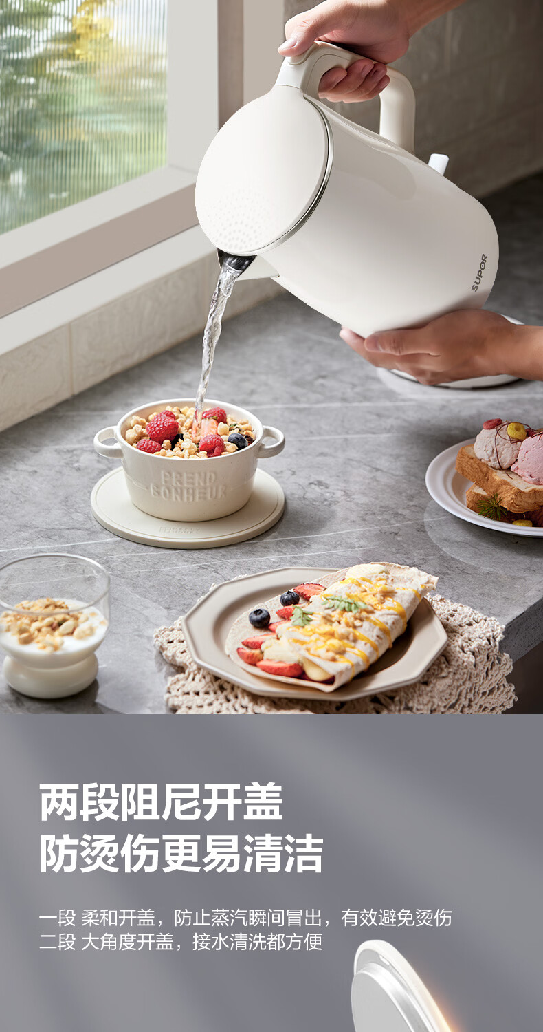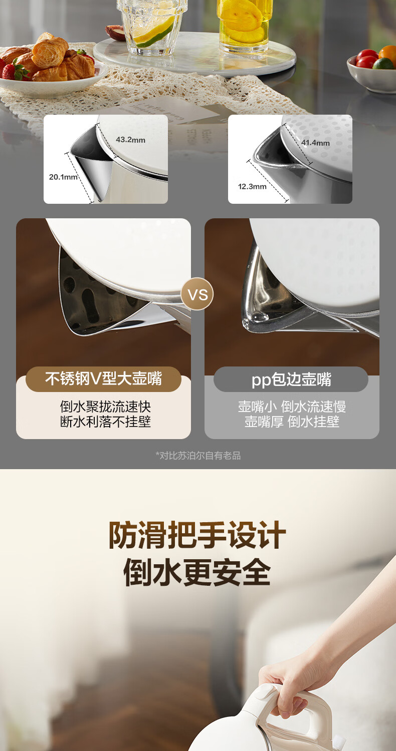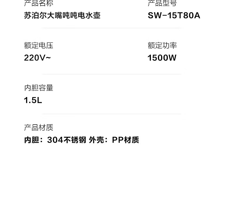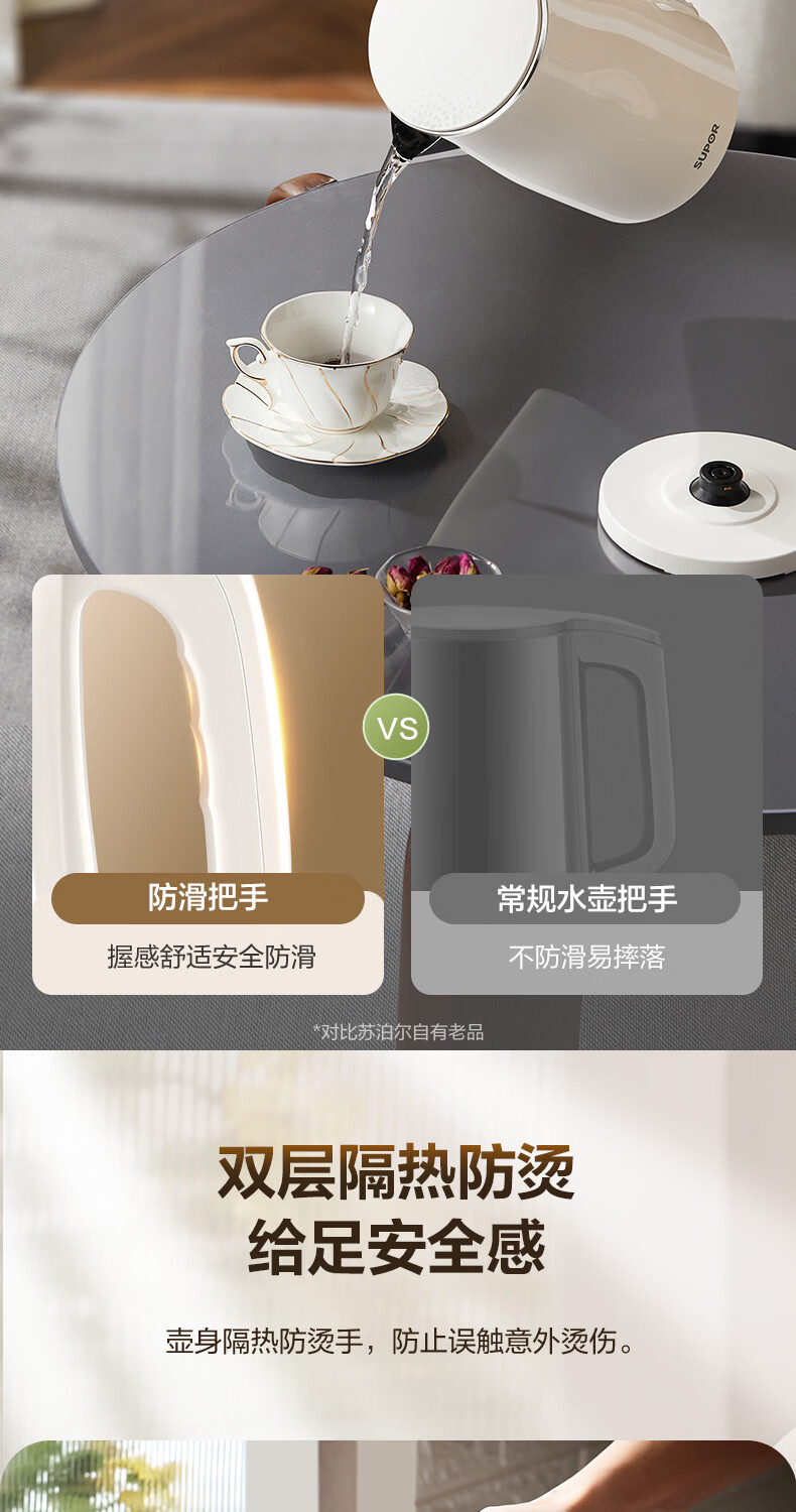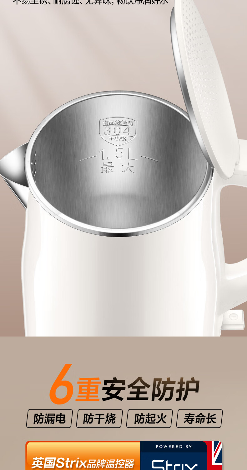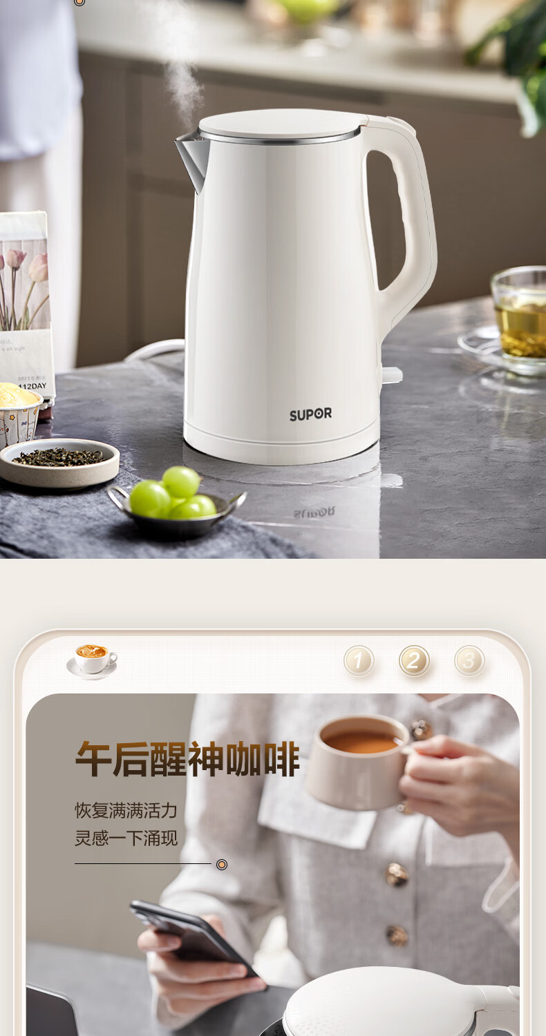 苏泊尔(SUPOR)电水壶烧水壶 1.5L小容量热水壶 304不锈钢健康内胆 双层防烫 电热水壶 SW-15T80A