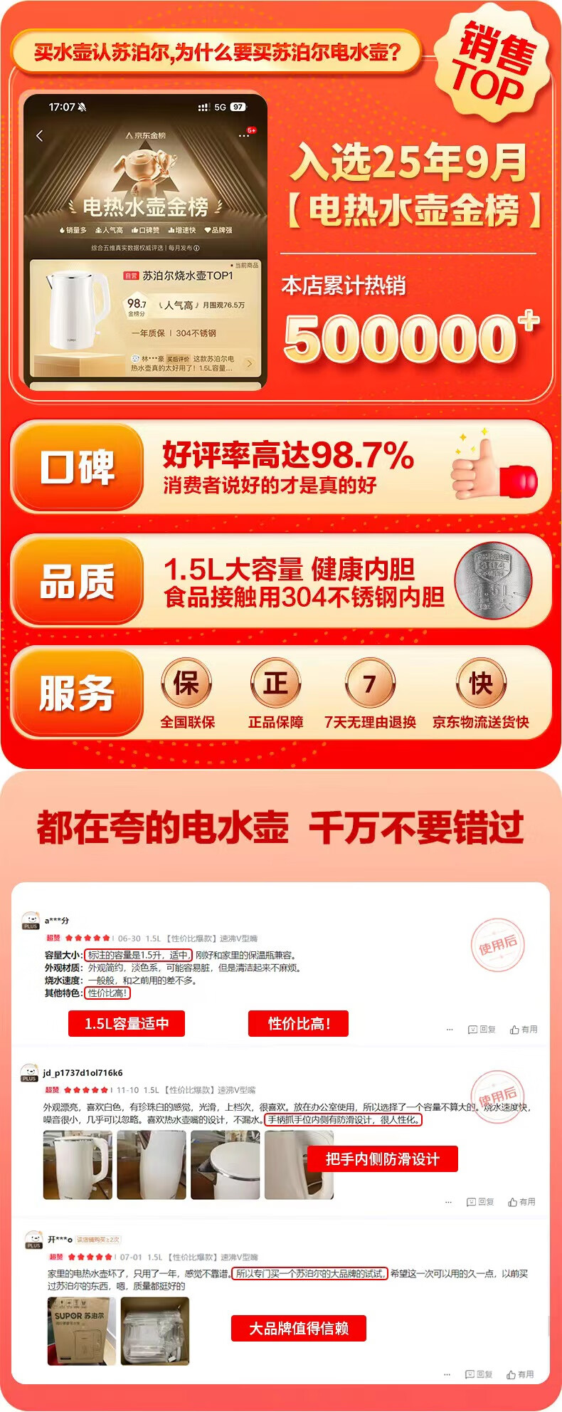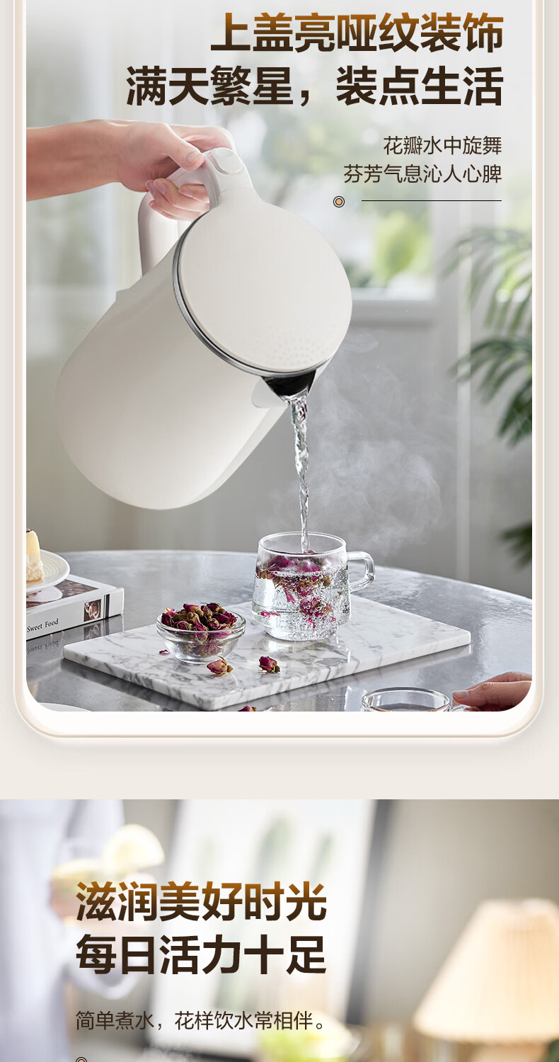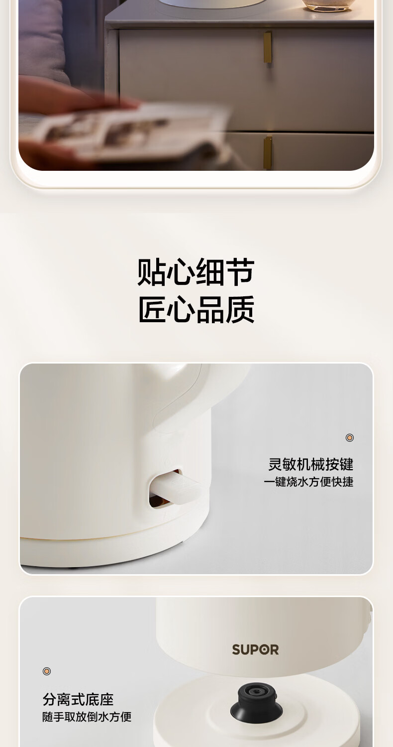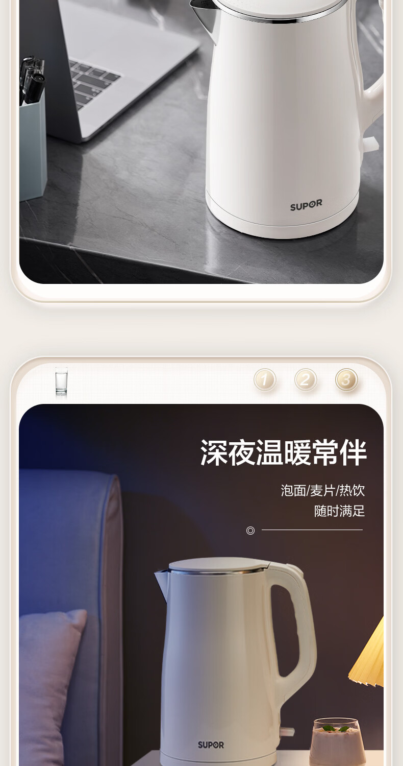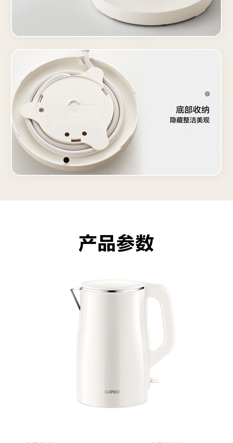 苏泊尔(SUPOR)电水壶烧水壶 1.5L小容量热水壶 304不锈钢健康内胆 双层防烫 电热水壶 SW-15T80A