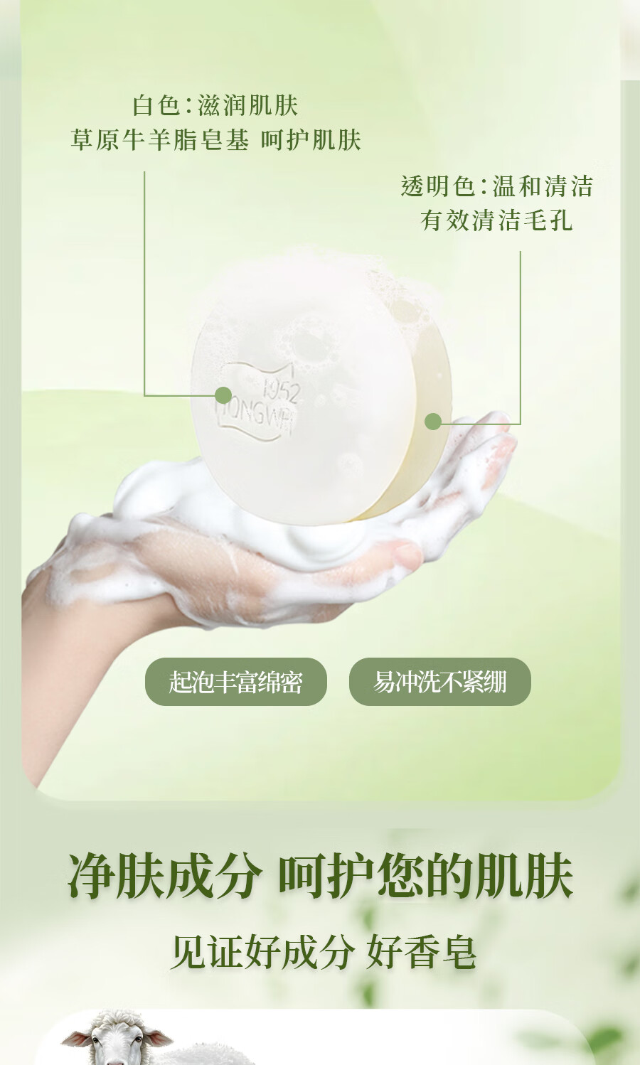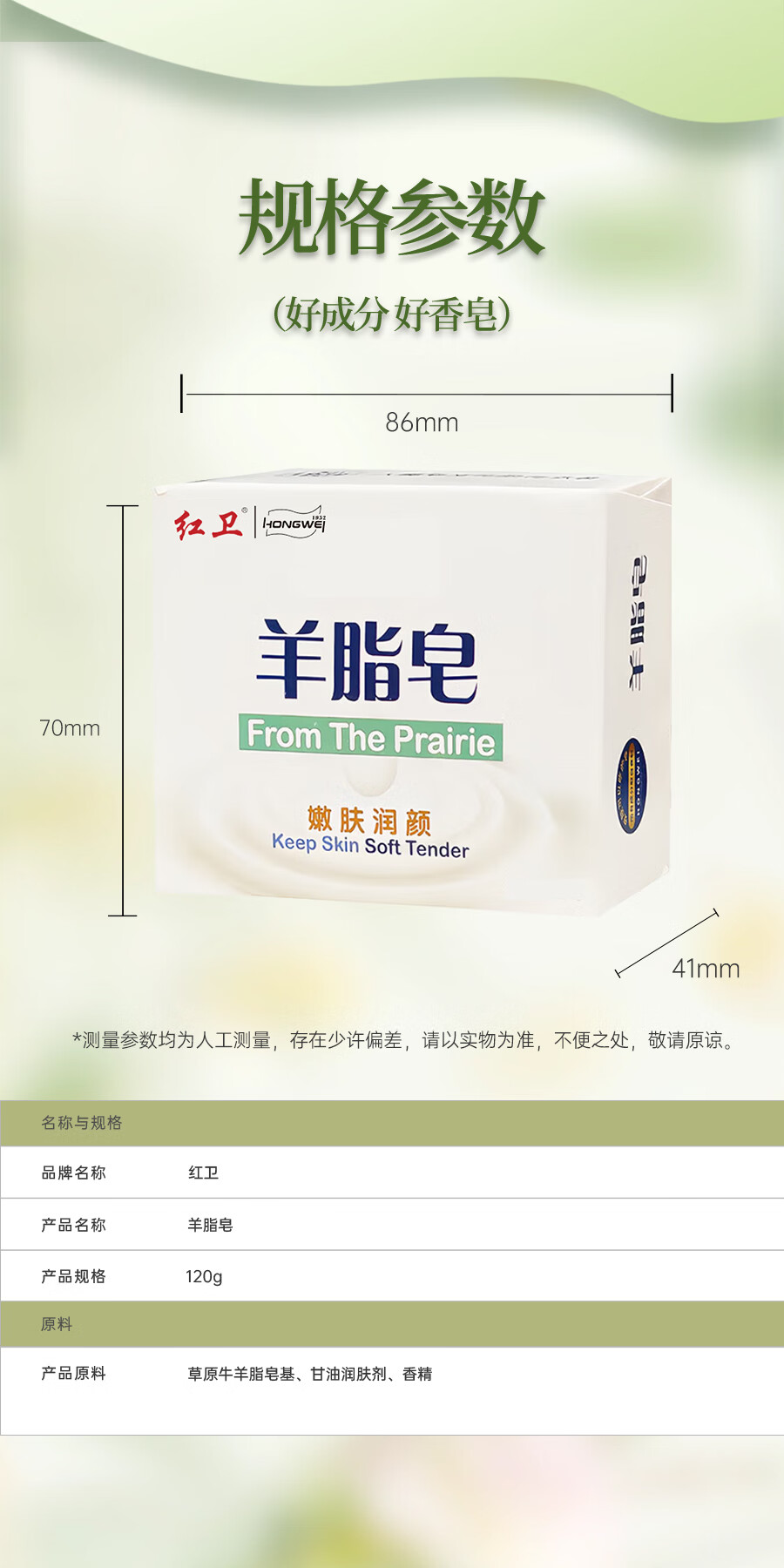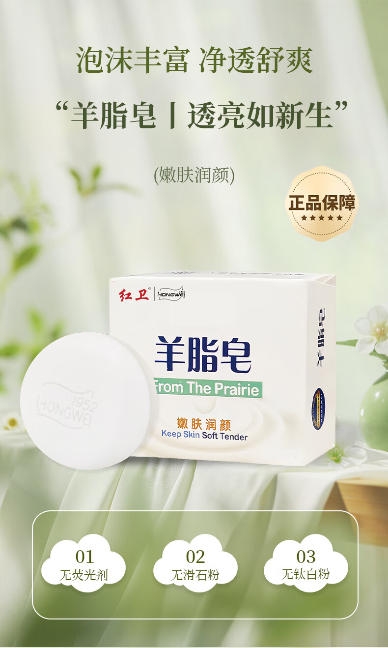 红卫羊脂皂香皂洗脸洗澡沐浴滋润肌肤温和羊奶皂控油香皂健康无添加 红卫羊脂皂120g*5块