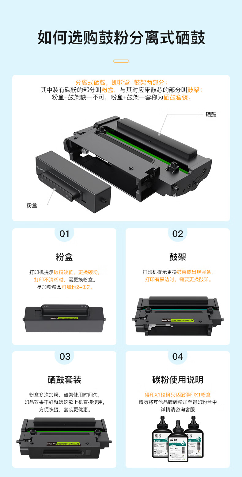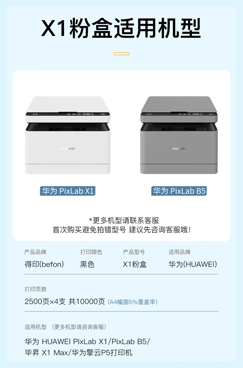 得印适用华为X1打印机墨盒粉盒4支装 毕昇X1 Max 华为X1粉盒硒鼓 F-1500墨粉盒 huawei PixLab X1/B5打印机碳粉盒