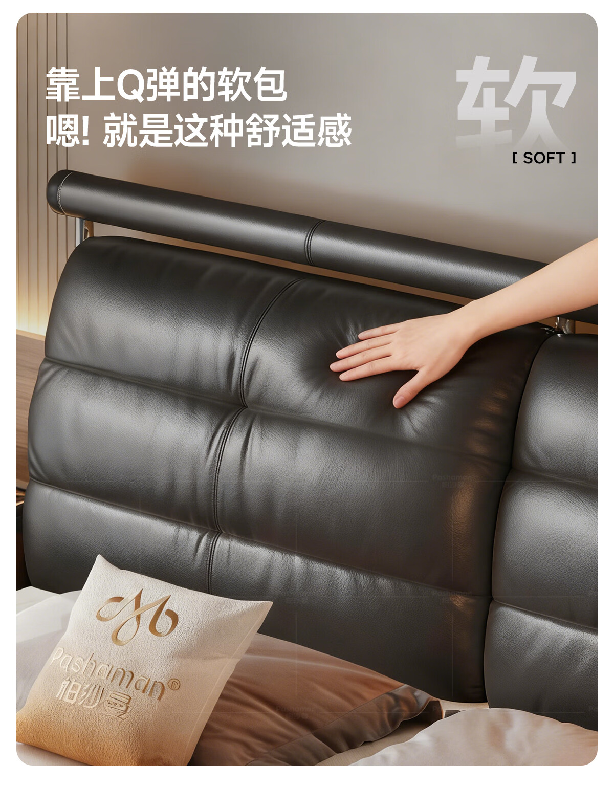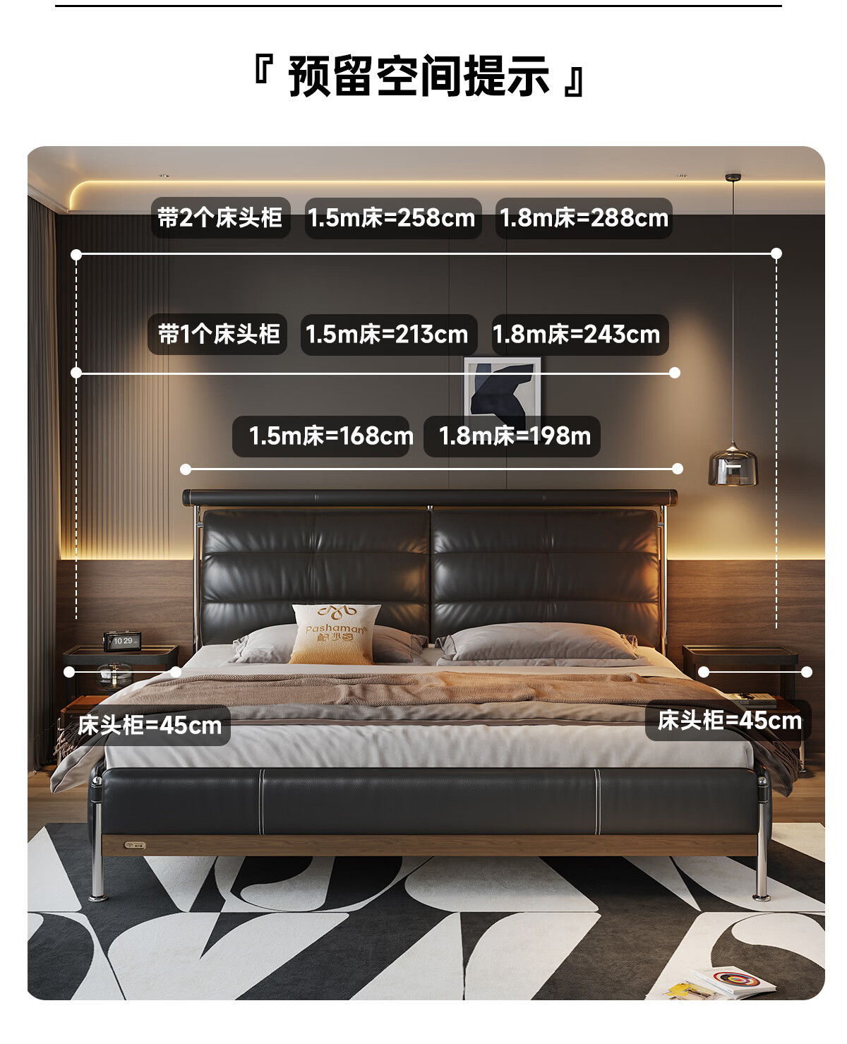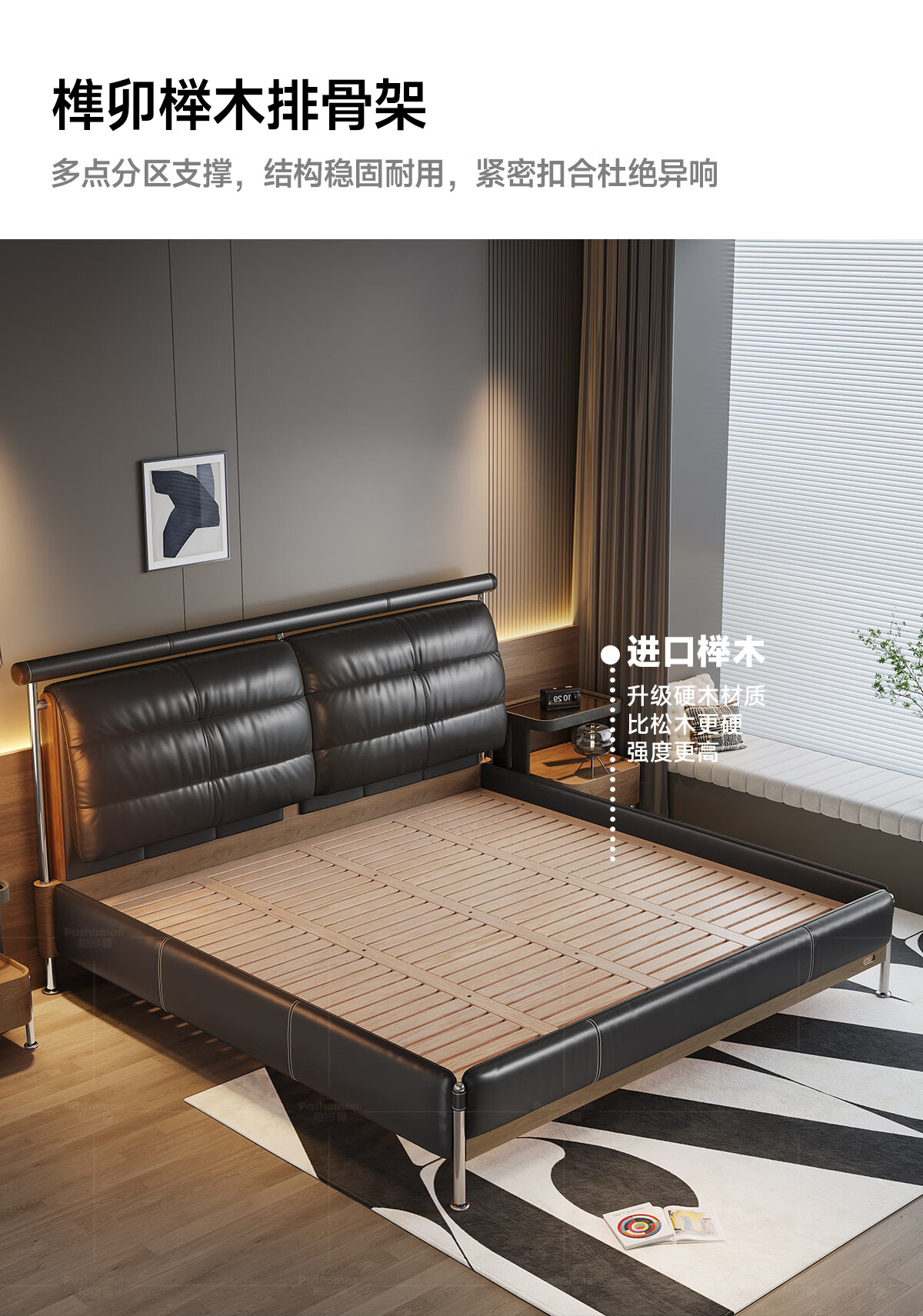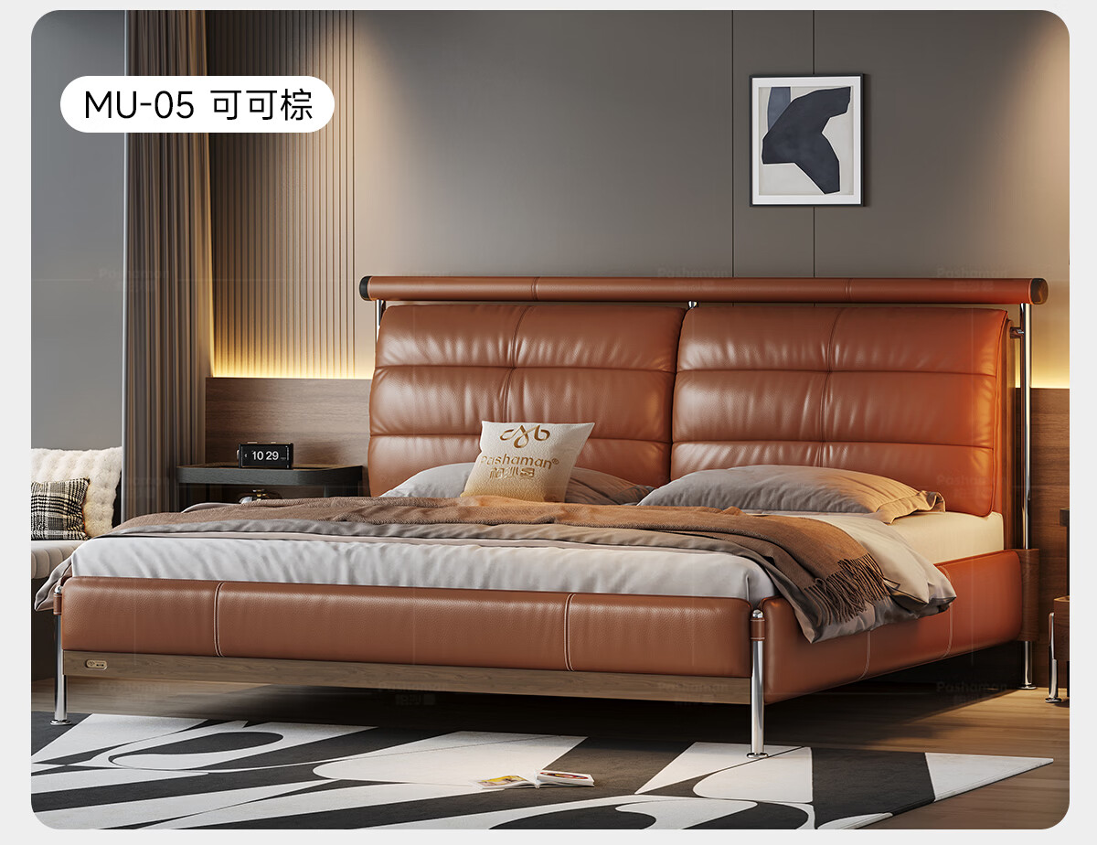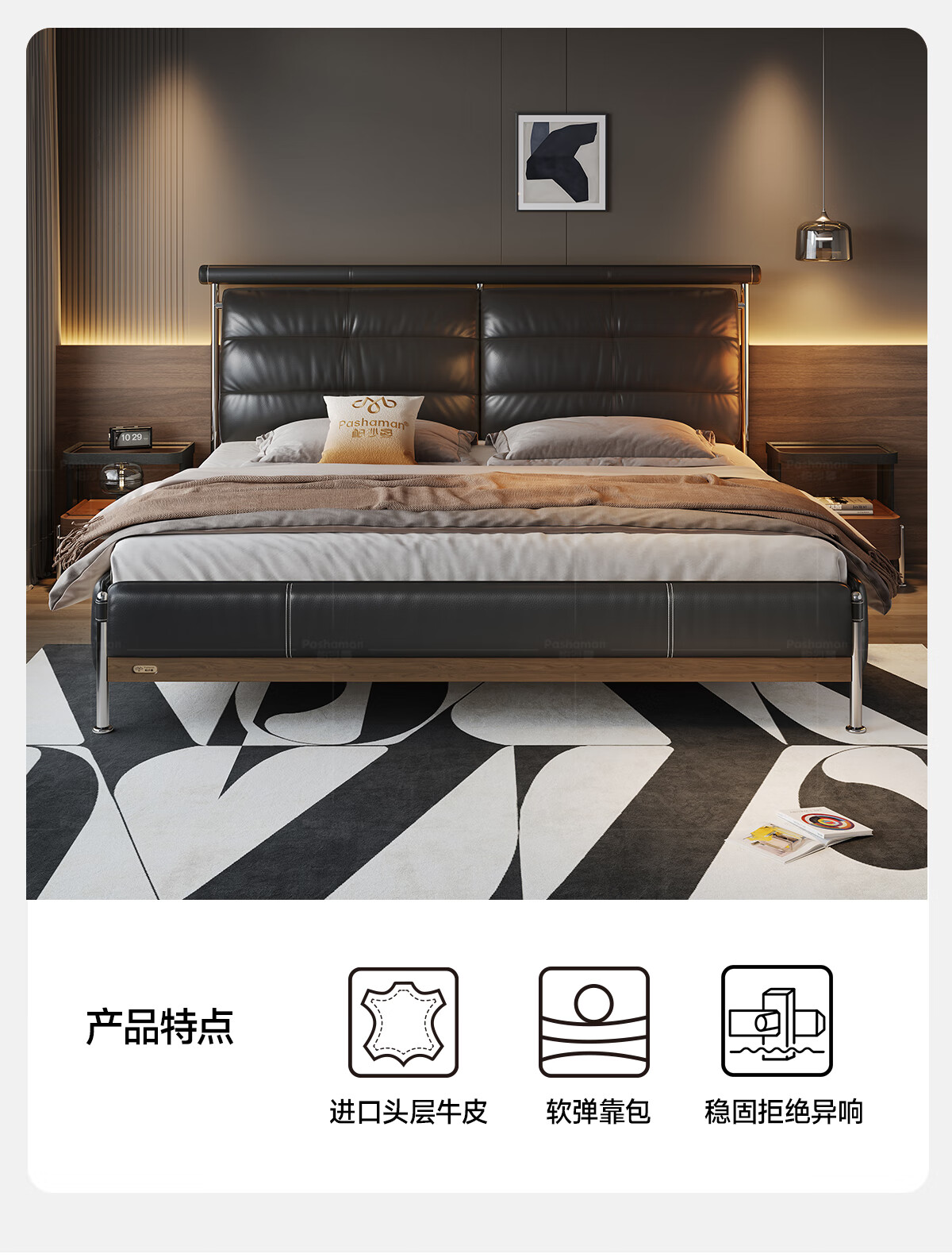 帕沙曼包豪斯床真皮实木床1米8双人床主卧高端大气2025新款CP005-L 【豪华版|单床】15cm钢木排骨架+头层牛皮 1.5*2米