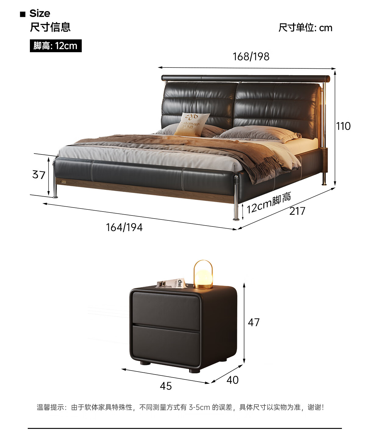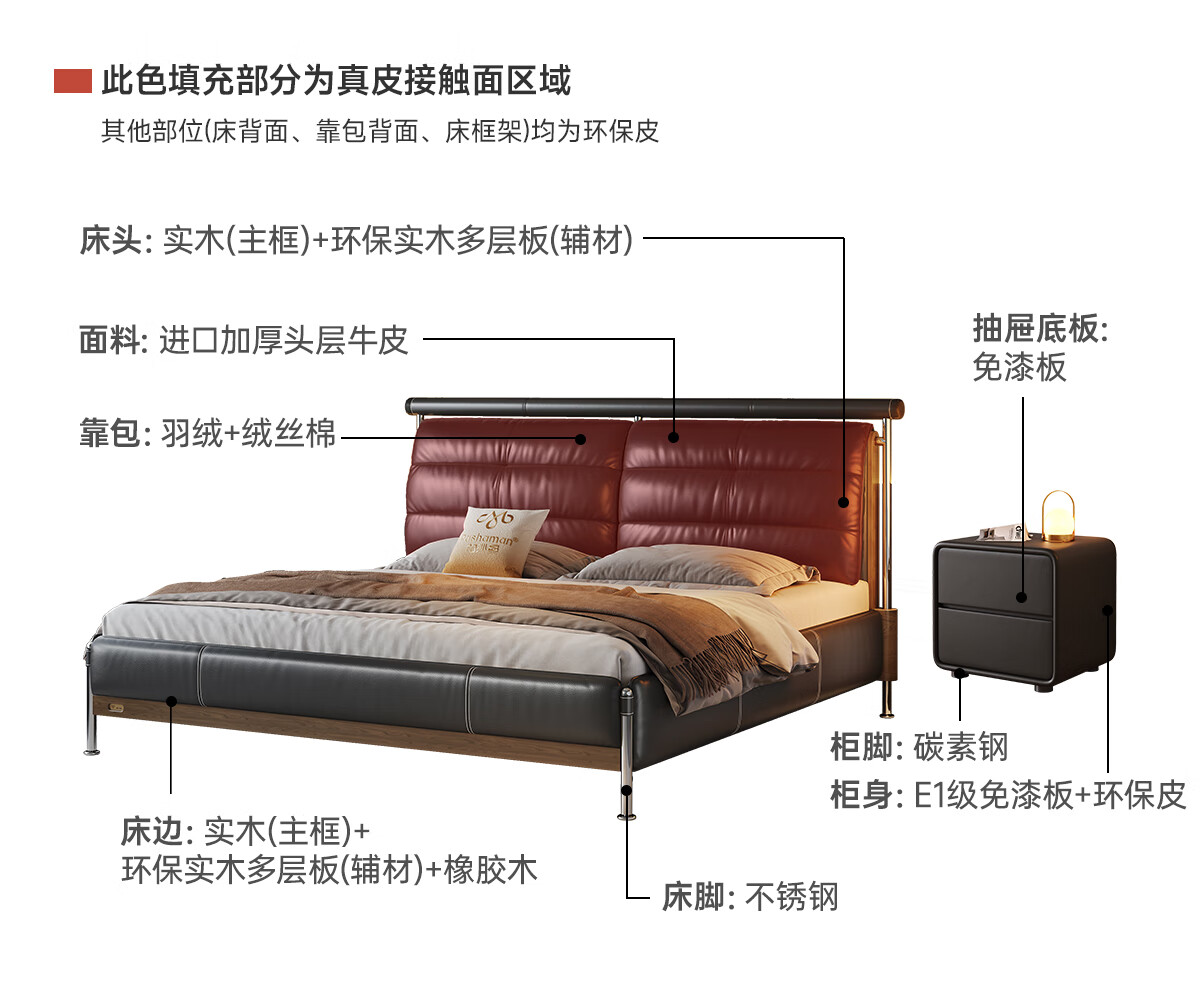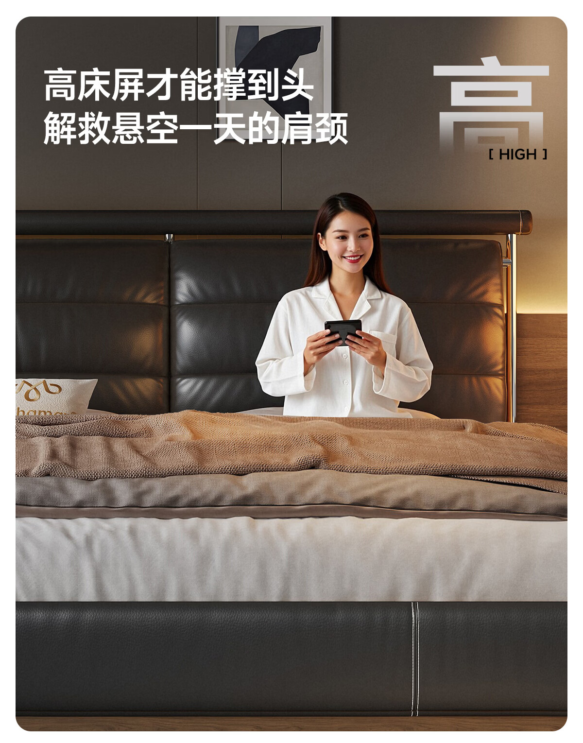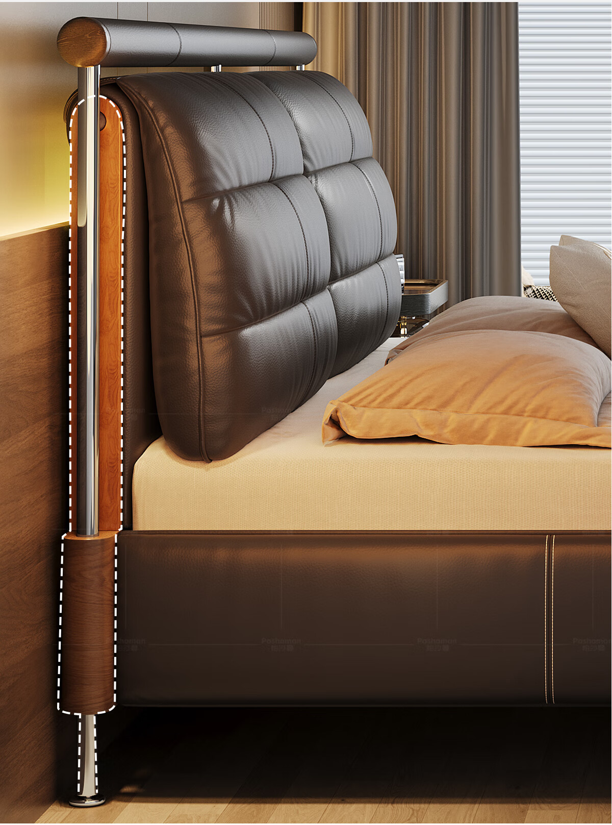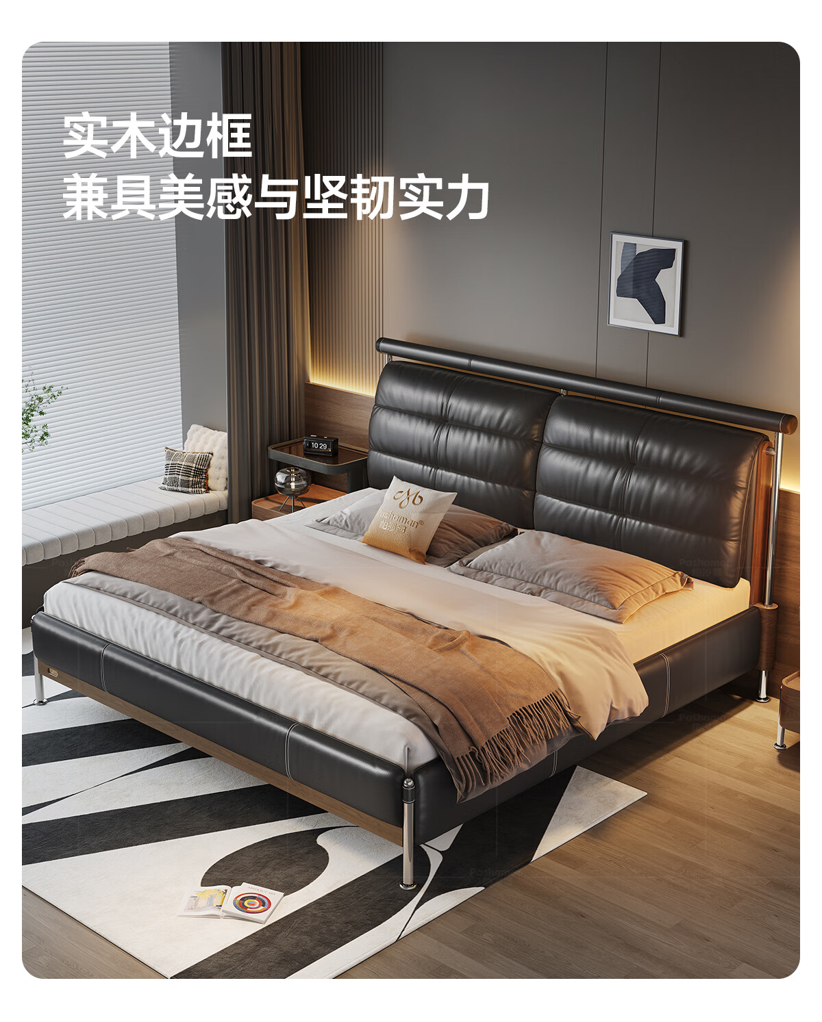 帕沙曼包豪斯床真皮实木床1米8双人床主卧高端大气2025新款CP005-L 【豪华版|单床】15cm钢木排骨架+头层牛皮 1.5*2米