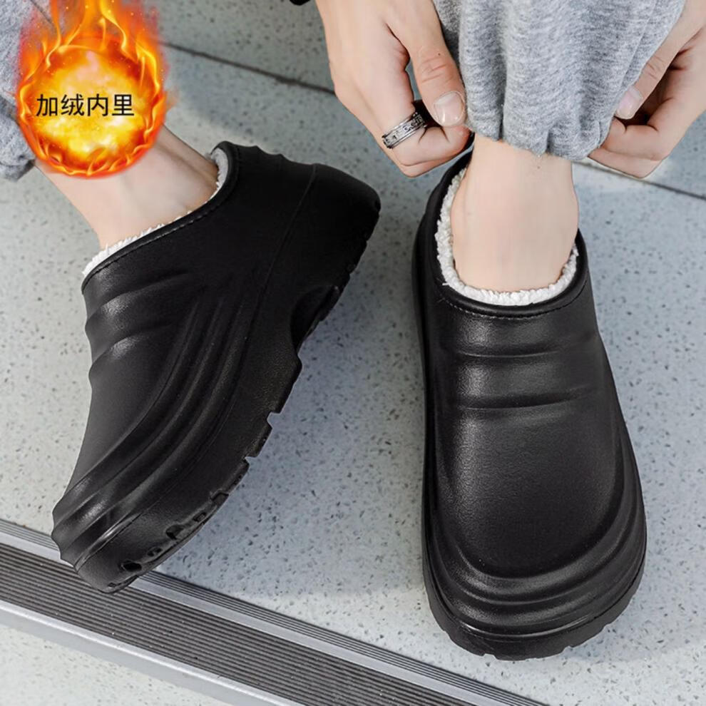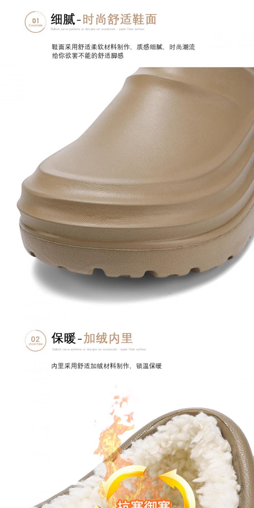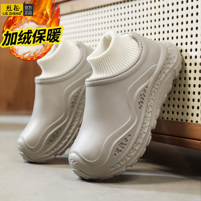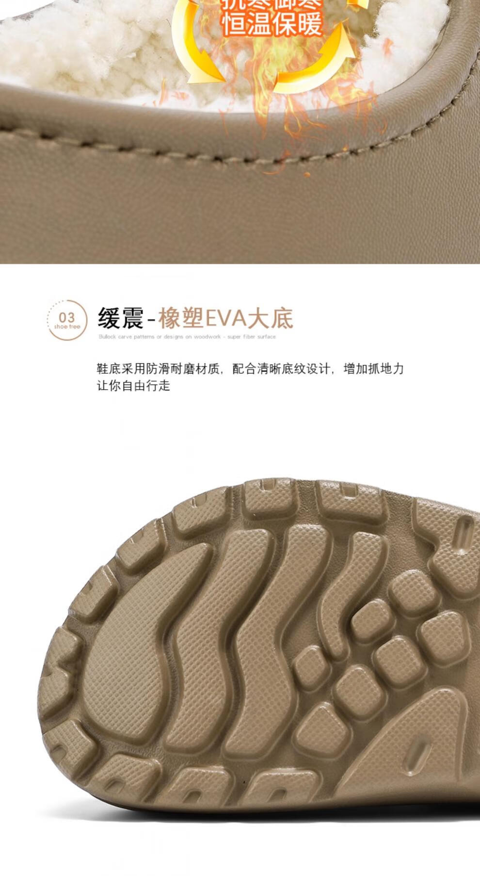 稻草人(MEXICAN)冬季加绒防水棉鞋男厨房专用防滑棉鞋 保暖软底中跟厚底棉鞋 米白 (正常鞋码) 44