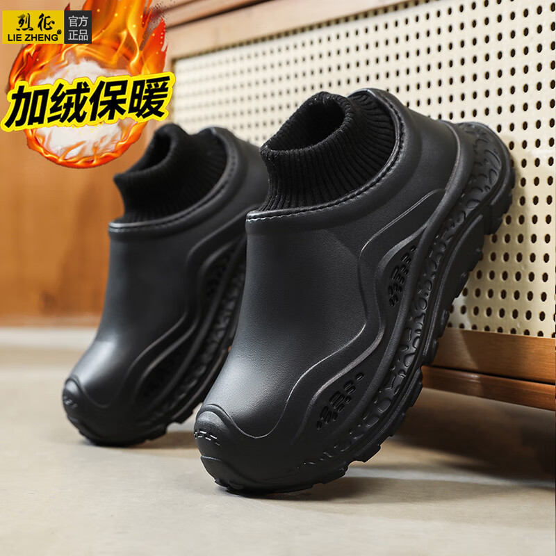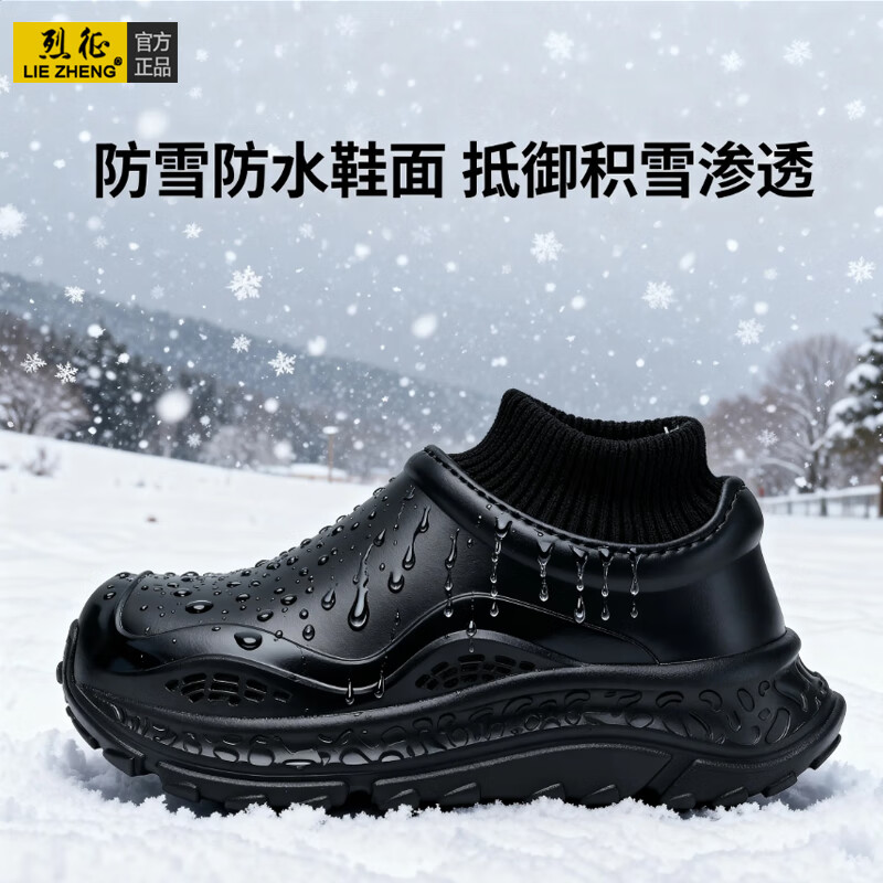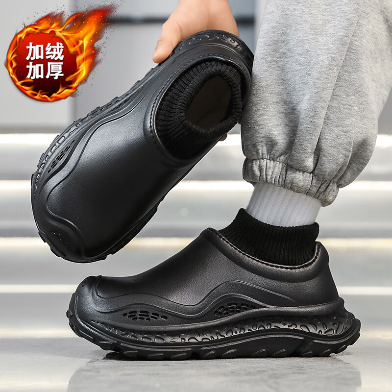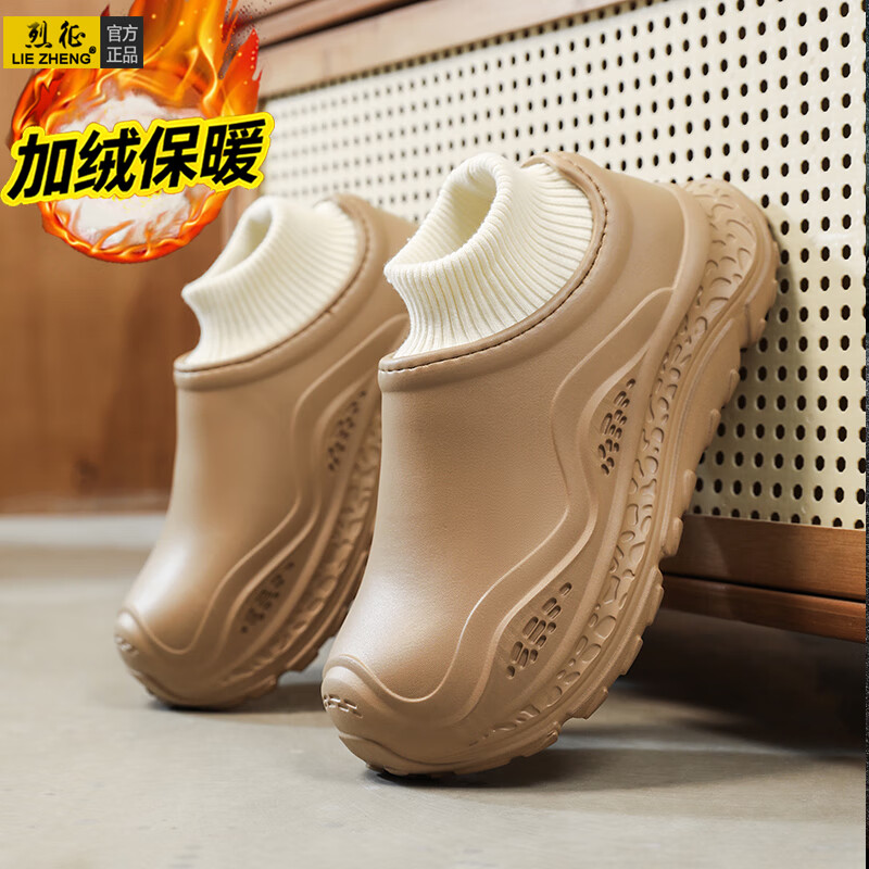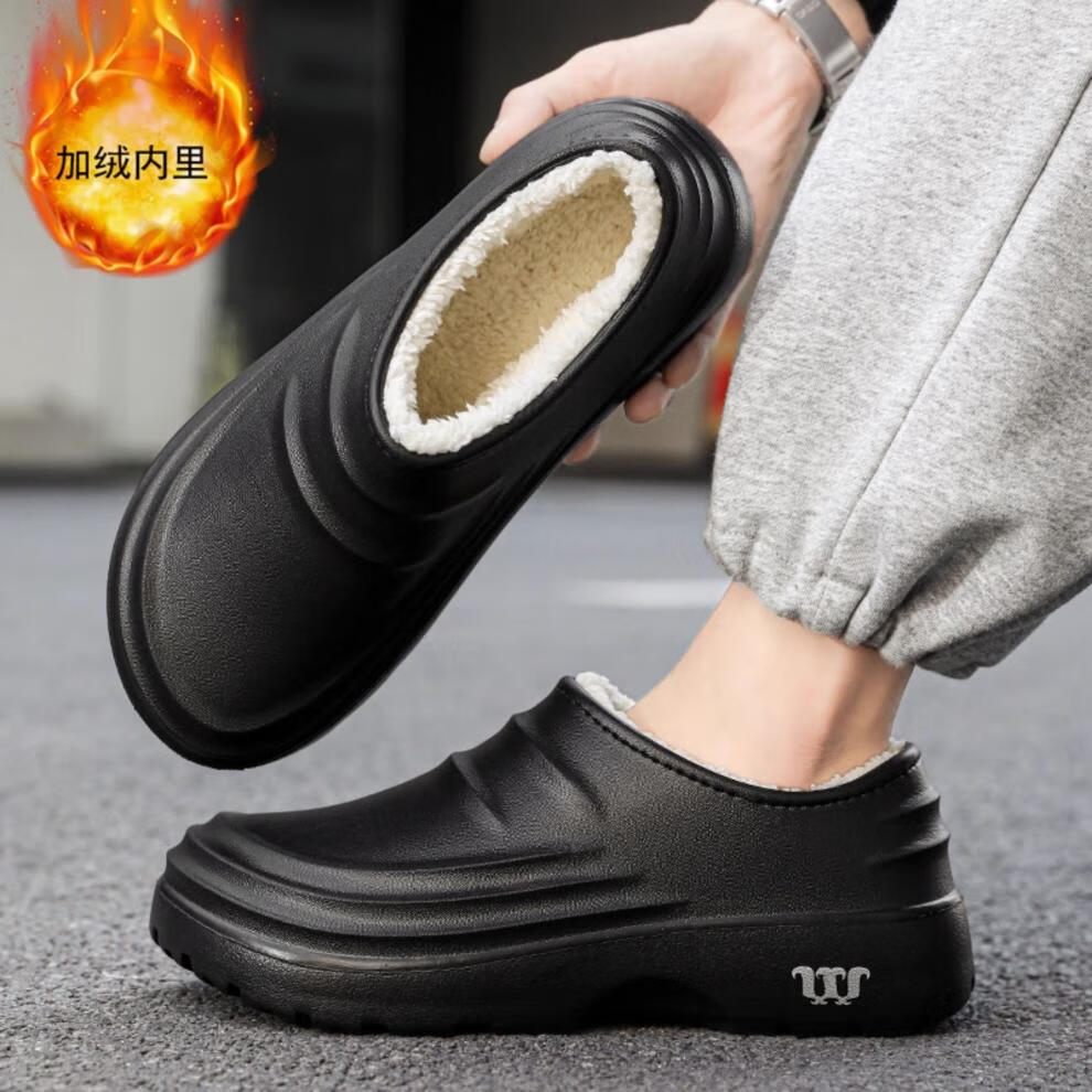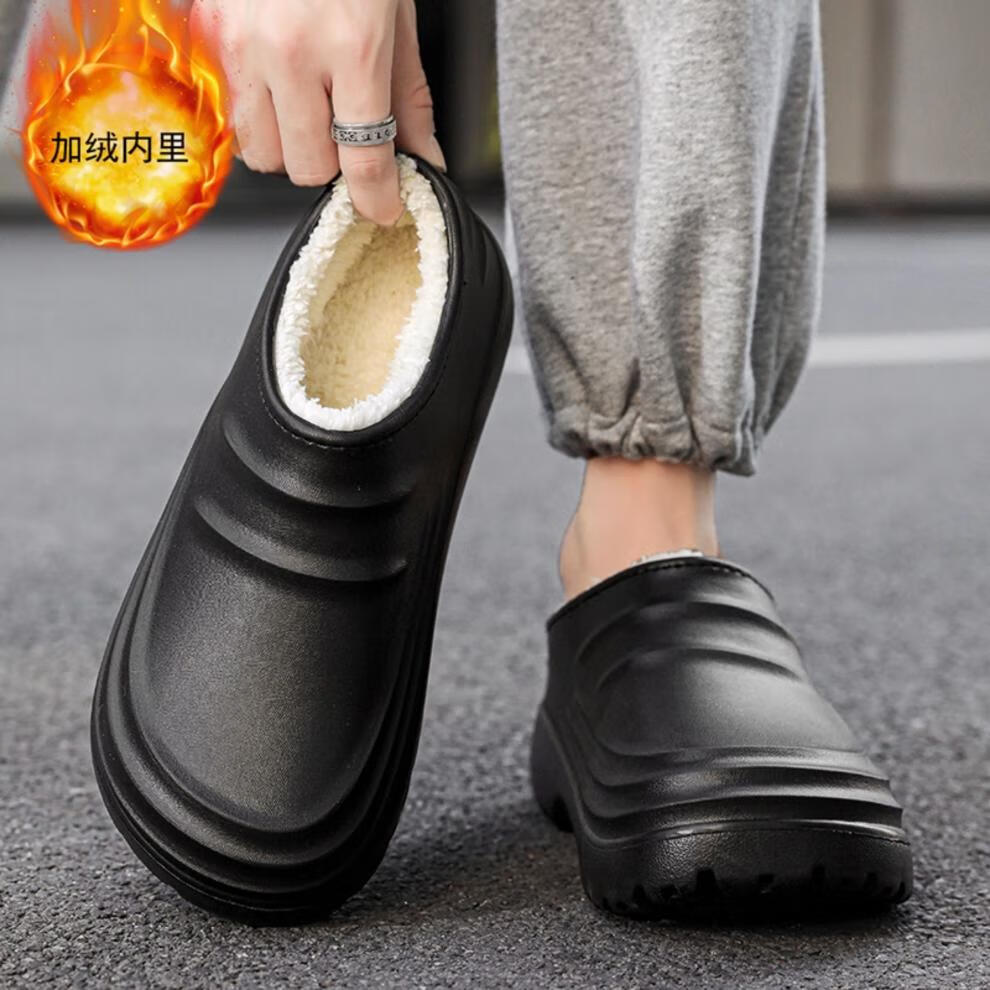 稻草人(MEXICAN)冬季加绒防水棉鞋男厨房专用防滑棉鞋 保暖软底中跟厚底棉鞋 米白 (正常鞋码) 44