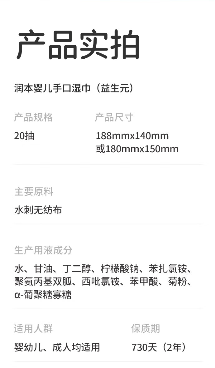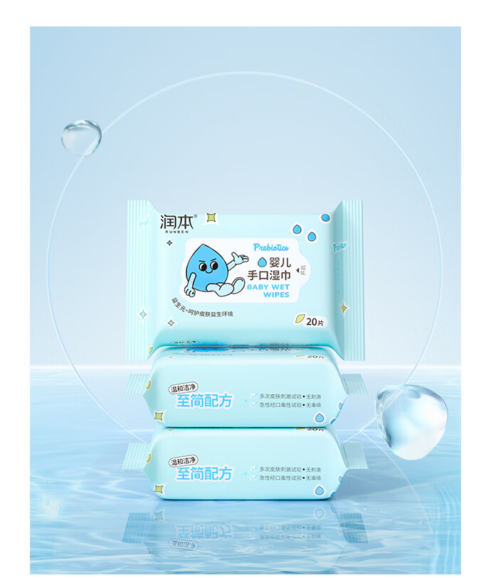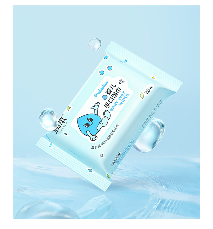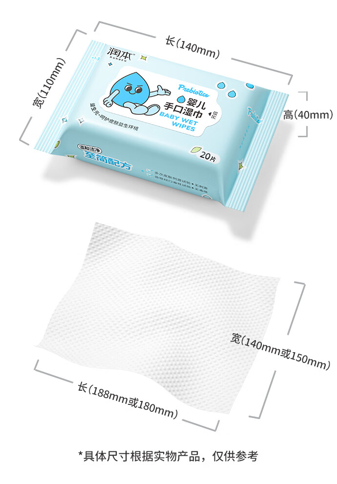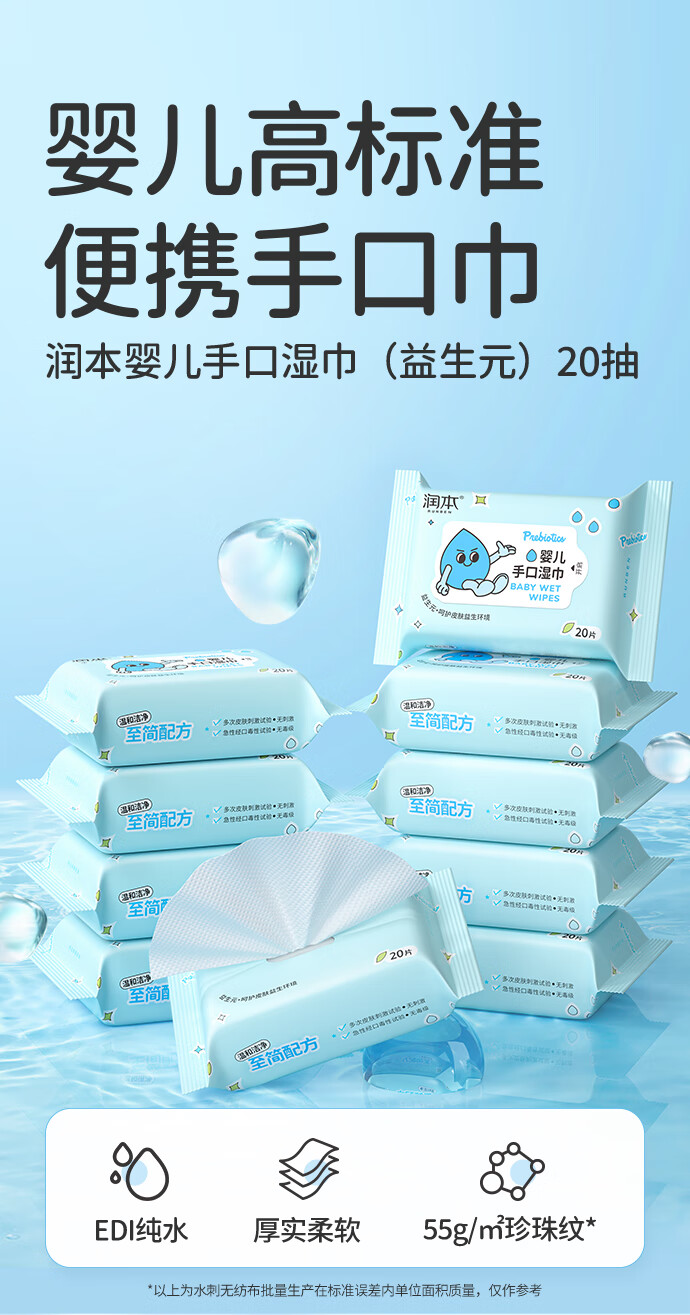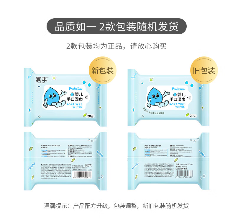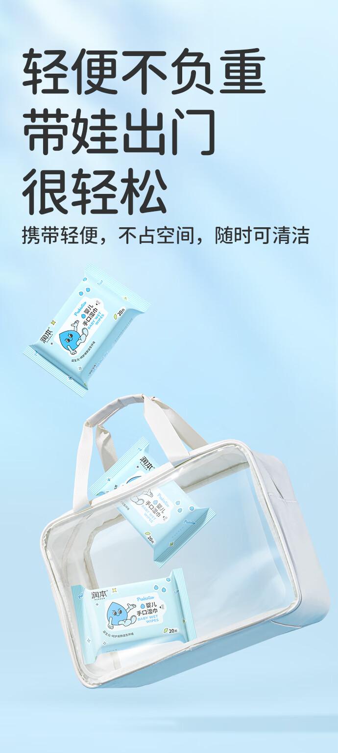 润本婴儿手口湿巾新生儿宝宝专用湿纸巾清洁洗脸巾便携小包20抽*16包
