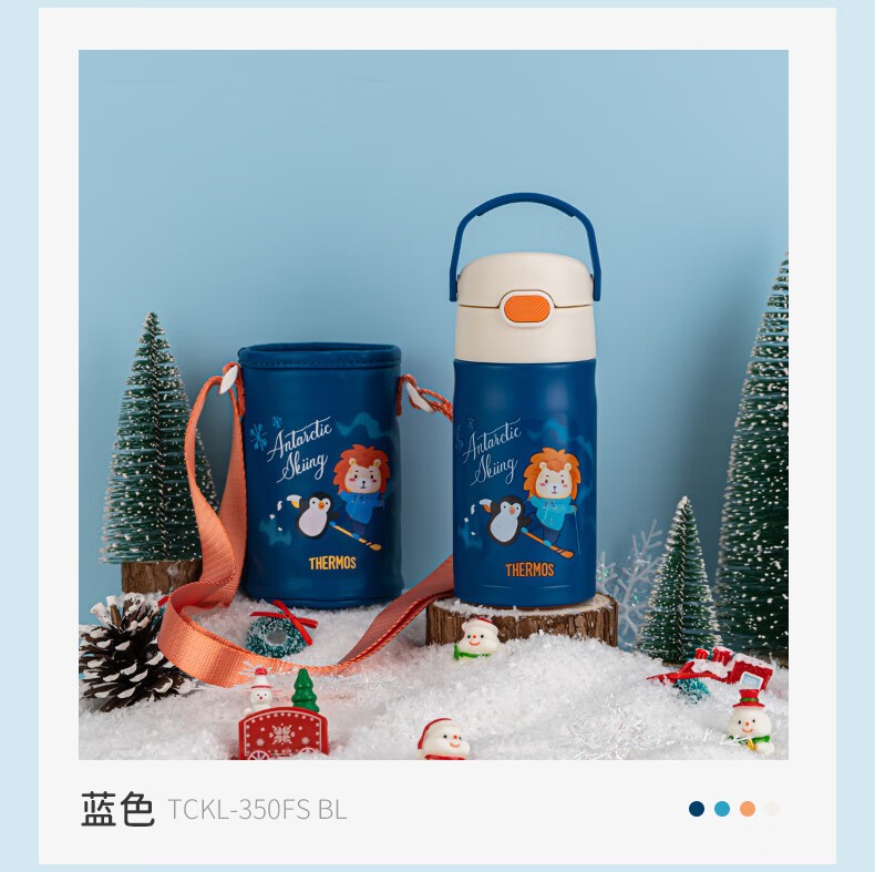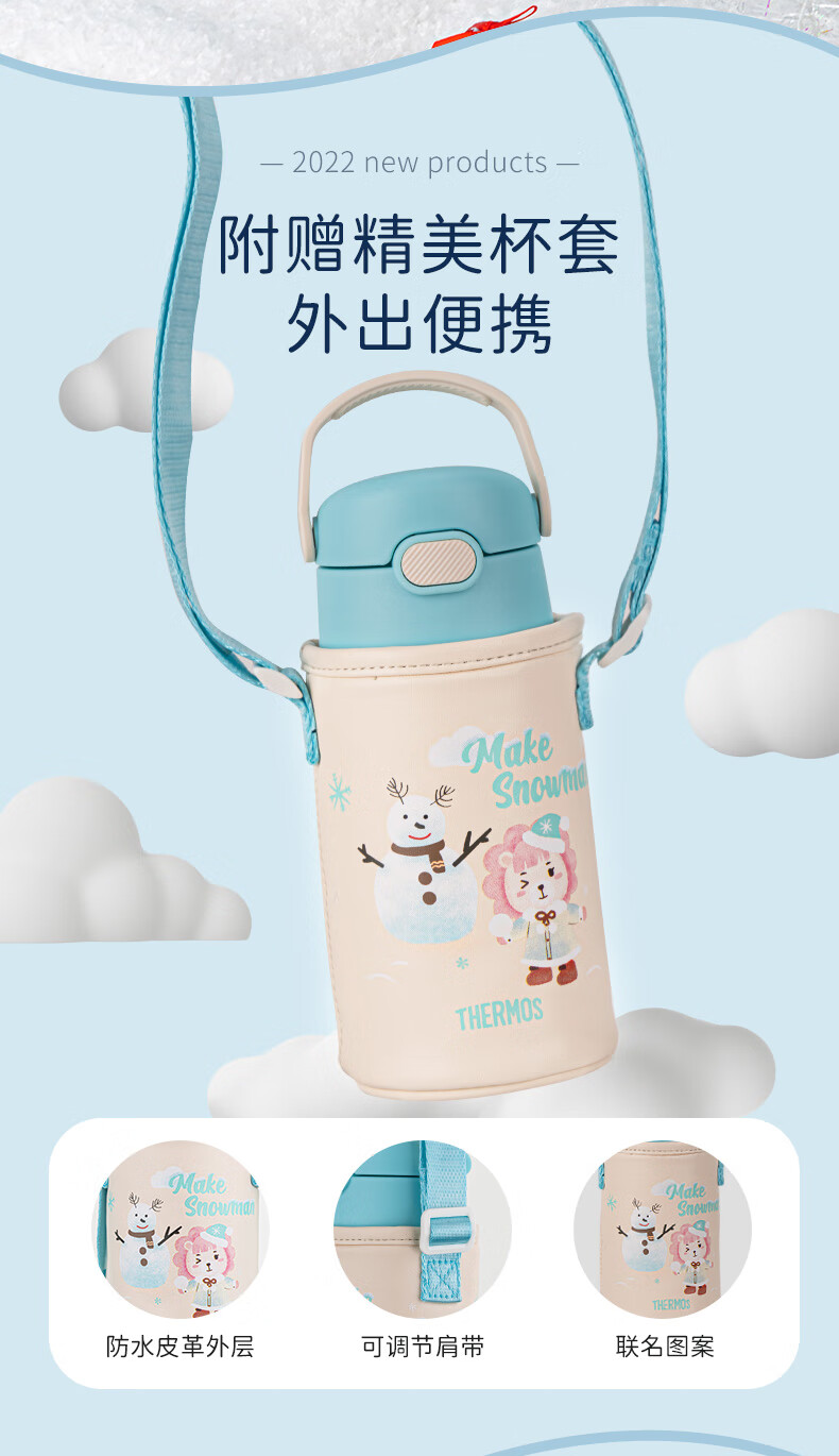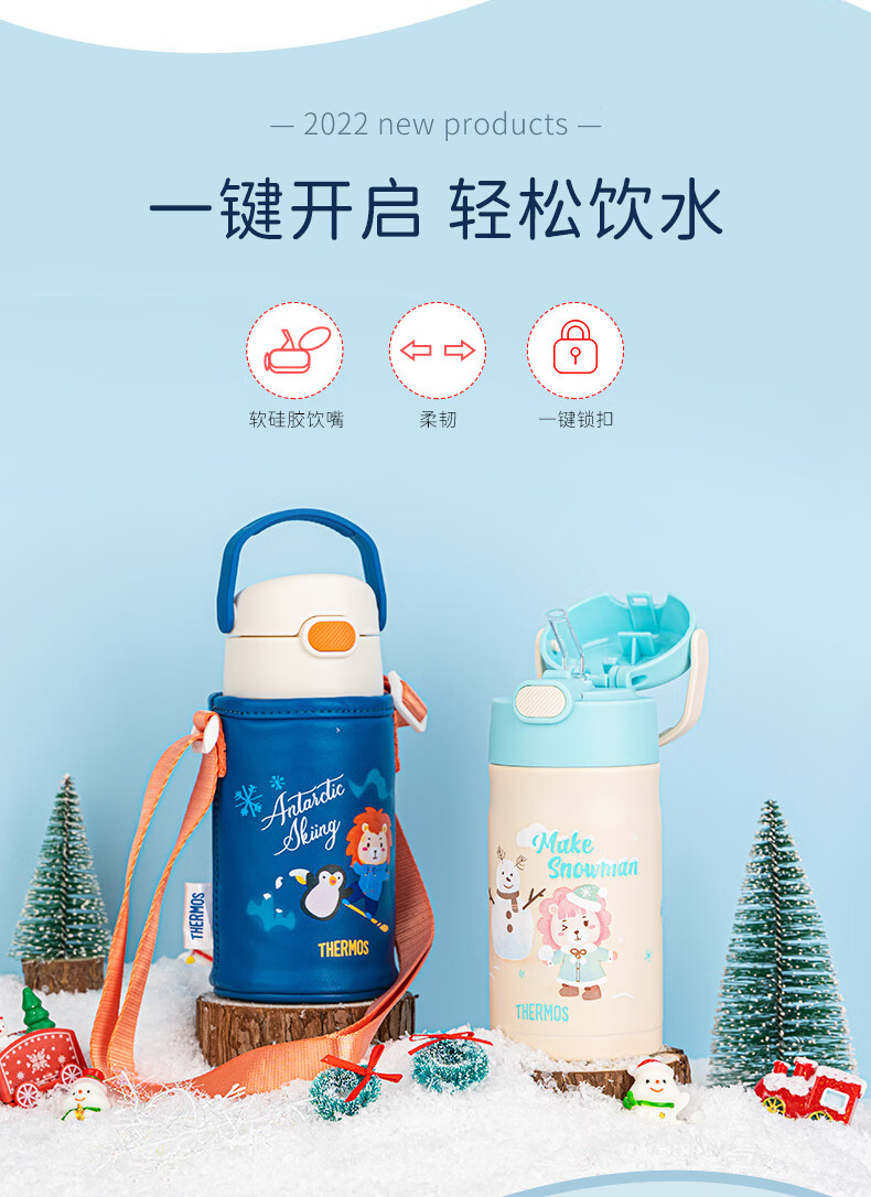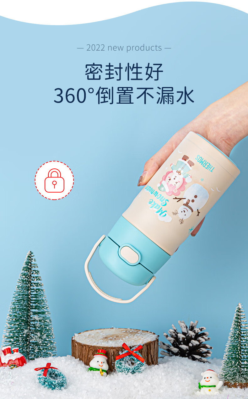膳魔师(THERMOS)保温杯小学生儿童开学必备吸管水杯幼儿园男女宝宝水壶350ml蓝白