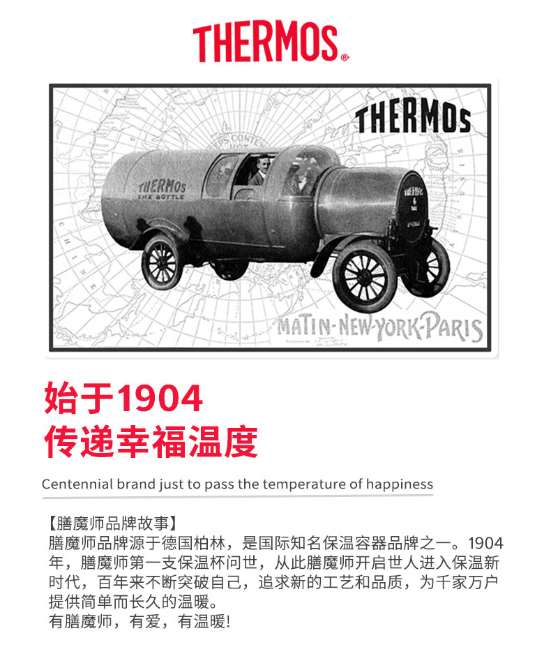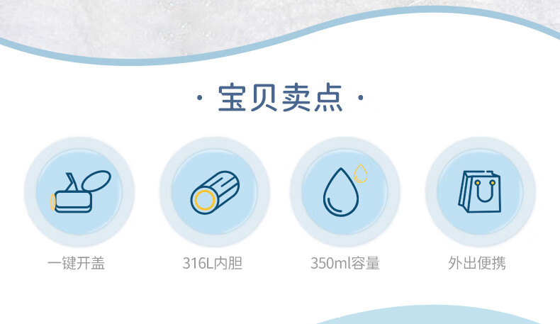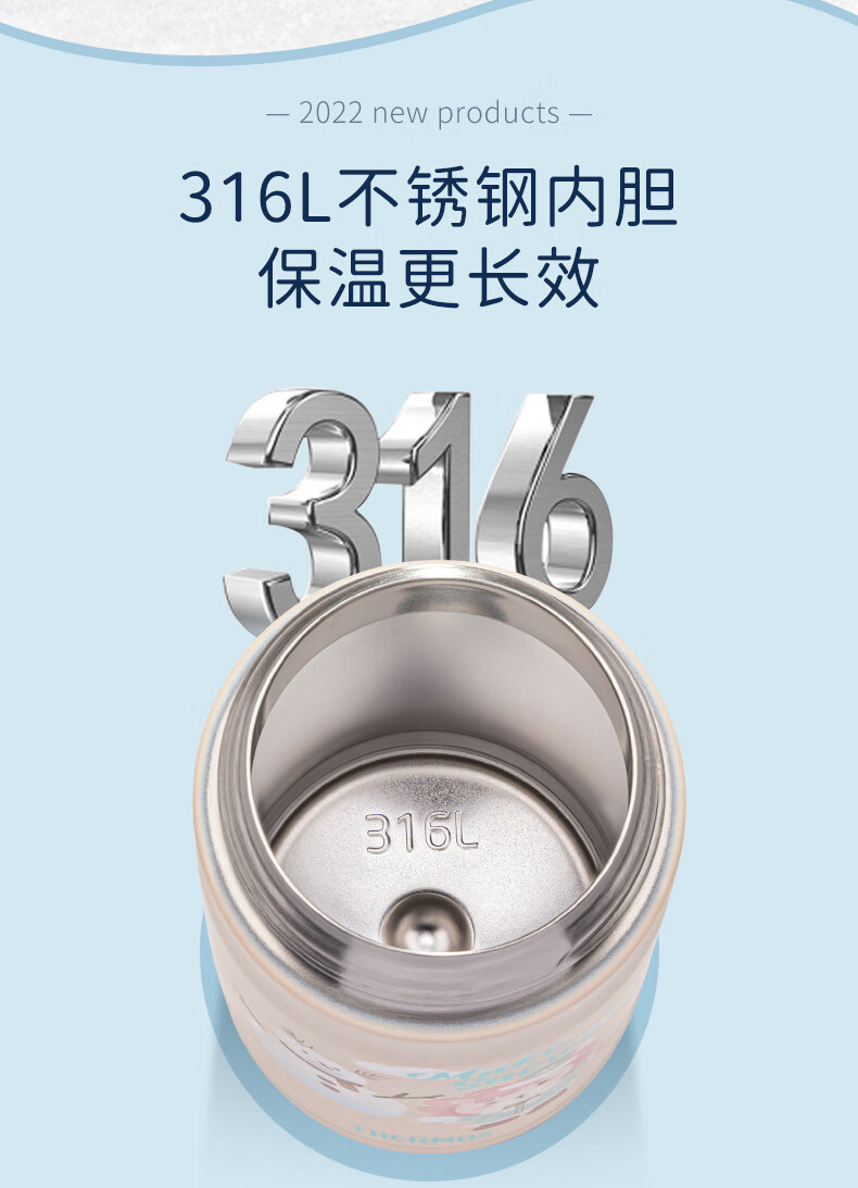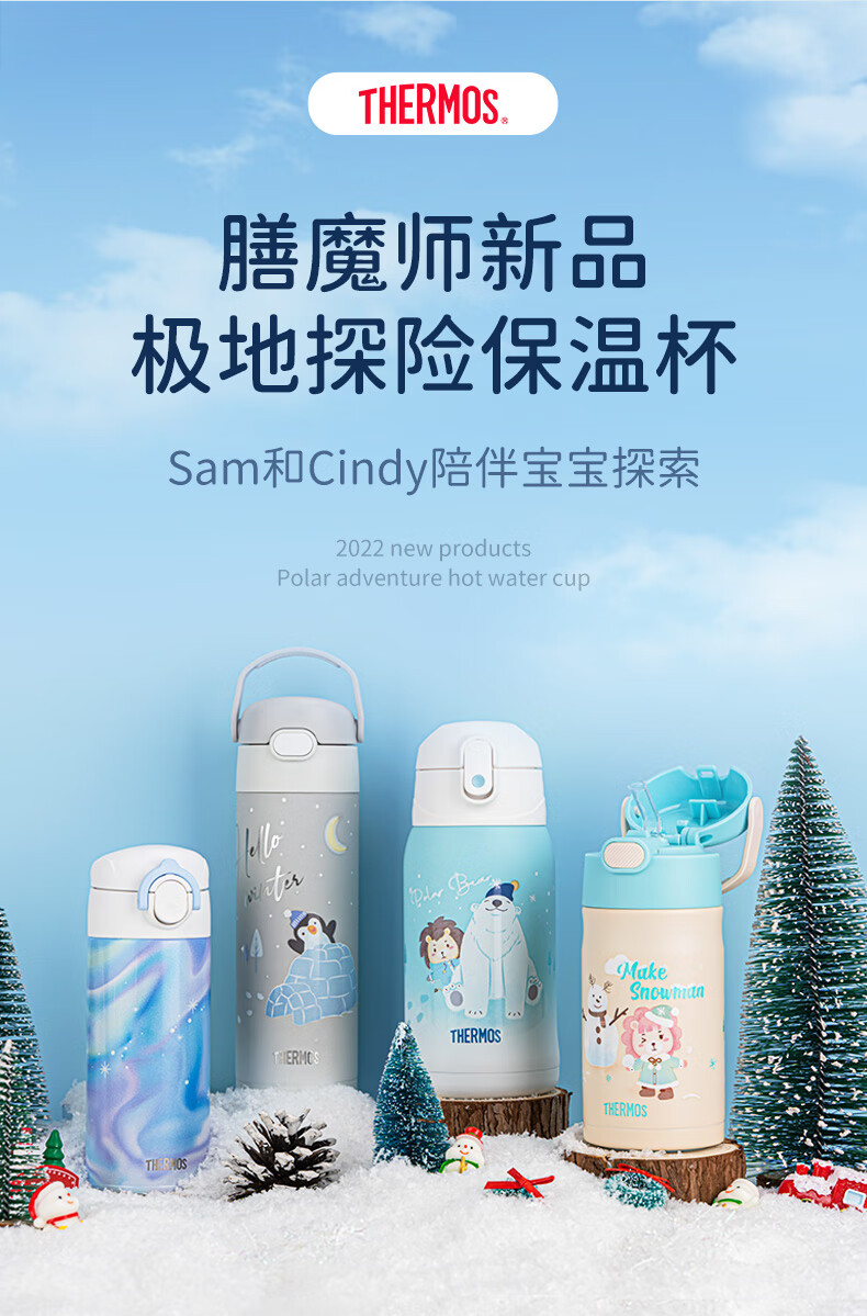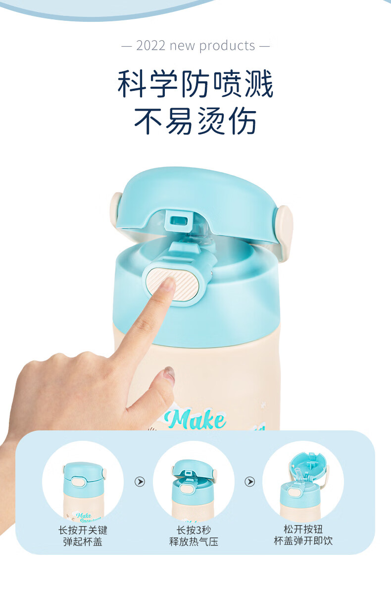 膳魔师(THERMOS)保温杯小学生儿童开学必备吸管水杯幼儿园男女宝宝水壶350ml蓝白