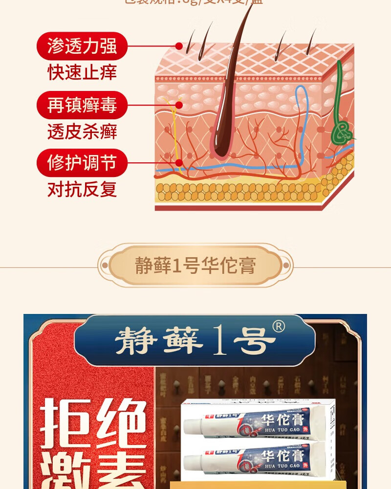 静藓1号华佗膏牛皮癣银屑病皮炎湿疹股癣头癣皮肤瘙痒外用无激素 1盒-2支【改善装】轻度症状缓解