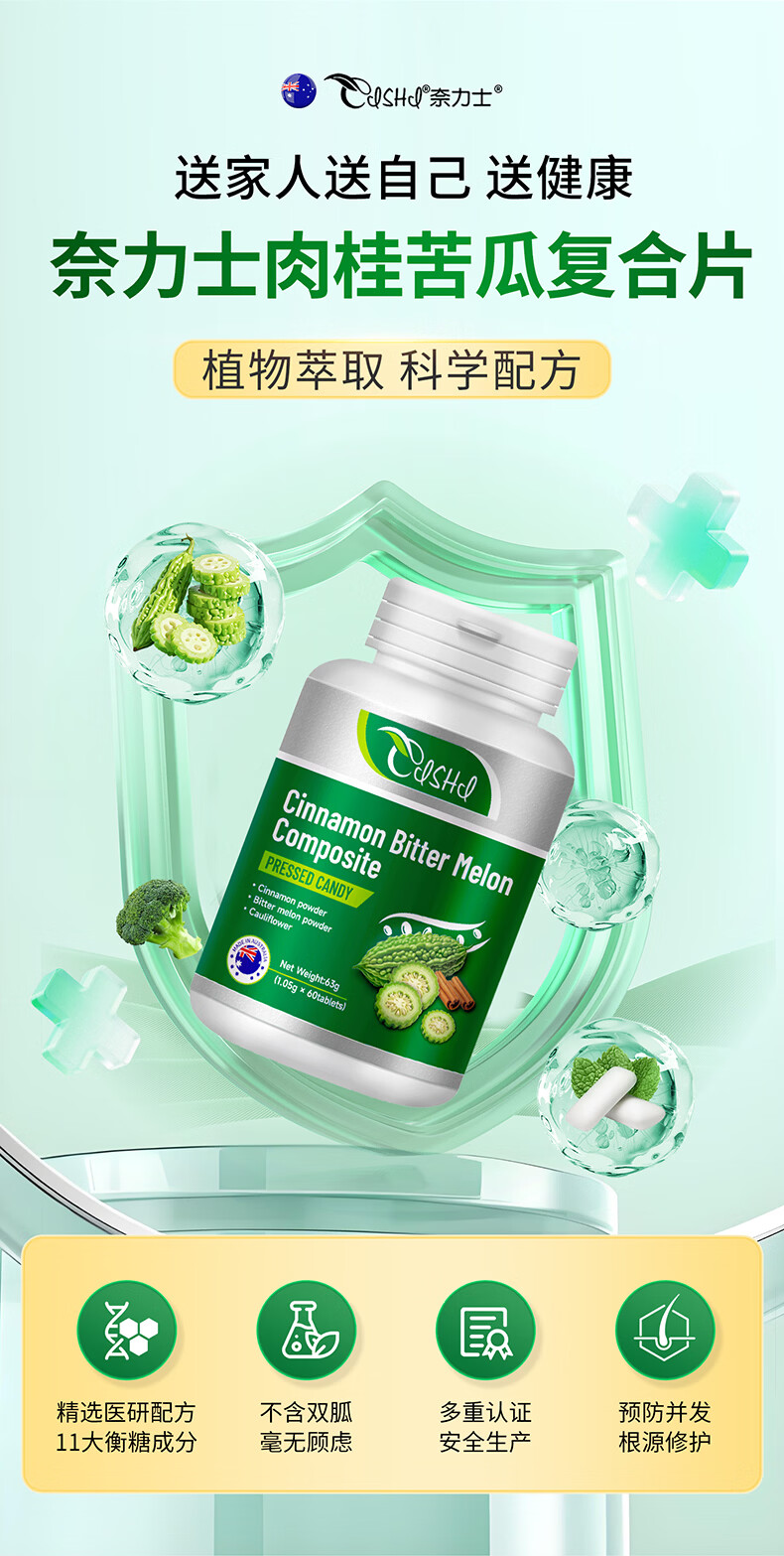 奈力士进口控糖灵中老年人降血糖平衡片苦瓜素片调节高血糖血管清道夫 7瓶巩固装【血糖高常备长久呵护】 60粒*7瓶 送长辈礼物实用可搭硫辛酸纳豆糖尿病人食物茶