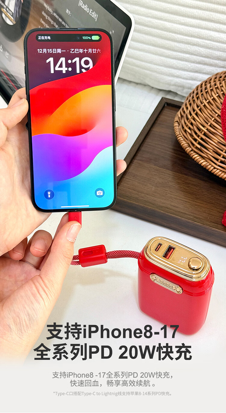 图拉斯充电宝【3c认证丨磁吸自带线】式苹果17超薄无线充可上飞机iphone16快充移动电源 白色【磁吸+自带线】二合一