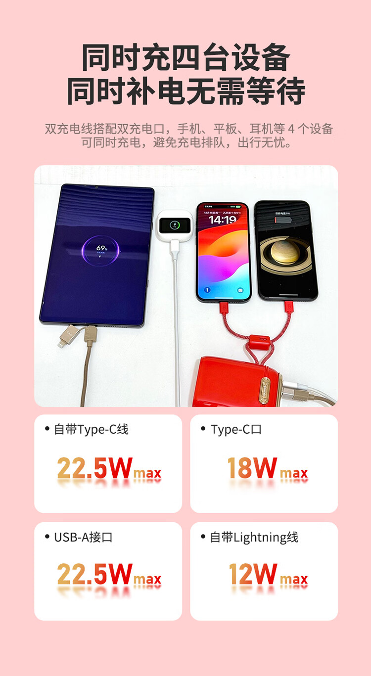 幻响(i-mu)小宝小方宝移动电源S5充电宝10000mAh支持超级快充S20一万20000毫安S16适用苹果华为安卓 小宝S5 1万毫安【玫瑰金】超级快充