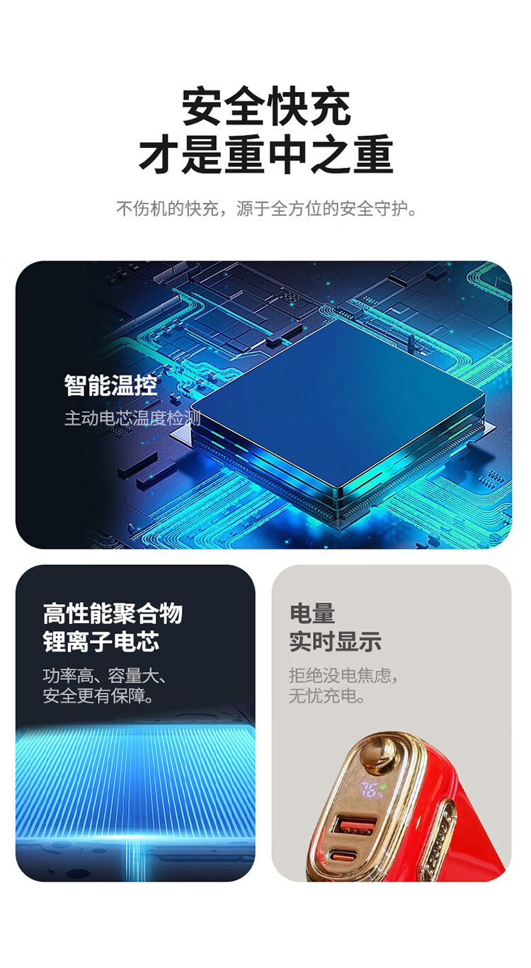 品胜(PISEN)【3C认证可上飞机】【年会送礼】充电宝45W快充自带双线20000毫安大容量支架移动电源苹果17华为 蓝色【45W闪充|两万双线】