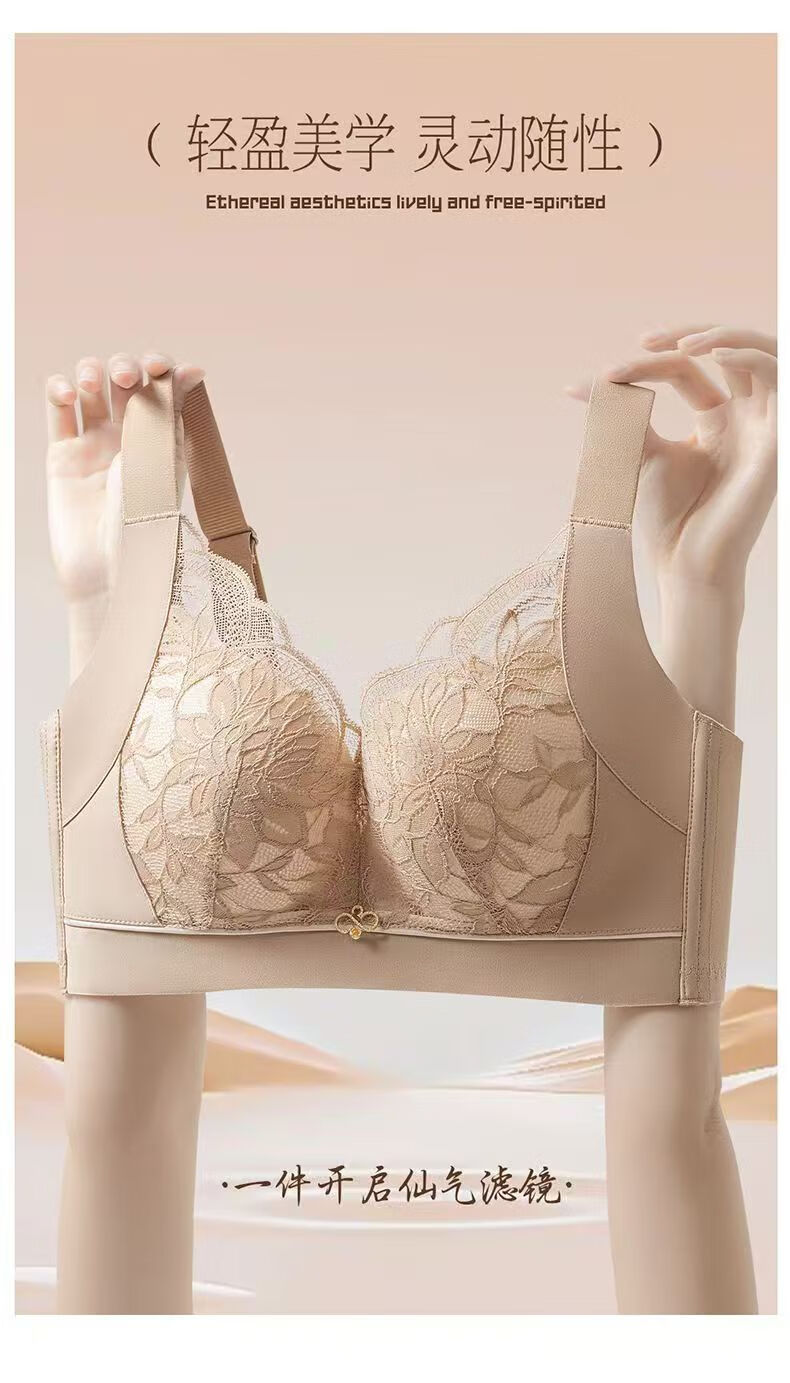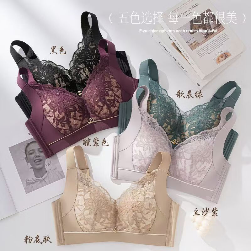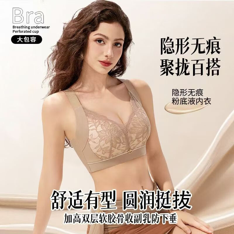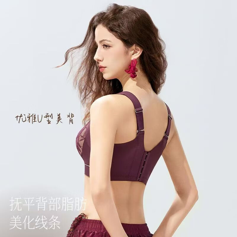黛思侬内衣女聚拢收副乳防下垂无钢圈调整型大胸显小胸罩文胸 黑色 (黑色) 105C 46/105CD